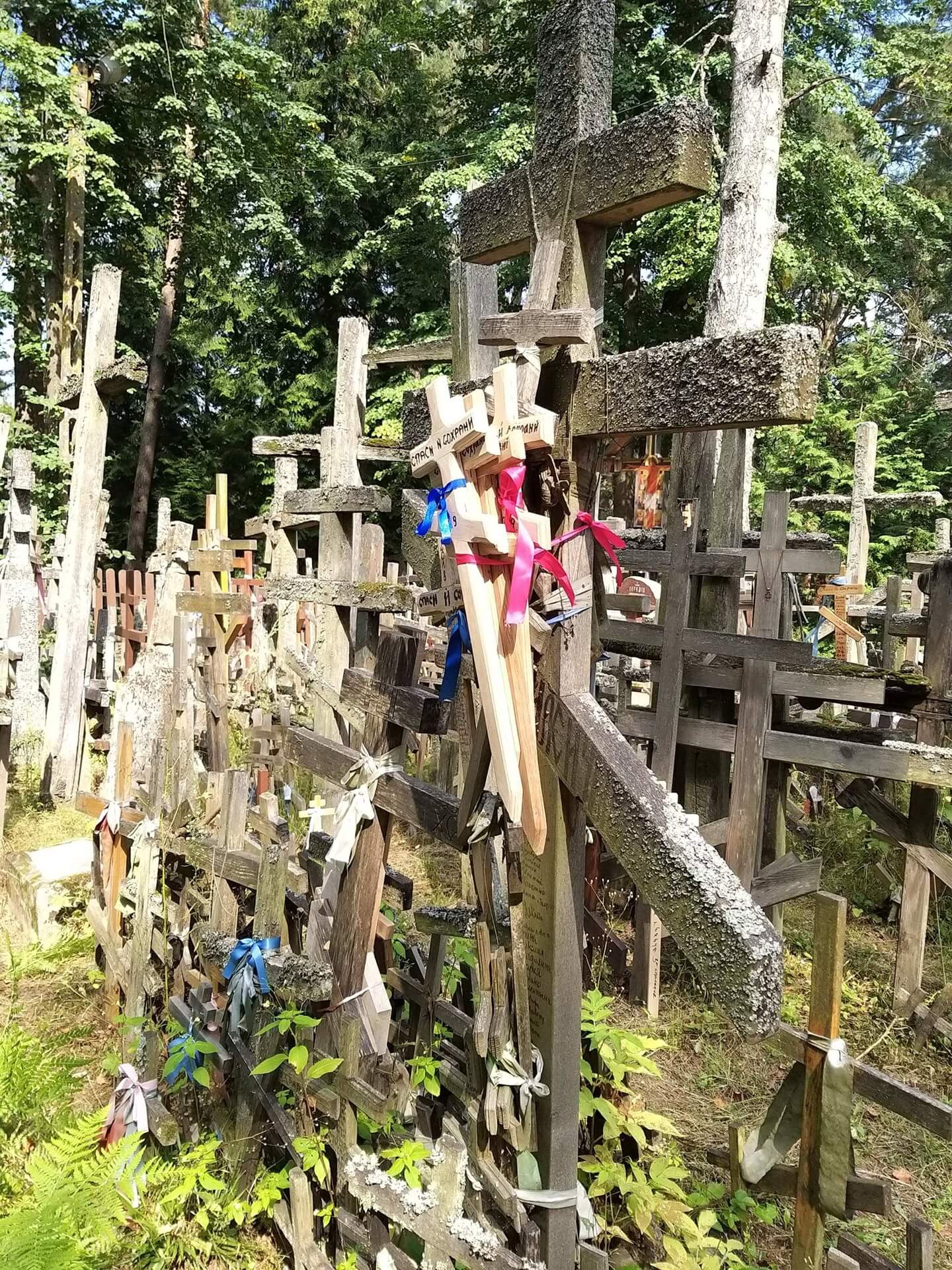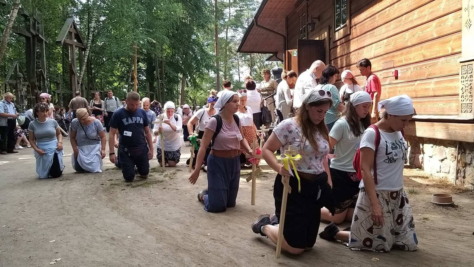 Ci pątnicy, którzy na Świętą Górę przynieśli we własnych intencjach drewniane krzyże, zostawiają je na wzgórzu. Kilkumetrowe krzyże, w trakcie wędrówki niesione na ramionach razem przez kilka osób, ustawiają zorganizowane grupy pątników.