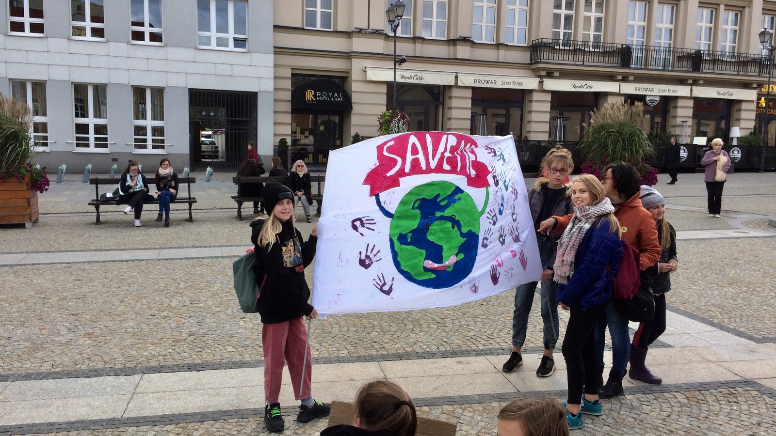 Uczestnicy Młodzieżowego Strajku Klimatycznego zgromadzili się na Rynku Kościuszki w Białymstoku, by protestować przeciwko bierności władz wobec pogłębiającego się problemu dotyczącego środowiska. Podkreślają, że robią to z myślą o przyszłych pokoleniach.