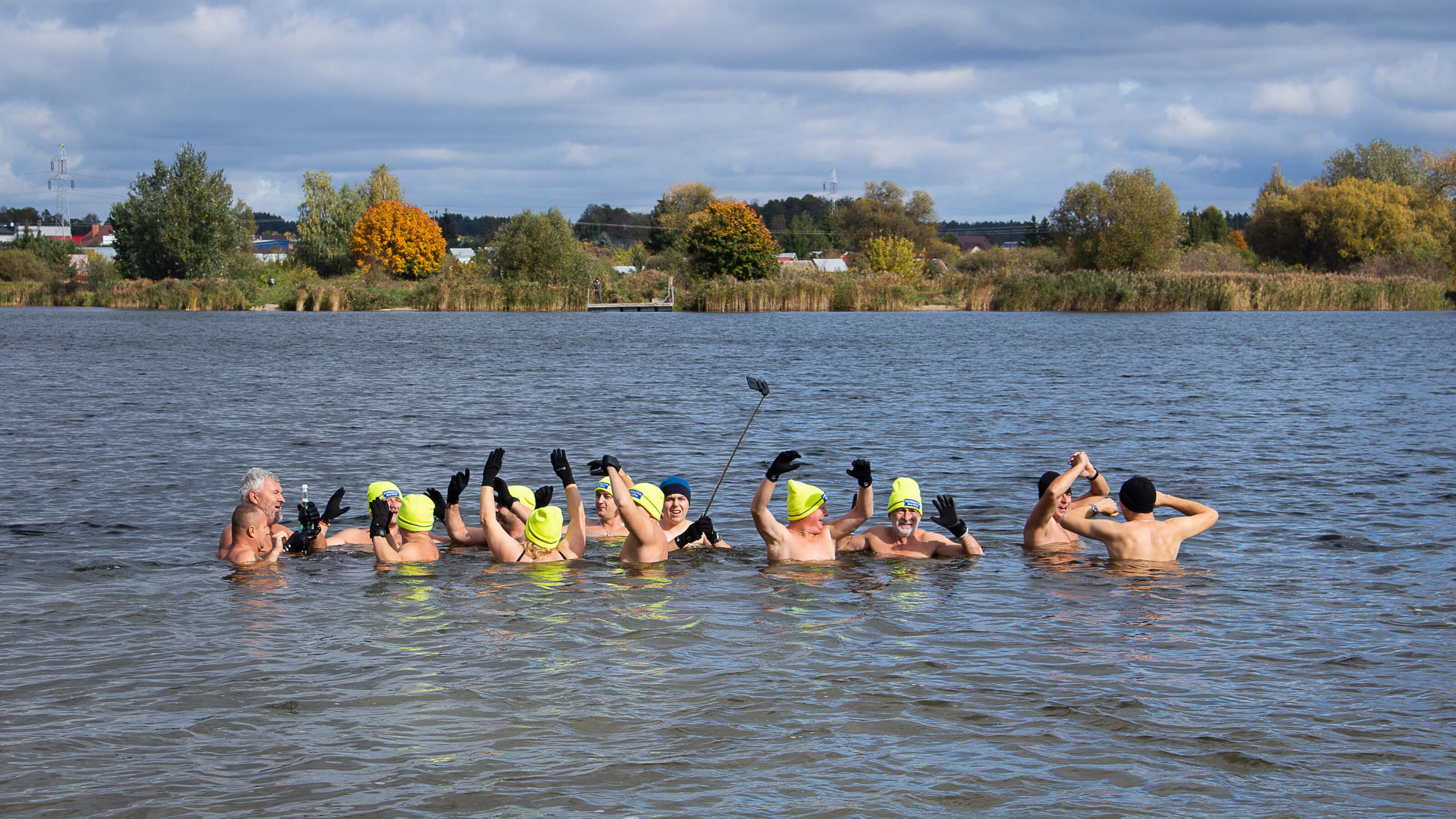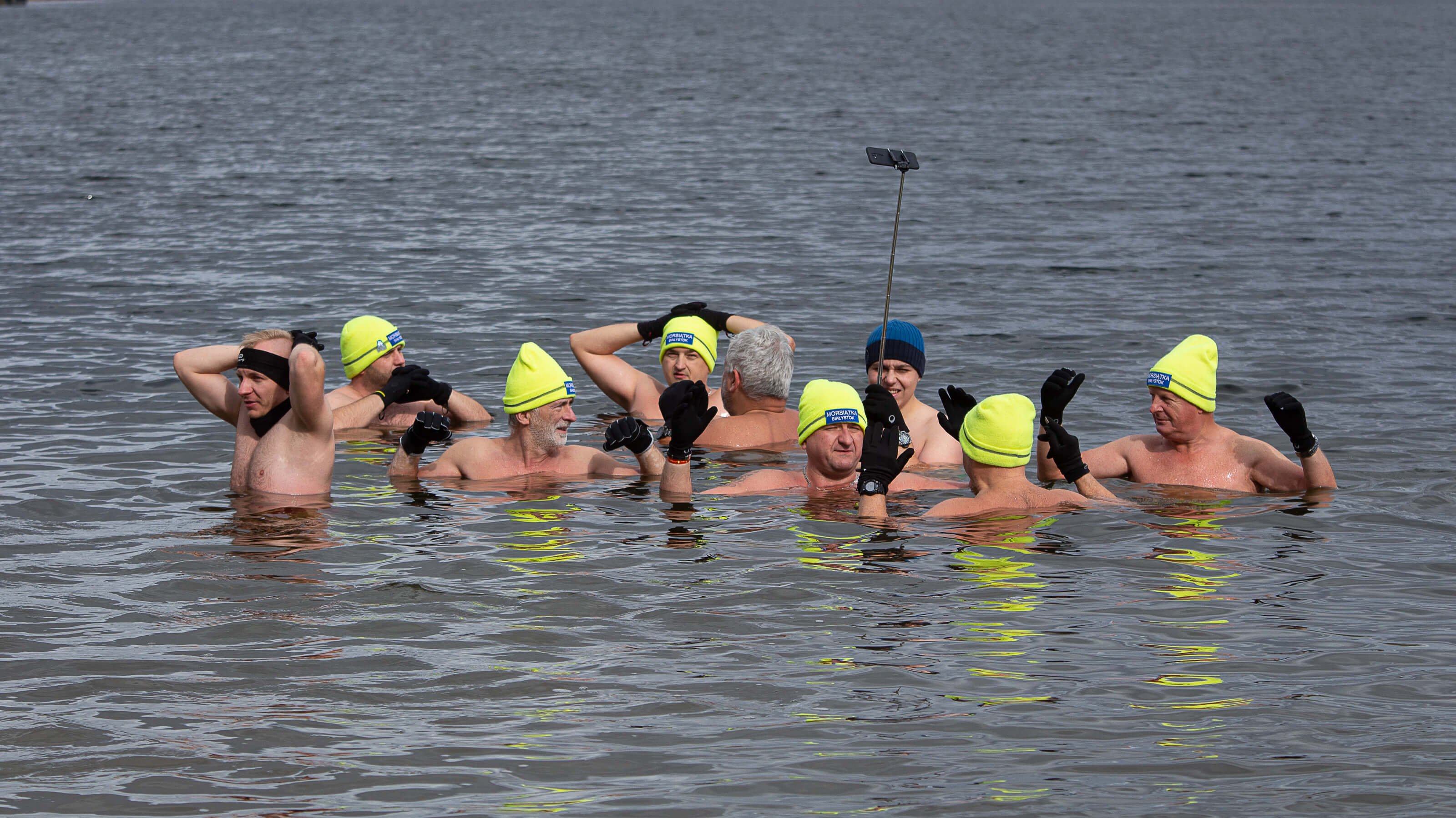 Były wspólne zdjęcia, energiczna rozgrzewka i kąpiel w białostockim Zalewie Dojlidy. Kilkunastoosobowa grupa "Morsiątek Białystok" zainaugurowała nowy sezon zimnych kąpieli.