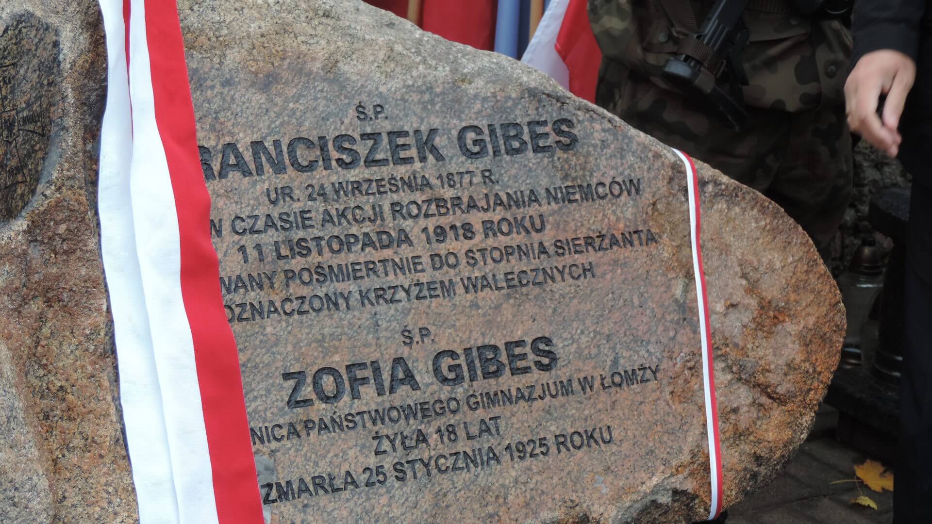 W Łomży z okazji 11 Listopada odsłonięto odbudowany pomnik Franciszka Gibesa - bojownika POW