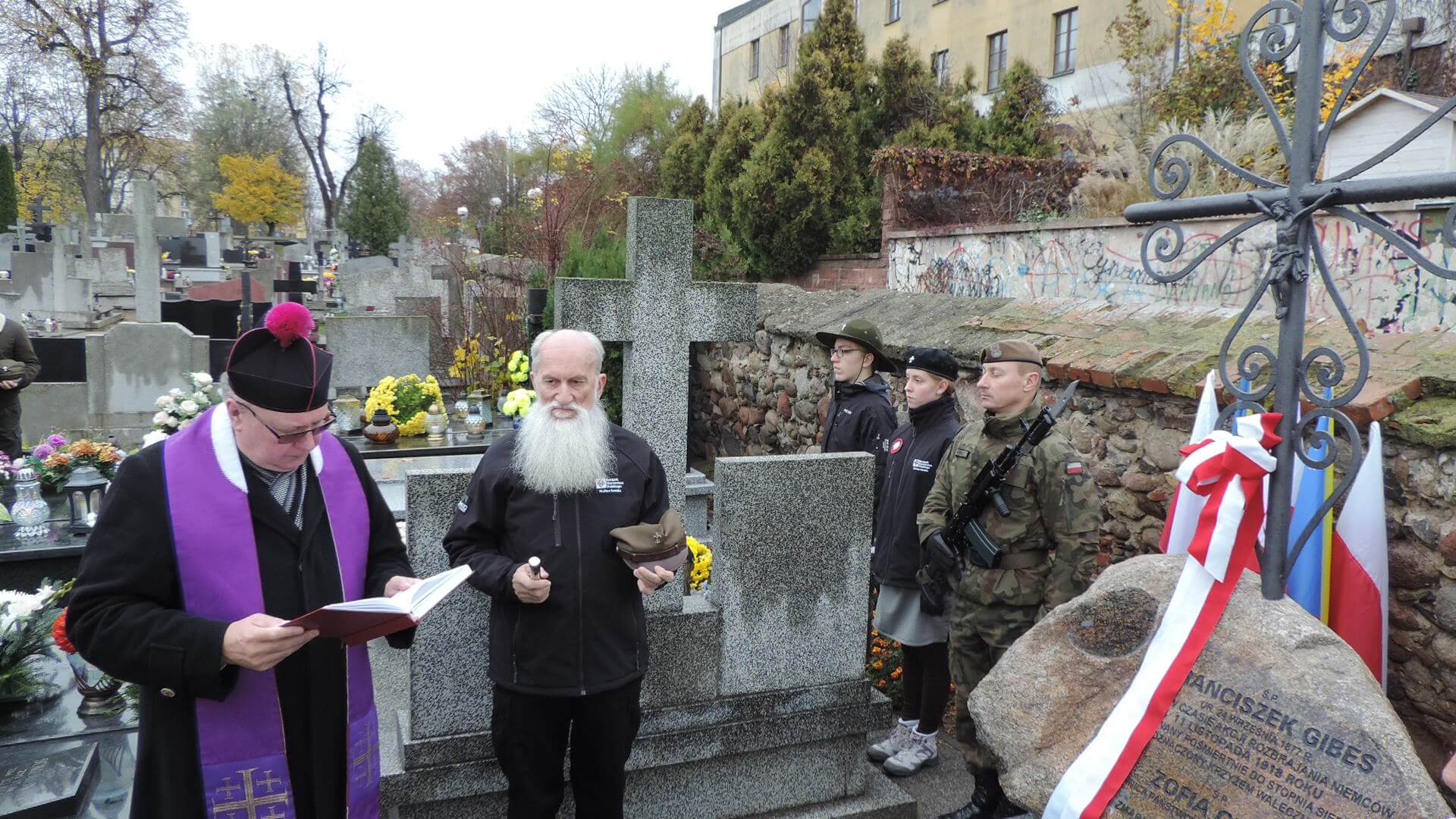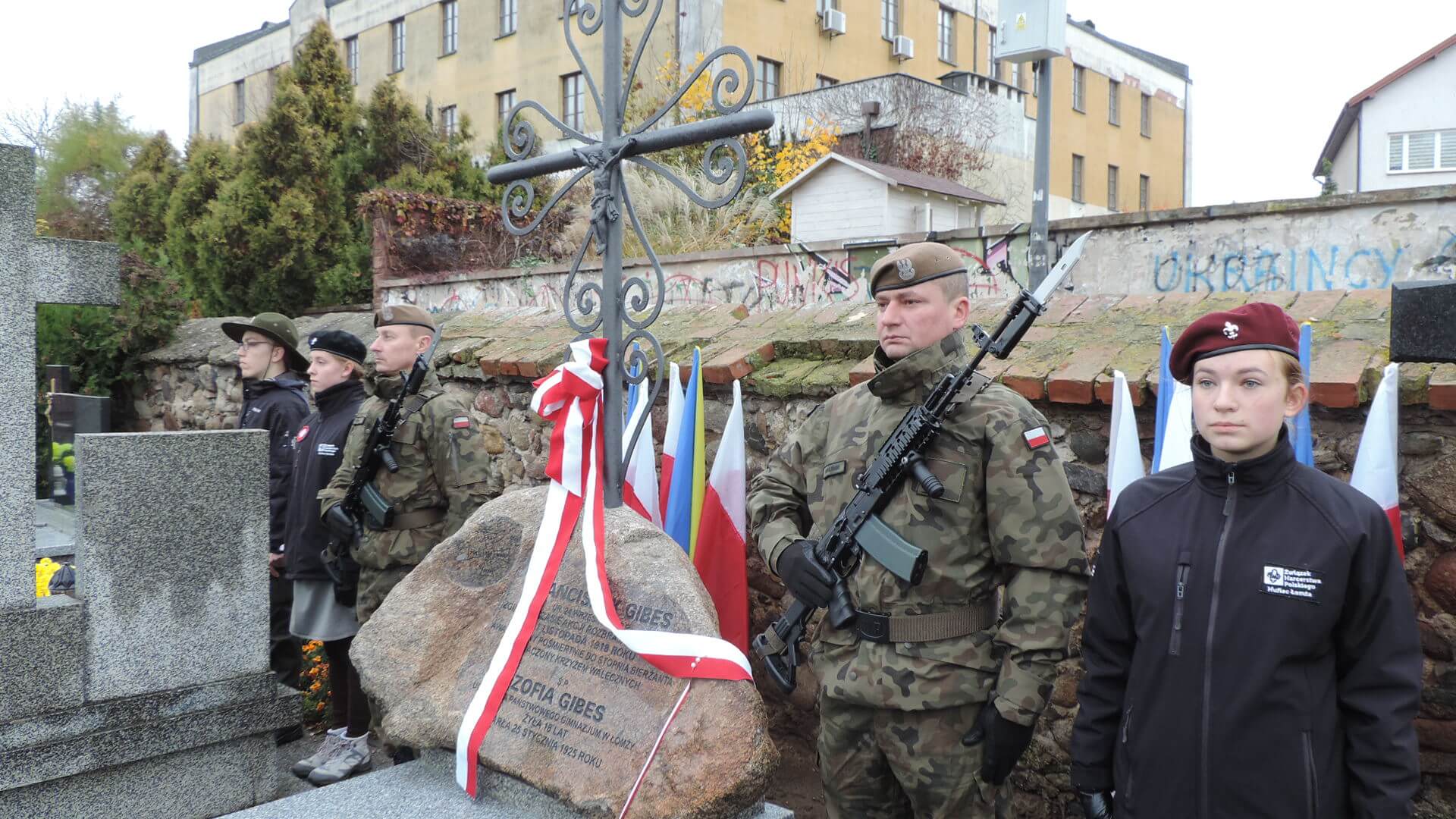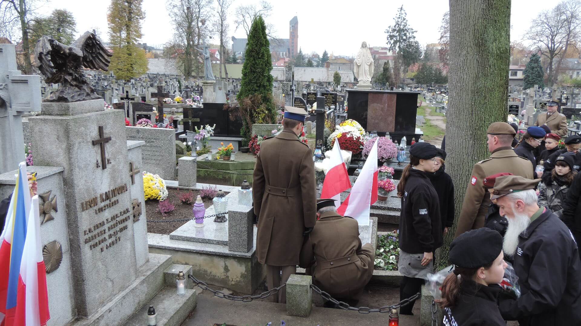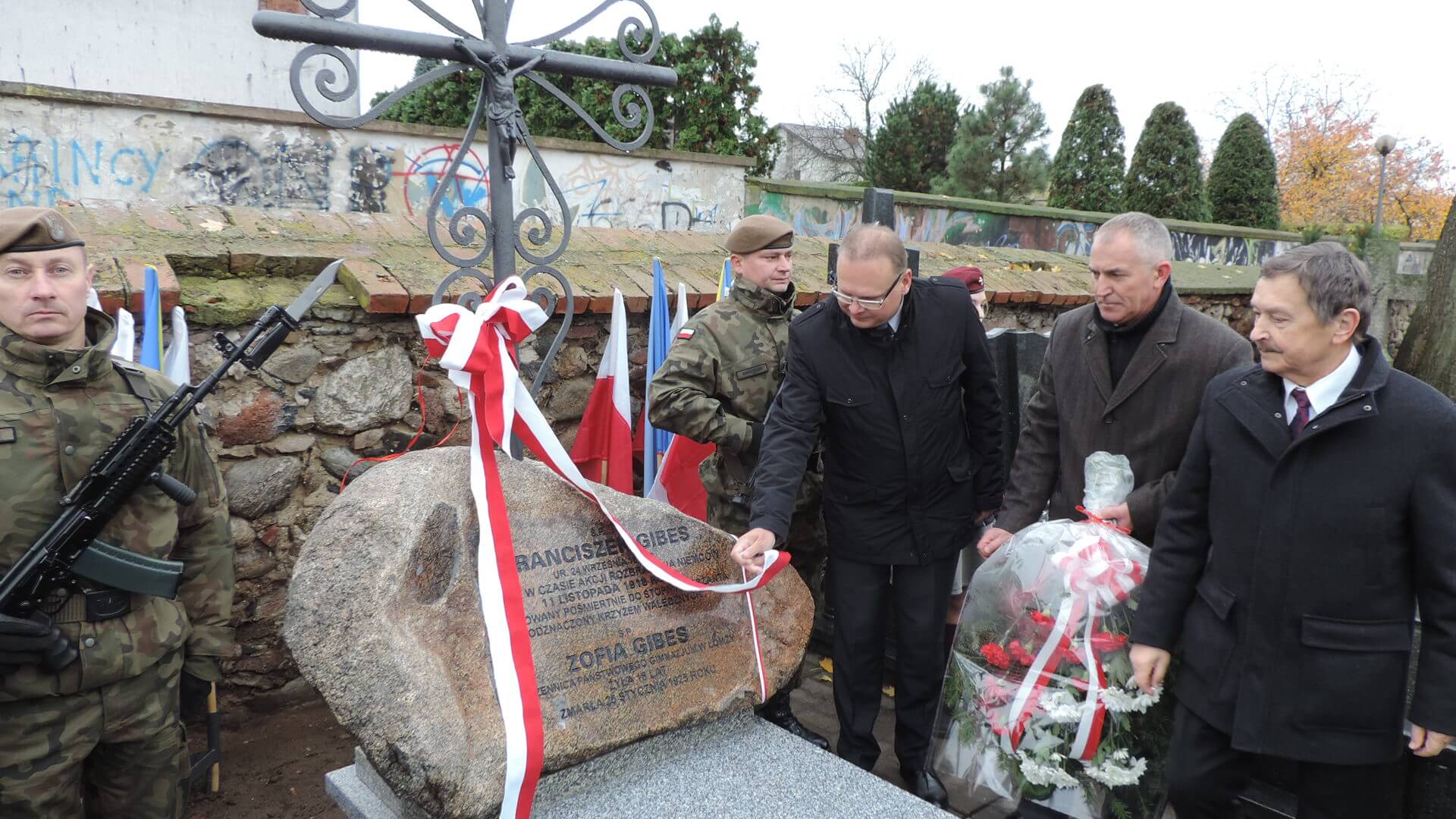 Delegacje z wiązankami odwiedziły na łomżyńskim cmentarzu m.in. groby Leona Kaliwody, Jarnuszkiewiczów, Kraszewskich, żołnierzy z 1920 r. i - po raz pierwszy odsłonięty przy tej okazji odbudowany pomnik Franciszka Gibesa.