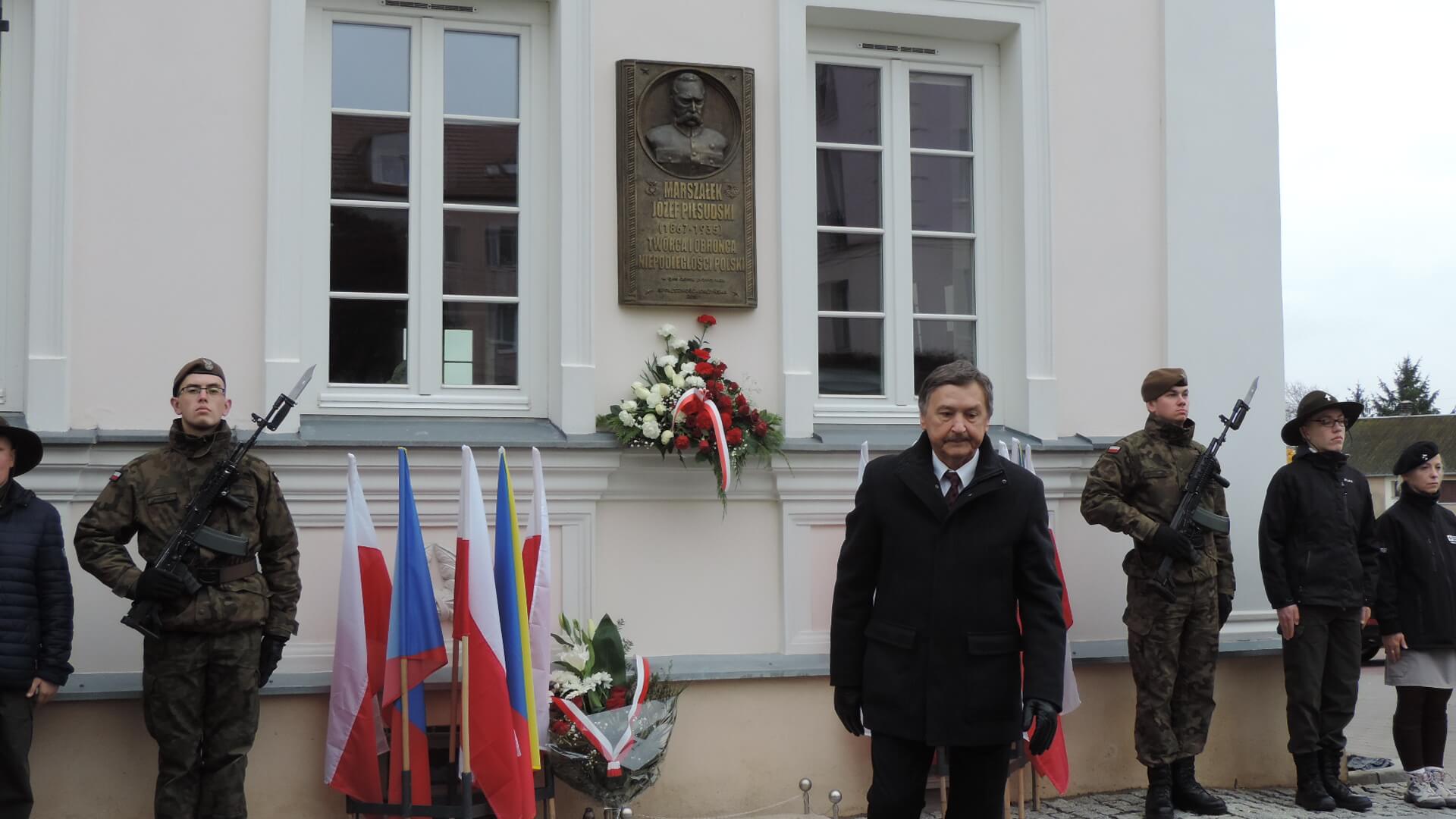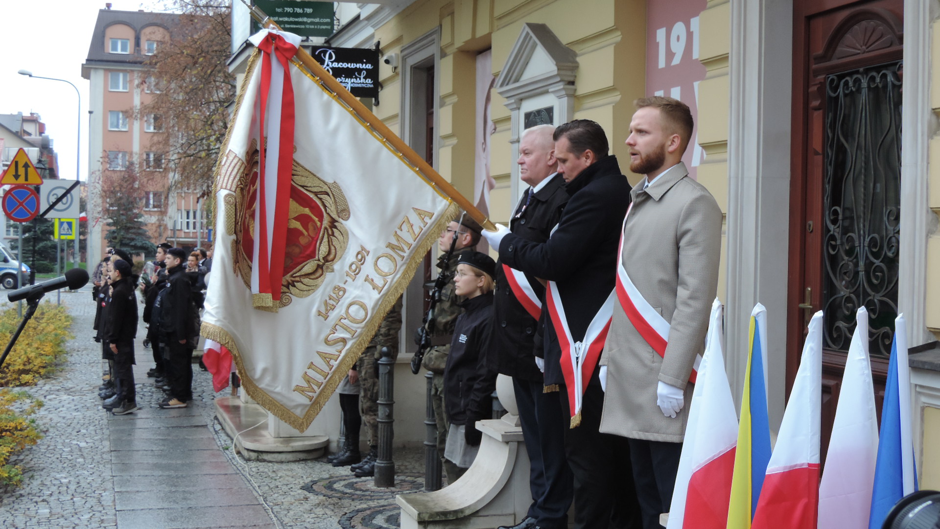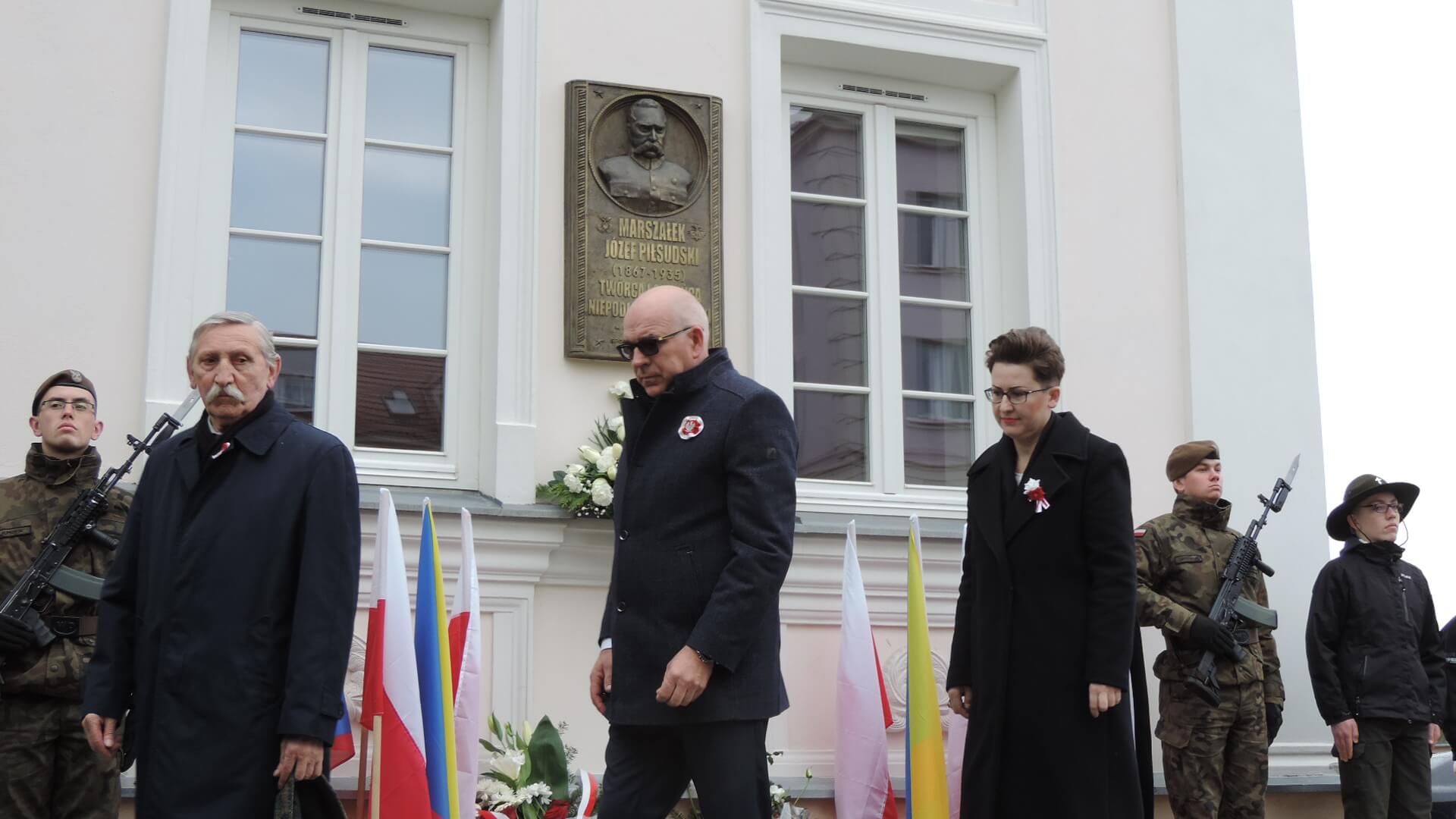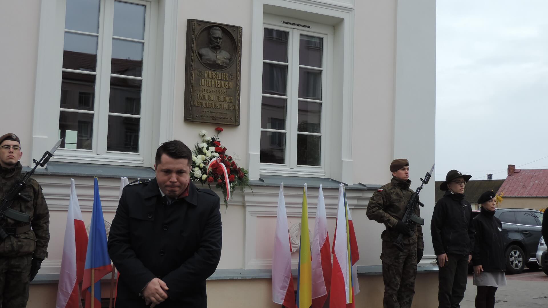 Kwiaty z okazji Święta Niepodległości złożono w Łomży także pod tablicą na tzw. Domku Pastora, która upamiętnia pobyt w tym mieście Józefa Piłsudskiego, a główne uroczystości rocznicowe rozpoczęły się o 13:00 na ul. Sienkiewicza, gdzie poległ 101 lat temu dowódca łomżyńskiego okręgu POW - Leon Kaliwoda.