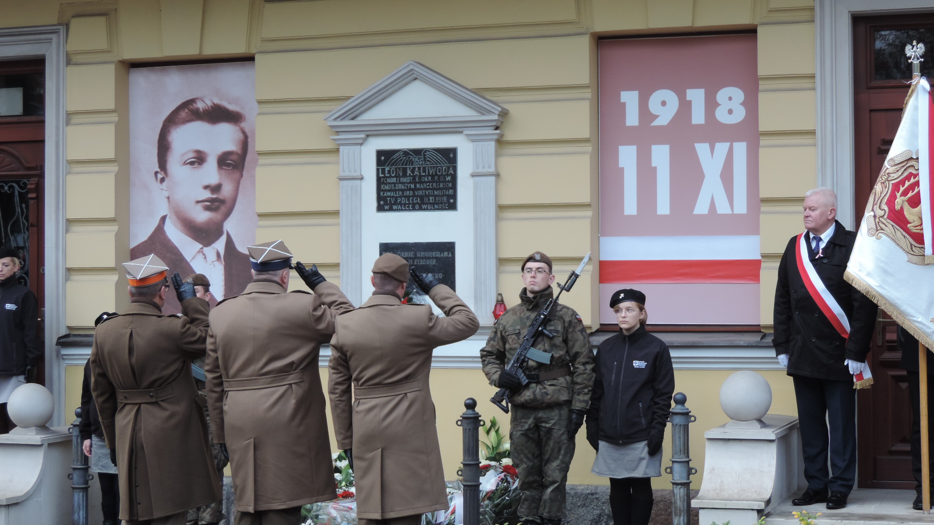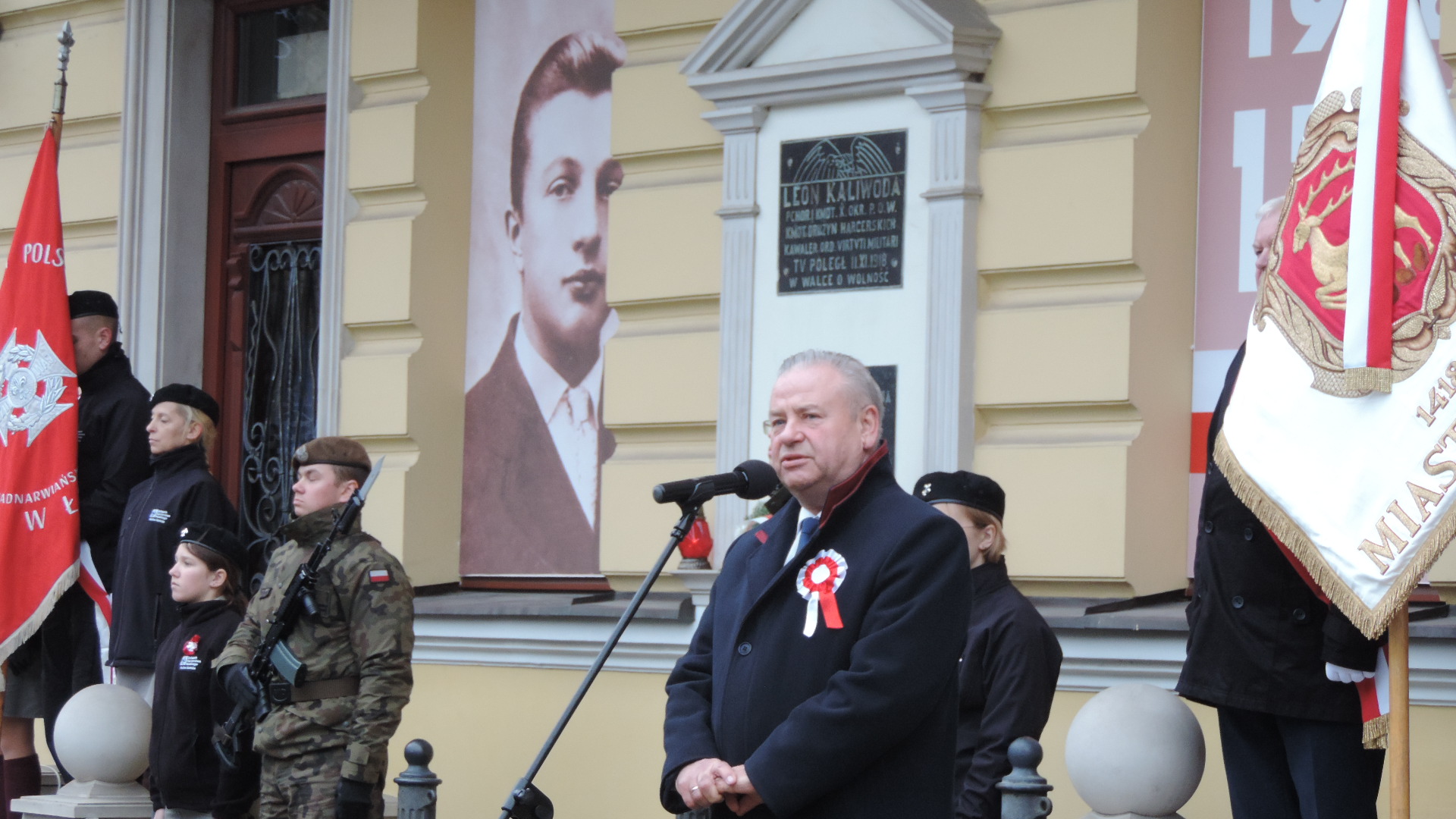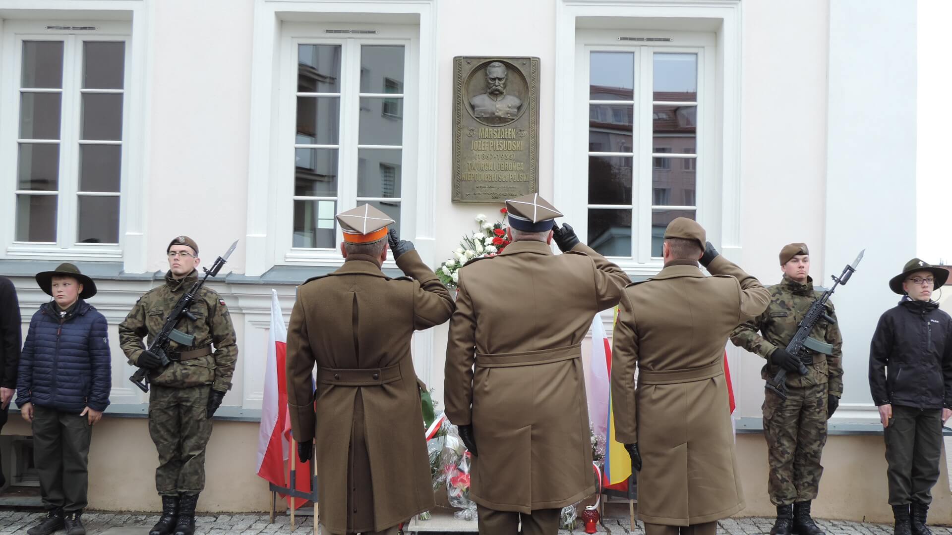 Kwiaty z okazji Święta Niepodległości złożono w Łomży także pod tablicą na tzw. Domku Pastora, która upamiętnia pobyt w tym mieście Józefa Piłsudskiego, a główne uroczystości rocznicowe rozpoczęły się o 13:00 na ul. Sienkiewicza, gdzie poległ 101 lat temu dowódca łomżyńskiego okręgu POW - Leon Kaliwoda.