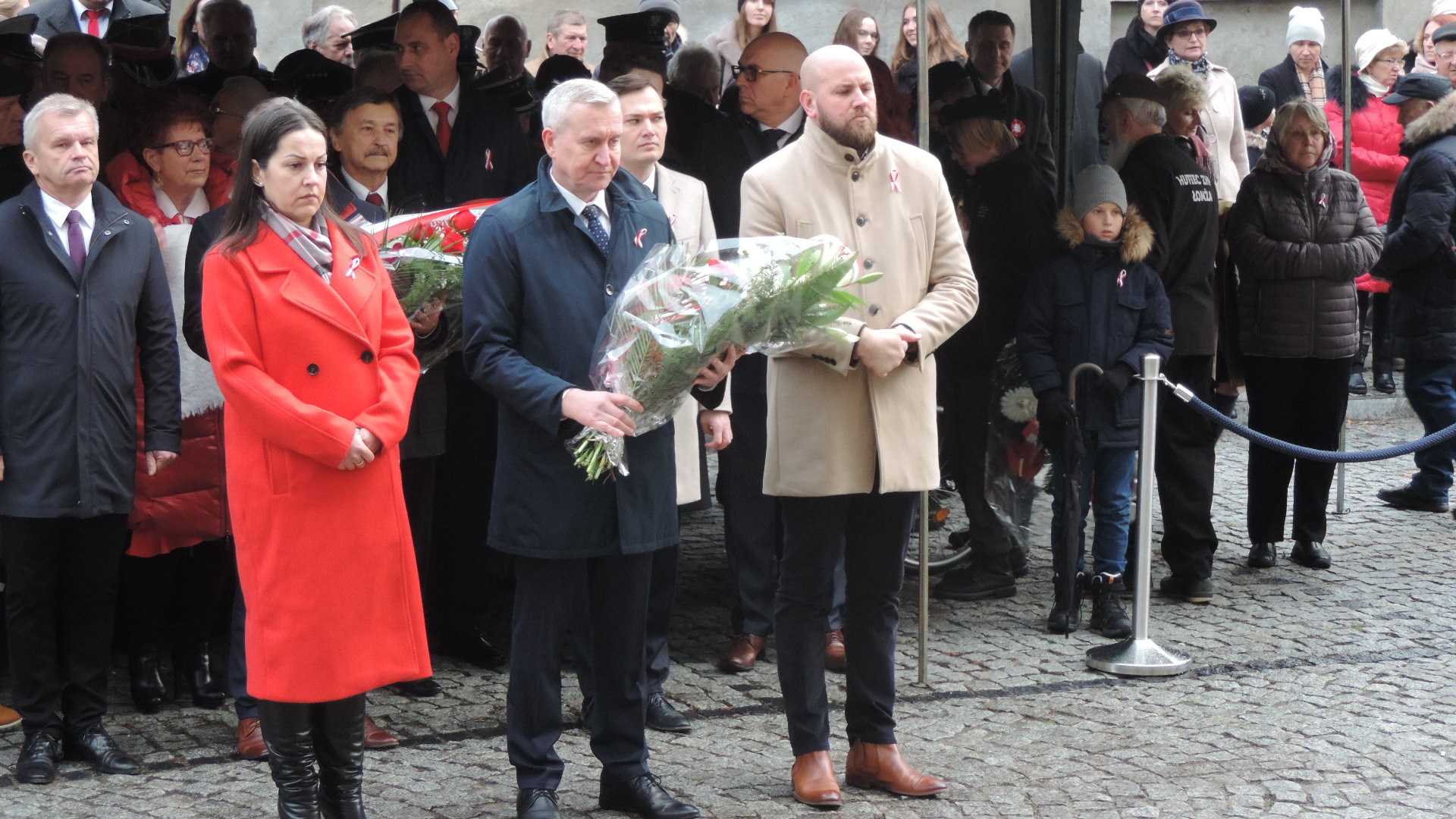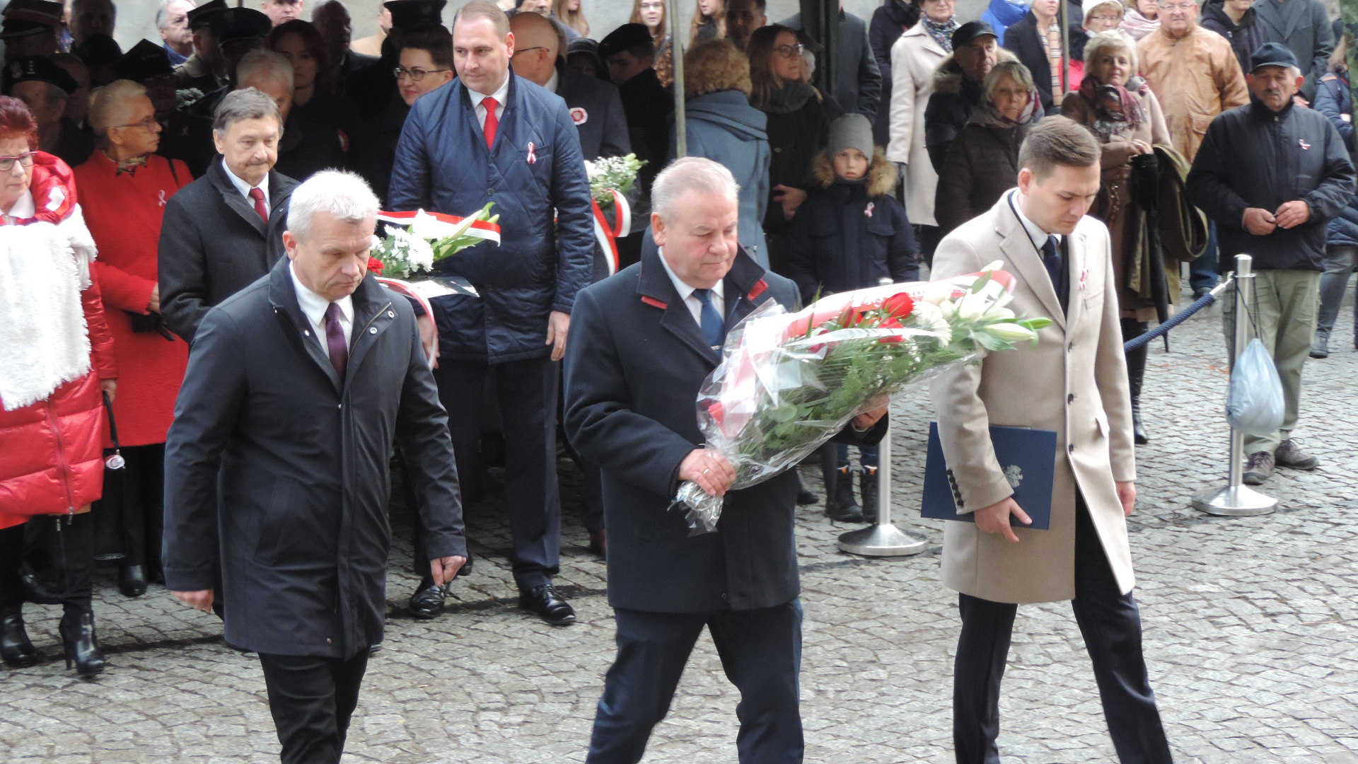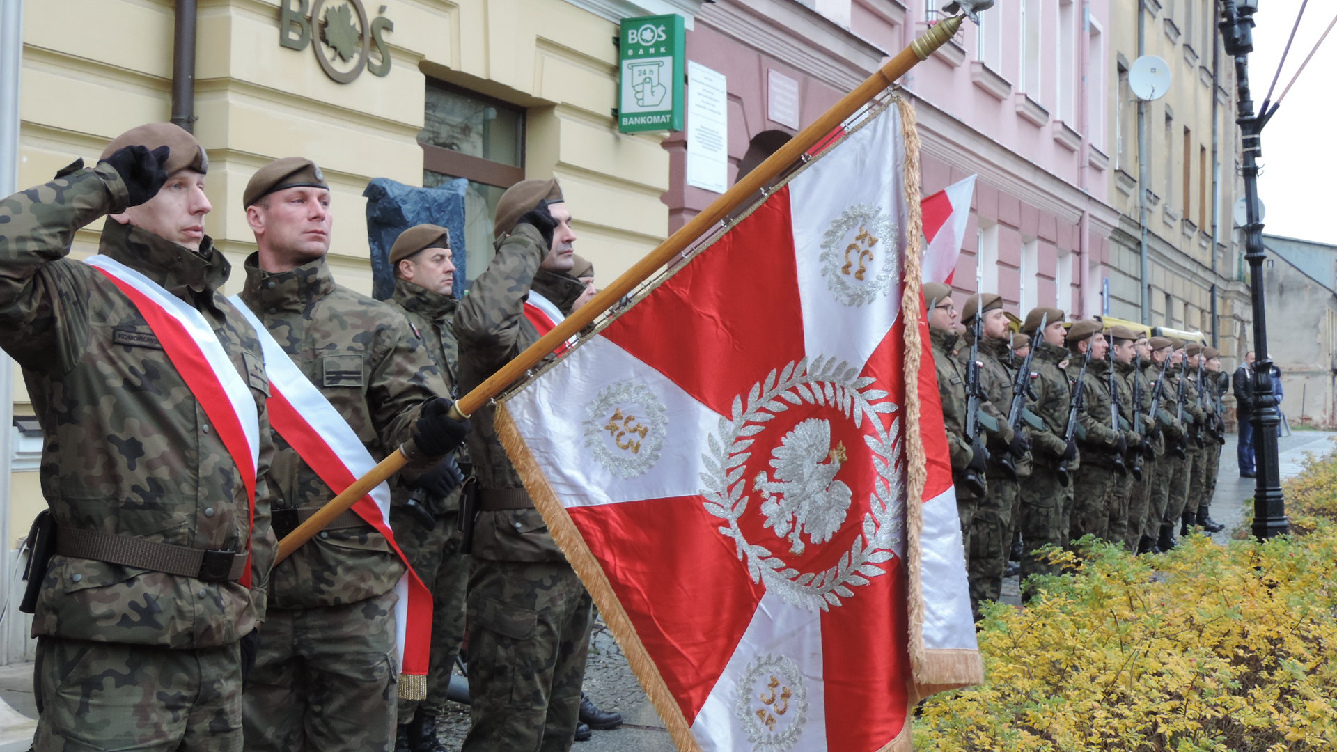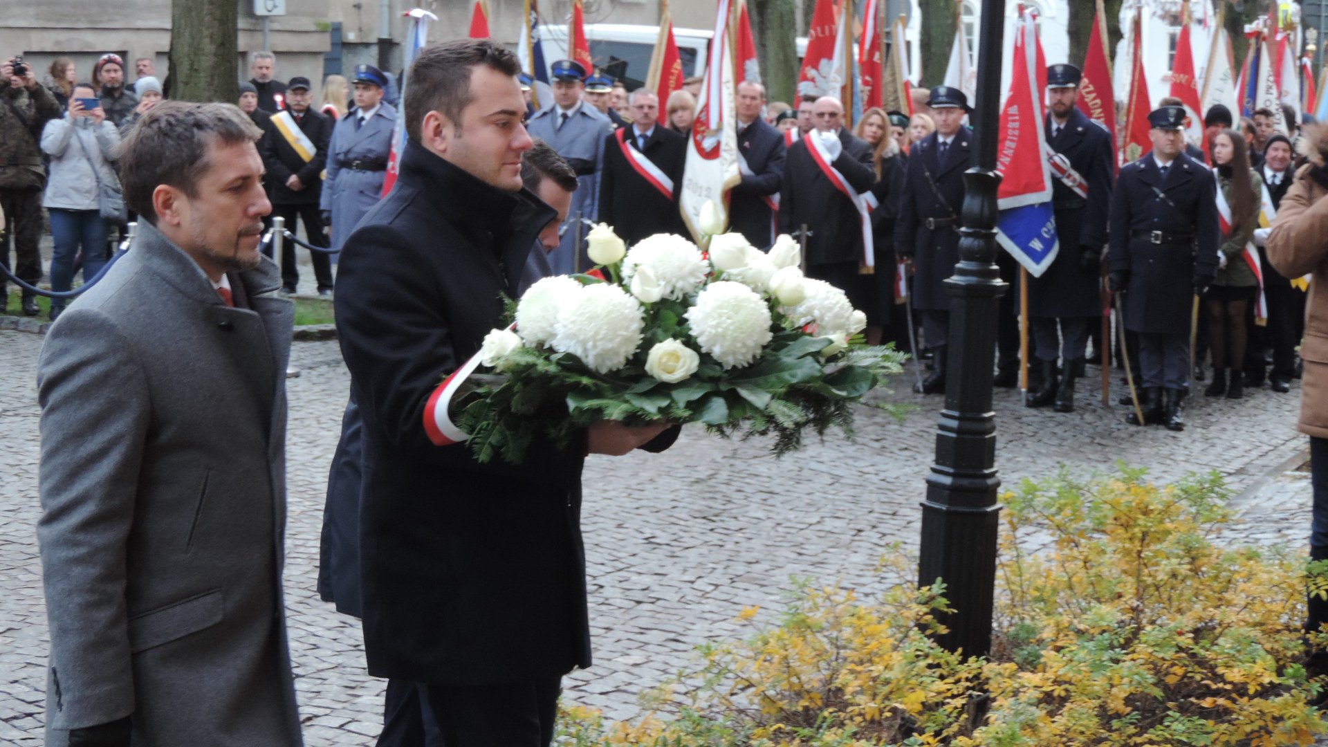 Kwiaty z okazji Święta Niepodległości złożono w Łomży także pod tablicą na tzw. Domku Pastora, która upamiętnia pobyt w tym mieście Józefa Piłsudskiego, a główne uroczystości rocznicowe rozpoczęły się o 13:00 na ul. Sienkiewicza, gdzie poległ 101 lat temu dowódca łomżyńskiego okręgu POW - Leon Kaliwoda.