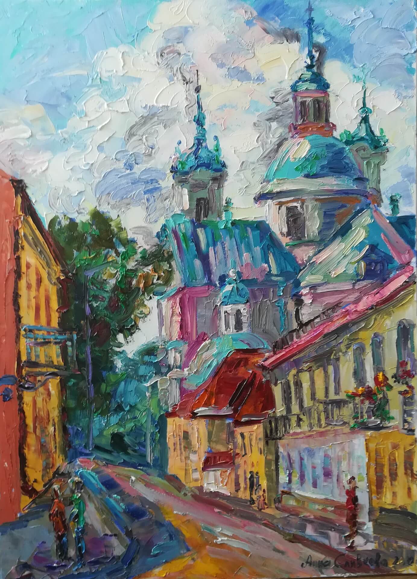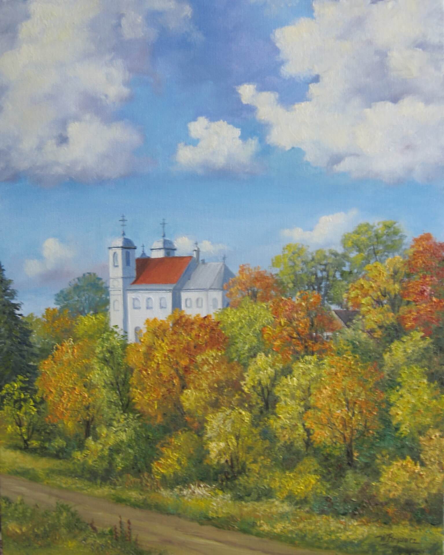 "Pejzaż z kościołem" Walentyny Brysacz za 800 zł wylicytował pan Andrzej.