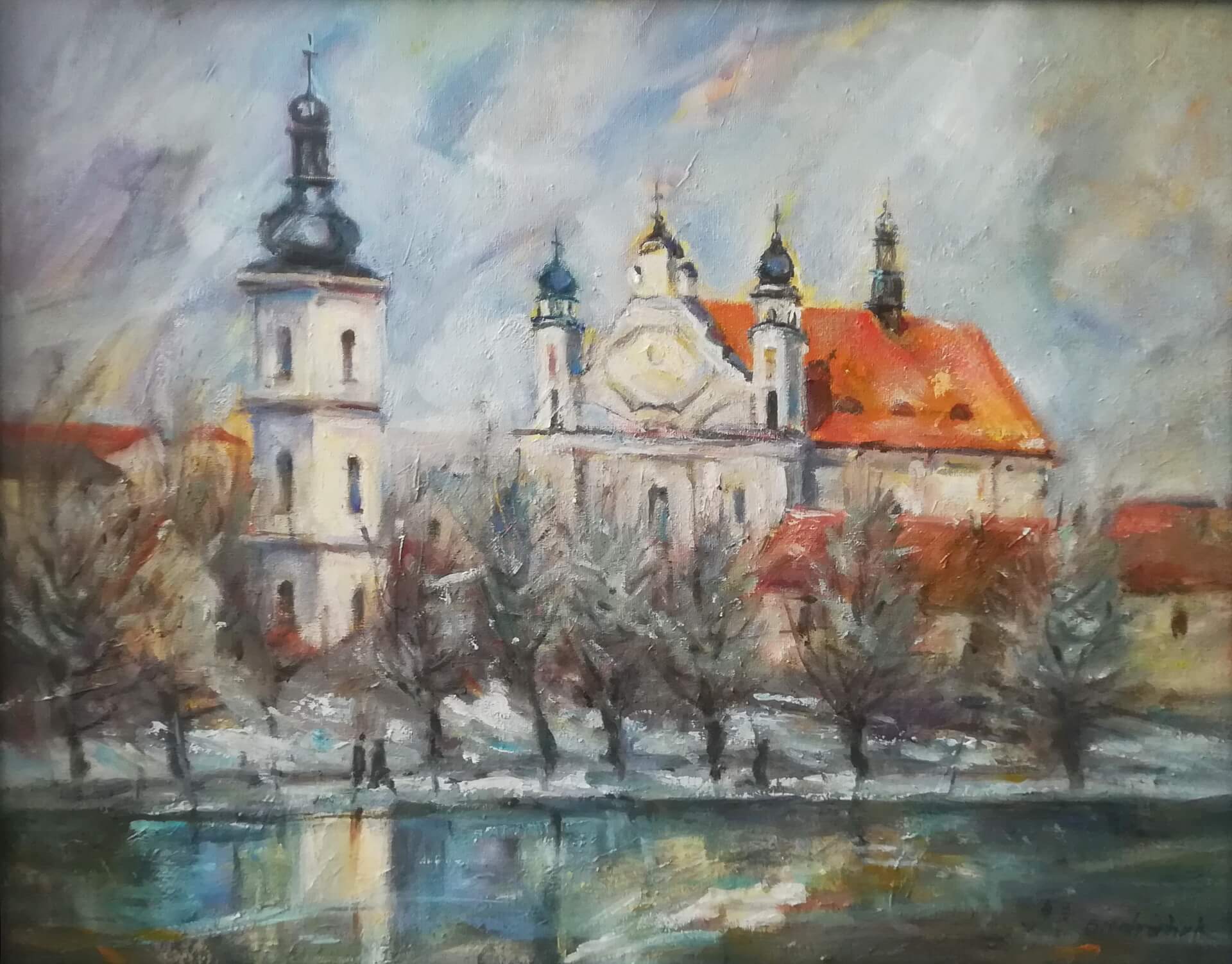 Codziennie licytowaliśmy dwa obrazy malarzy grodzieńskich. W piątek (29.11) - czyli ostatniego dnia naszej akcji - były to "Martwa natura z lustrem" Żanny Stebnowskiej i "Pejzaż z kościołem" Walentyny Brysacz.