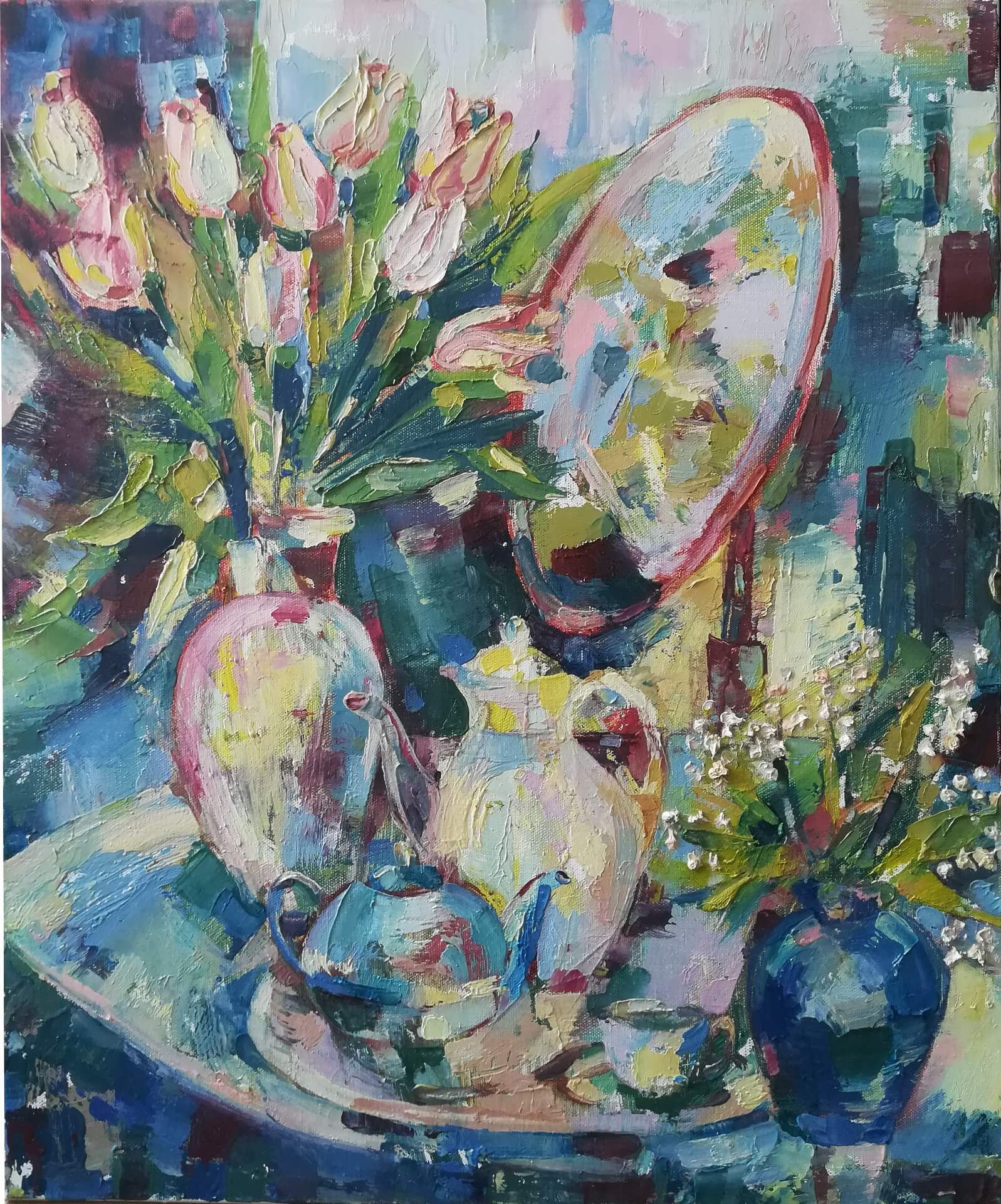 Obraz "Martwa natura z lustrem" Żanny Stebnowskiej za 1100 zł kupił pan Krzysztof.