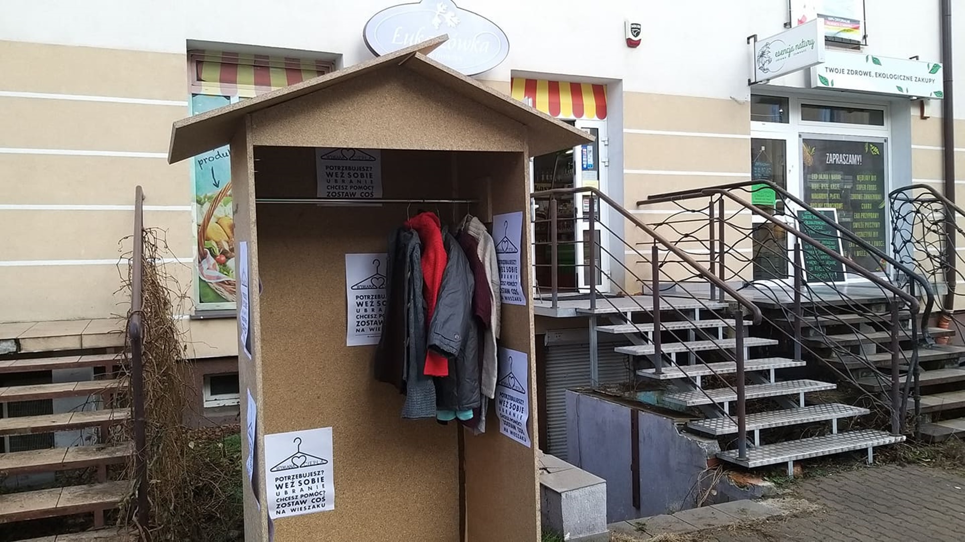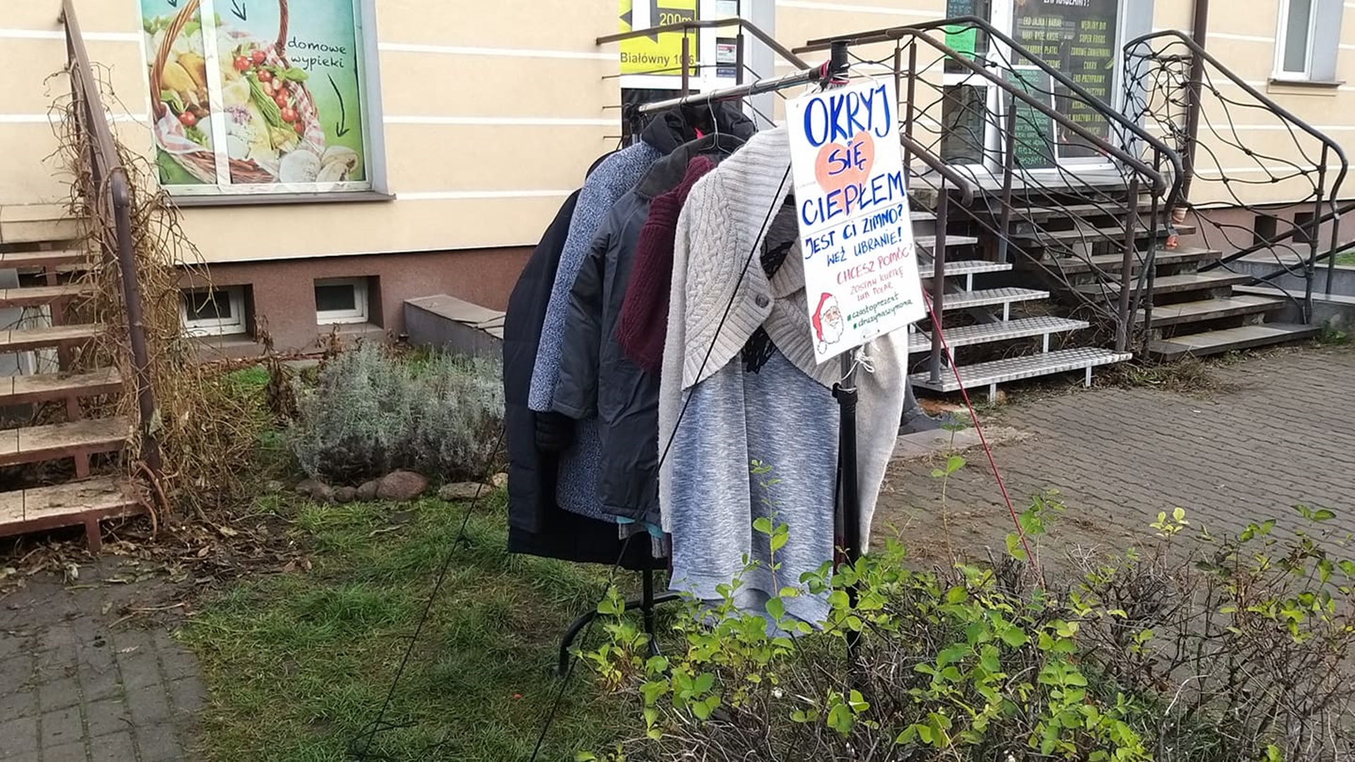 Zasada jest prosta. W szafie ustawionej przy ul. Białówny pojawiły się wieszaki. Chętni mogą na nich wieszać ubrania, głównie kurtki, bluzy, których już nie potrzebują lub które zwyczajnie chcieliby podarować komuś w ramach dobrego uczynku. Z ubrań znajdujących się na wieszakach może skorzystać każdy, kto tego potrzebuje. Nikt nie będzie zadawać niepotrzebnych pytań.