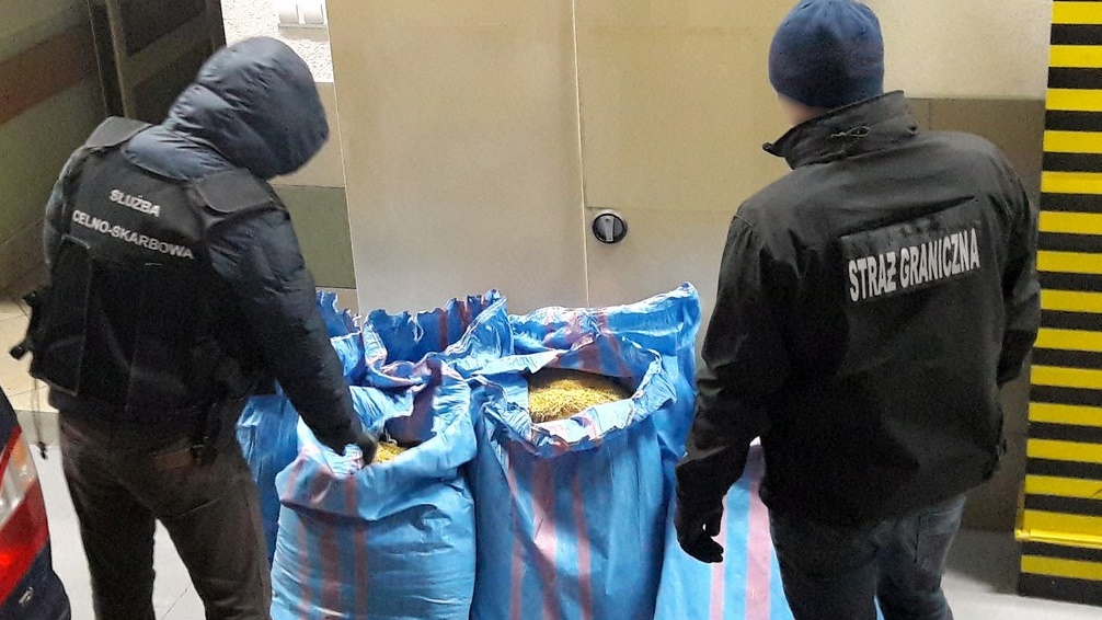 Funkcjonariusze KAS i straży granicznej zatrzymali transport nielegalnego tytoniu