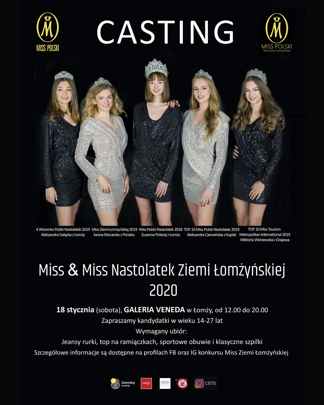Organizatorzy zapraszają kandydatki w wieku od 14 do 27 lat. Casting w Galerii Veneda rozpoczyna się o 12:00 i potrwa do 20:00. Wybrane dziewczyny będą walczyły o koronę Miss i Miss Nastolatek.