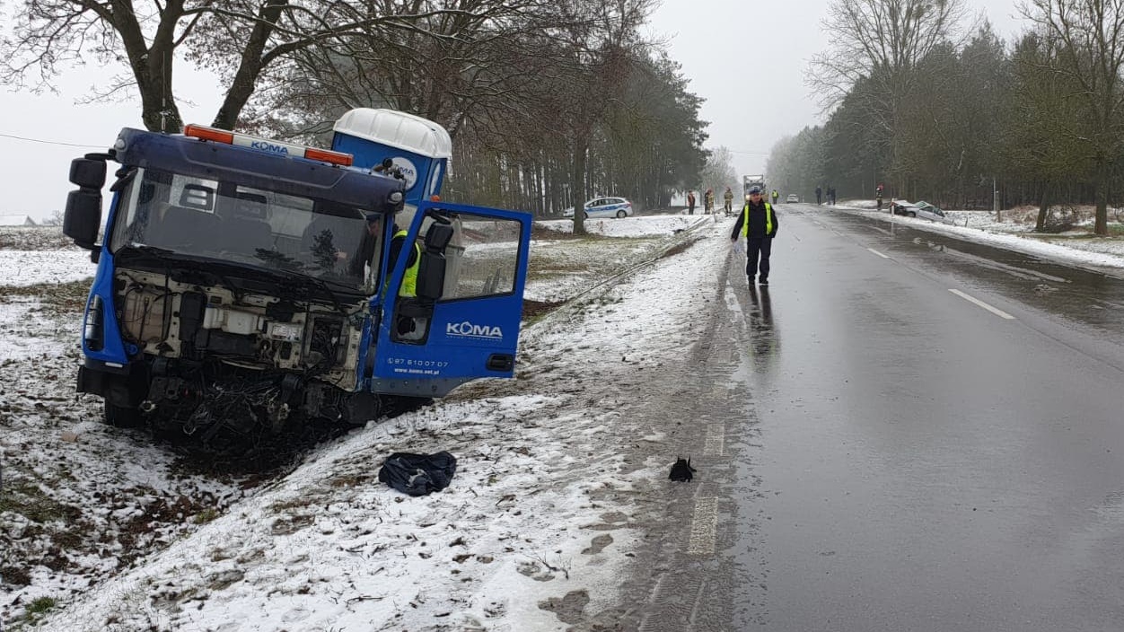 Ze wstępnych ustaleń policji wynika, że kierowca volvo prawdopodobnie nie dostosował prędkości do warunków, samochód wpadł w poślizg i zderzył się czołowo z jadącym w stronę Moniek - ciężarowym iveco. Obaj kierowcy trafili do szpitala. Byli trzeźwi.
