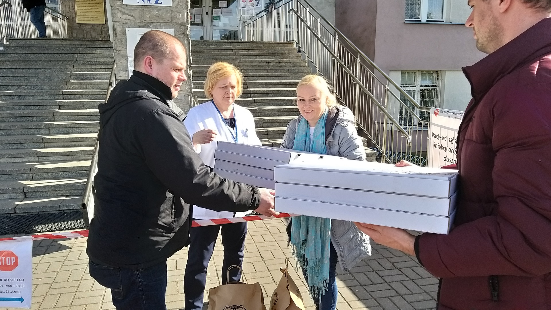 Kibice do szpitala dostarczyli kilkanaście pizz i ciasto. W piątek (20.03) rodziców dzieci z UDSK wsparła Jaga Pizza i katering "Kuchnia Vikinga".