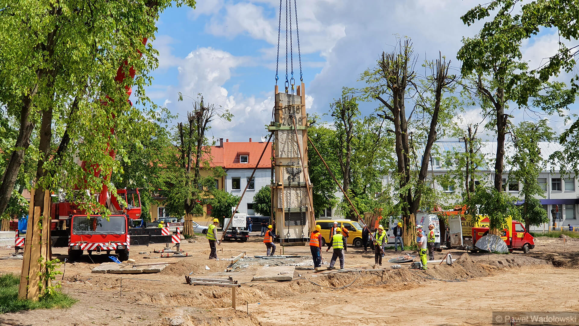 - Nie wiemy jak się ten pomnik zachowa podczas transportu. Mamy dźwig, który może podnieść 160 ton i piłę do przecięcia pomnika. Lekko napinamy liny i podcinamy cokół. A potem przenosimy w nowe miejsce. Pomnik waży 20 ton i jest z piaskowca. Zrobiliśmy specjalne zabezpieczenia, żeby się nie rozleciał - mówi Waldemar Skrodzki z firmy, która przebudowuje kolneński park.