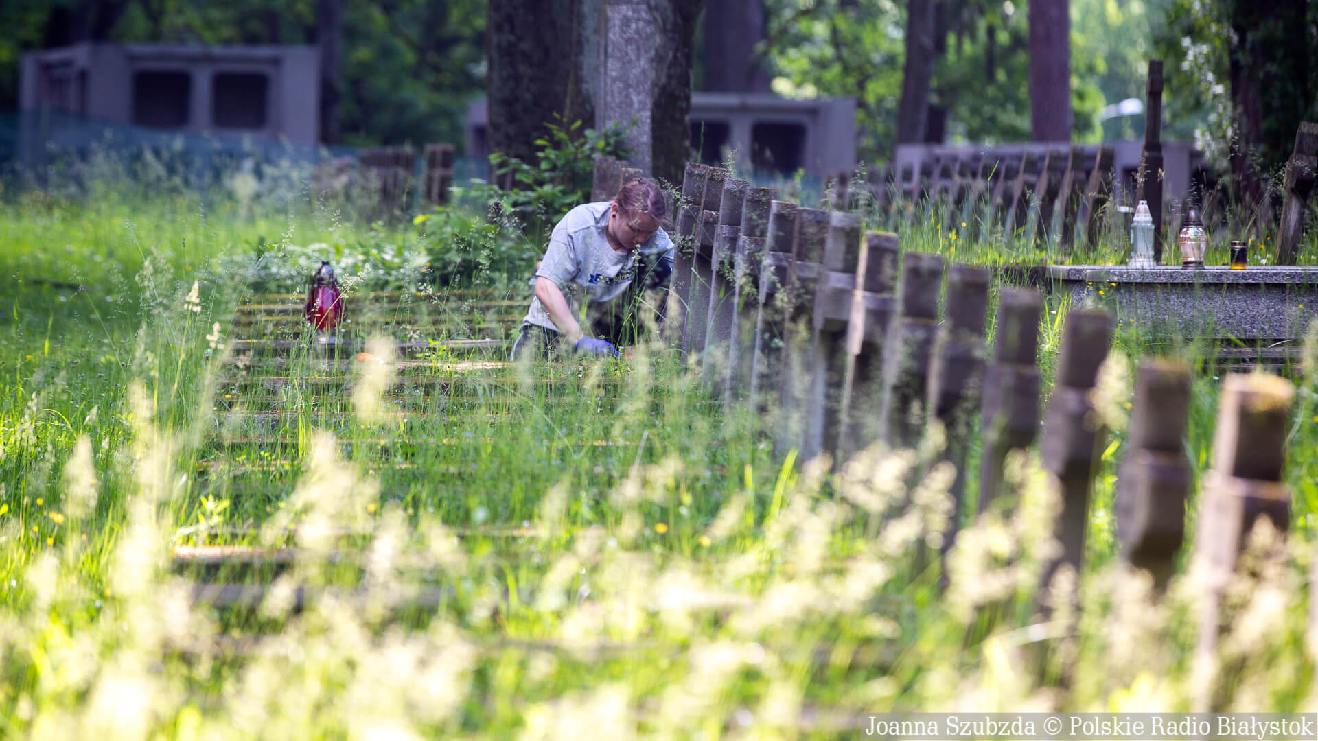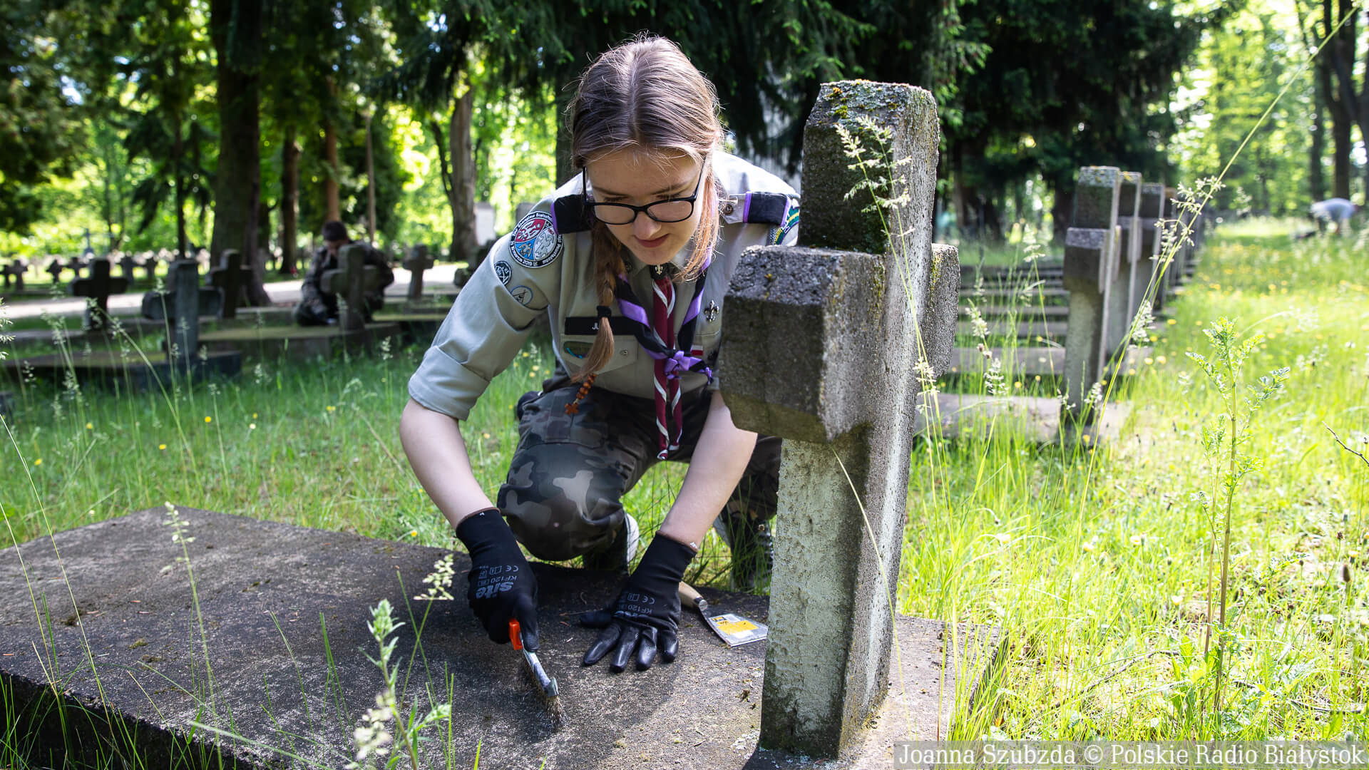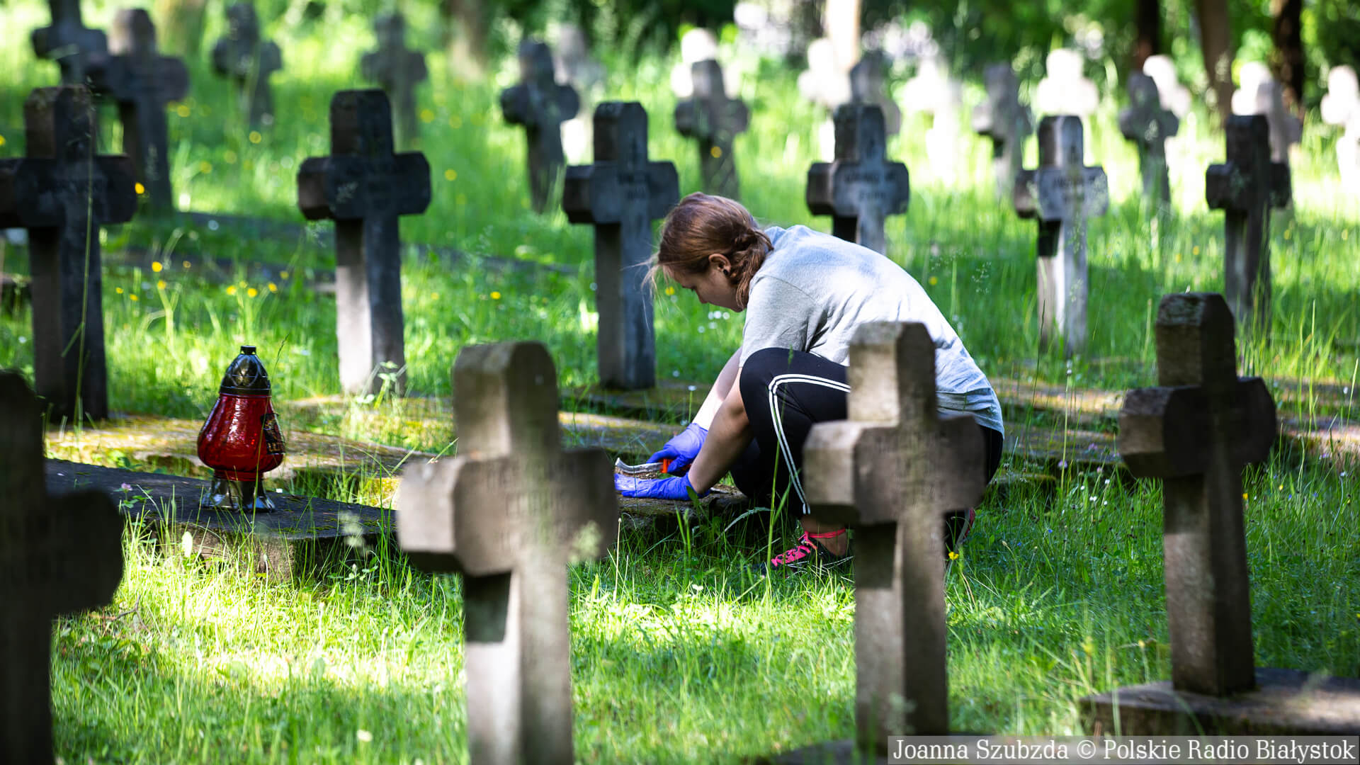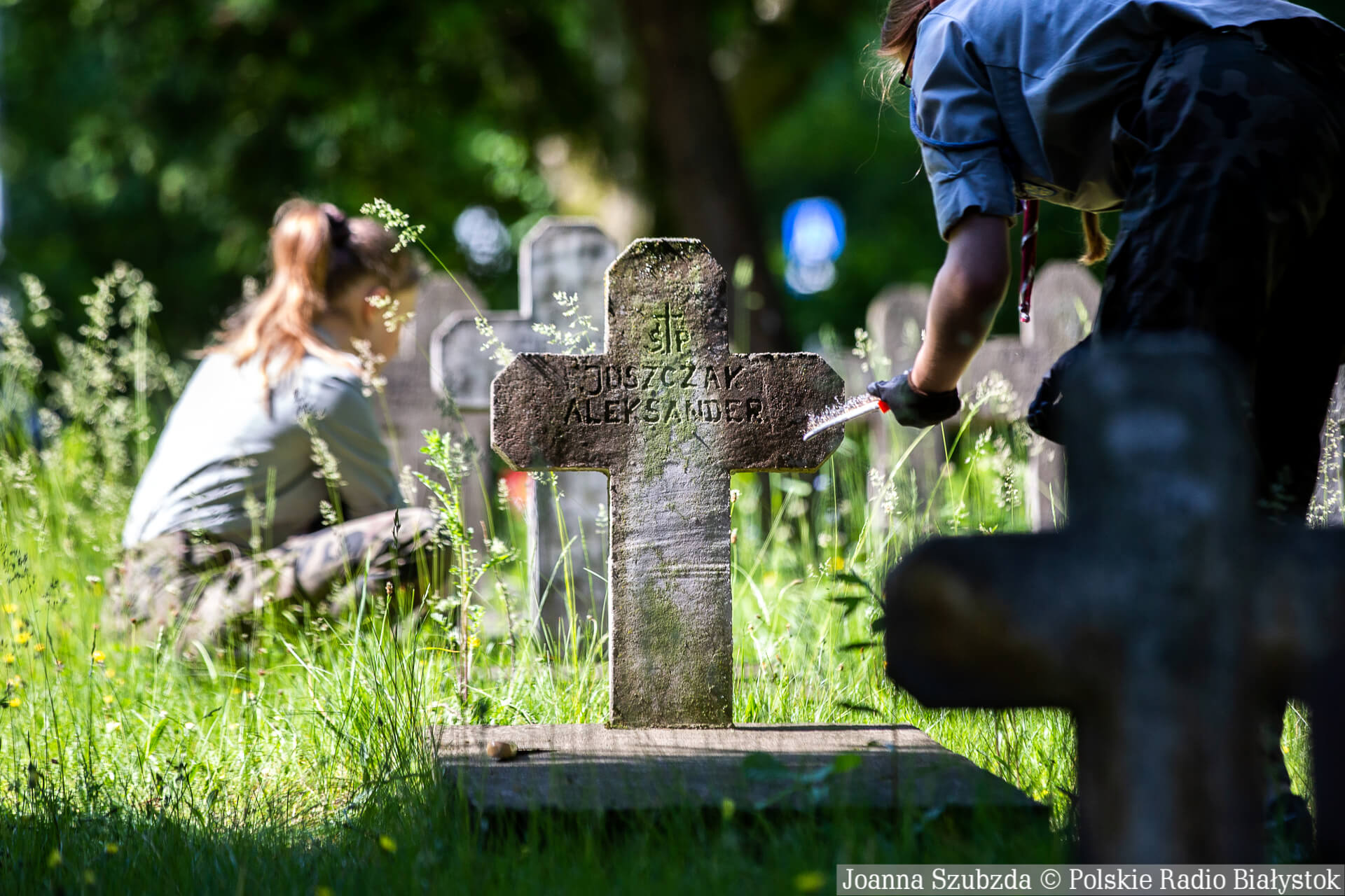 Sprzątanie grobów na cmentarzu wojskowym w Białymstoku, fot. Joanna Szubzda