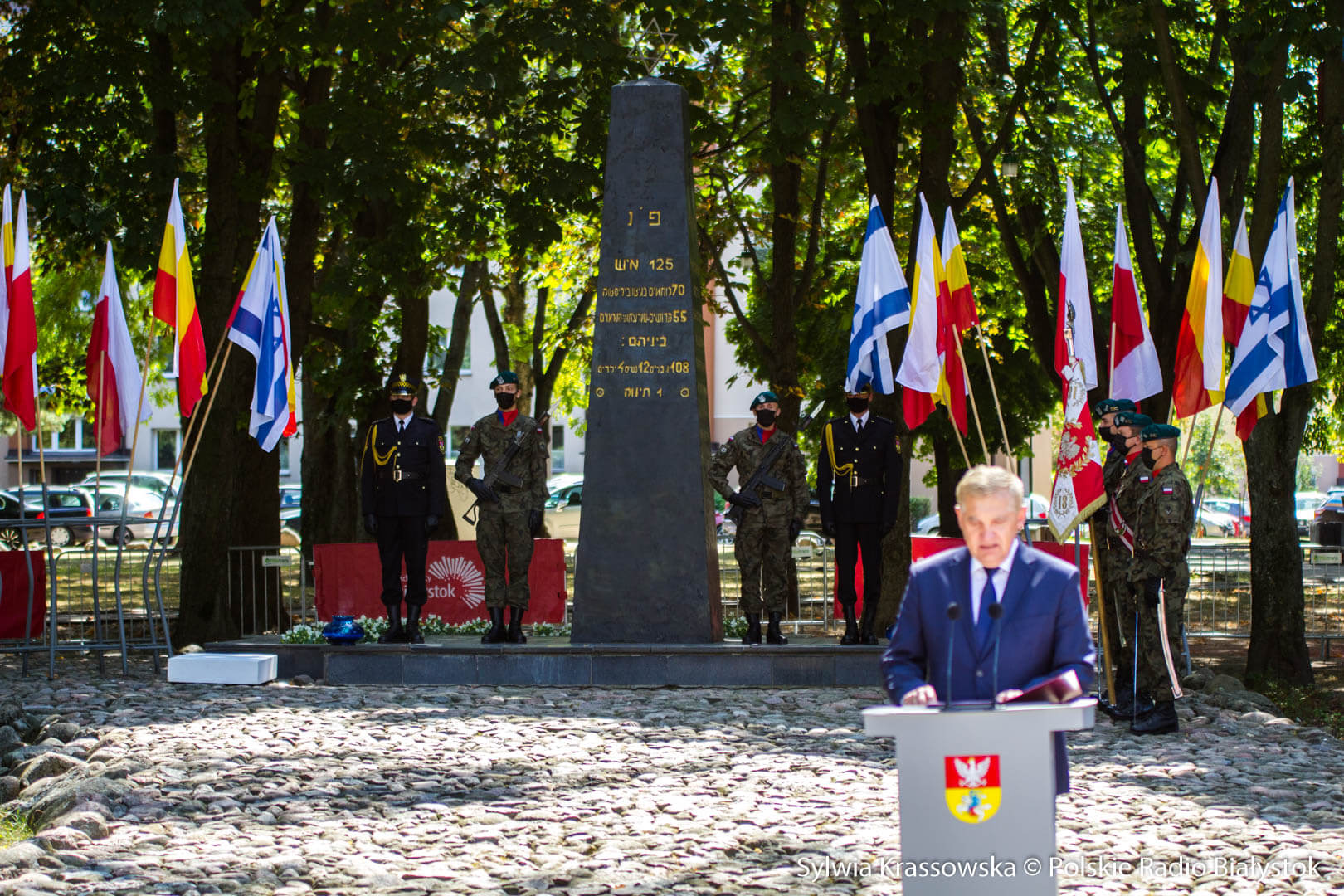 W związku z pandemią koronawirusa nie było m.in. przedstawicieli dawnej społeczności Żydów białostockich mieszkających obecnie w Izraelu oraz reprezentantów Yehud - miasta partnerskiego Białegostoku, które nadesłało okolicznościowy list. List do uczestników i organizatorów uroczystości skierował też premier Mateusz Morawiecki i ambasada Izraela w Polsce.