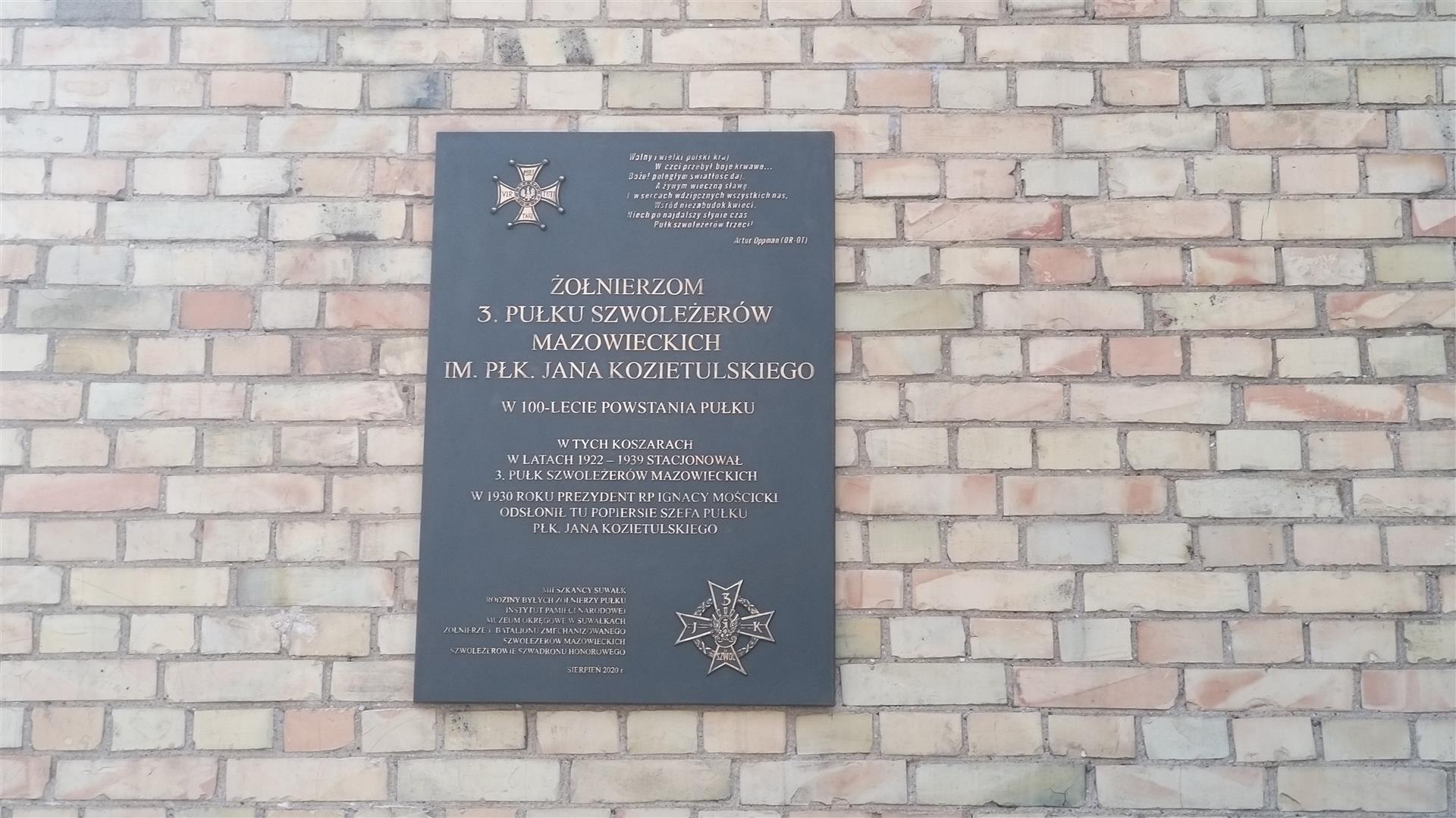 Zwieńczeniem uroczystości było odsłonięcie tablicy pamięci żołnierzy. Zawisła ona na budynku, gdzie w okresie międzywojennym stacjonowali kawalerzyści. W uroczystościach wzięli udział przedstawiciele samorządu, wojska, grupy rekonstrukcyjne, kawalerzyści na koniach oraz rodziny dawnych żołnierzy.