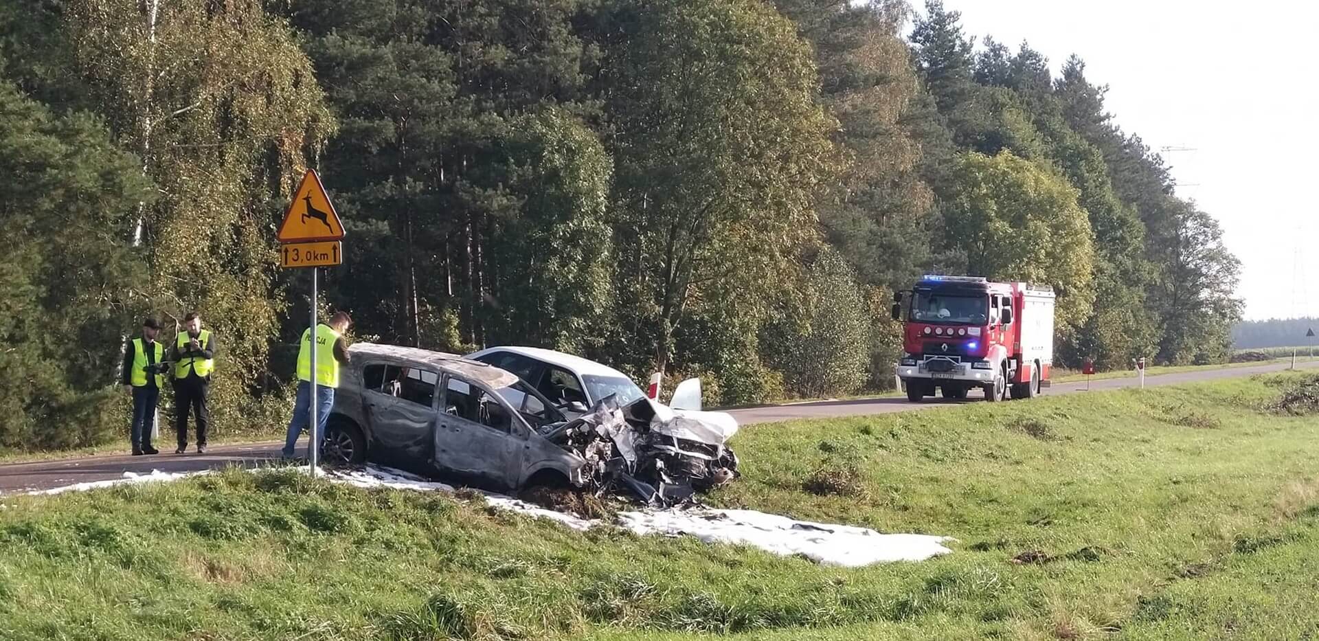 Po zderzeniu, samochód znalazł się na lewym pasie i zderzył się z jadącym z naprzeciwka renaultem.