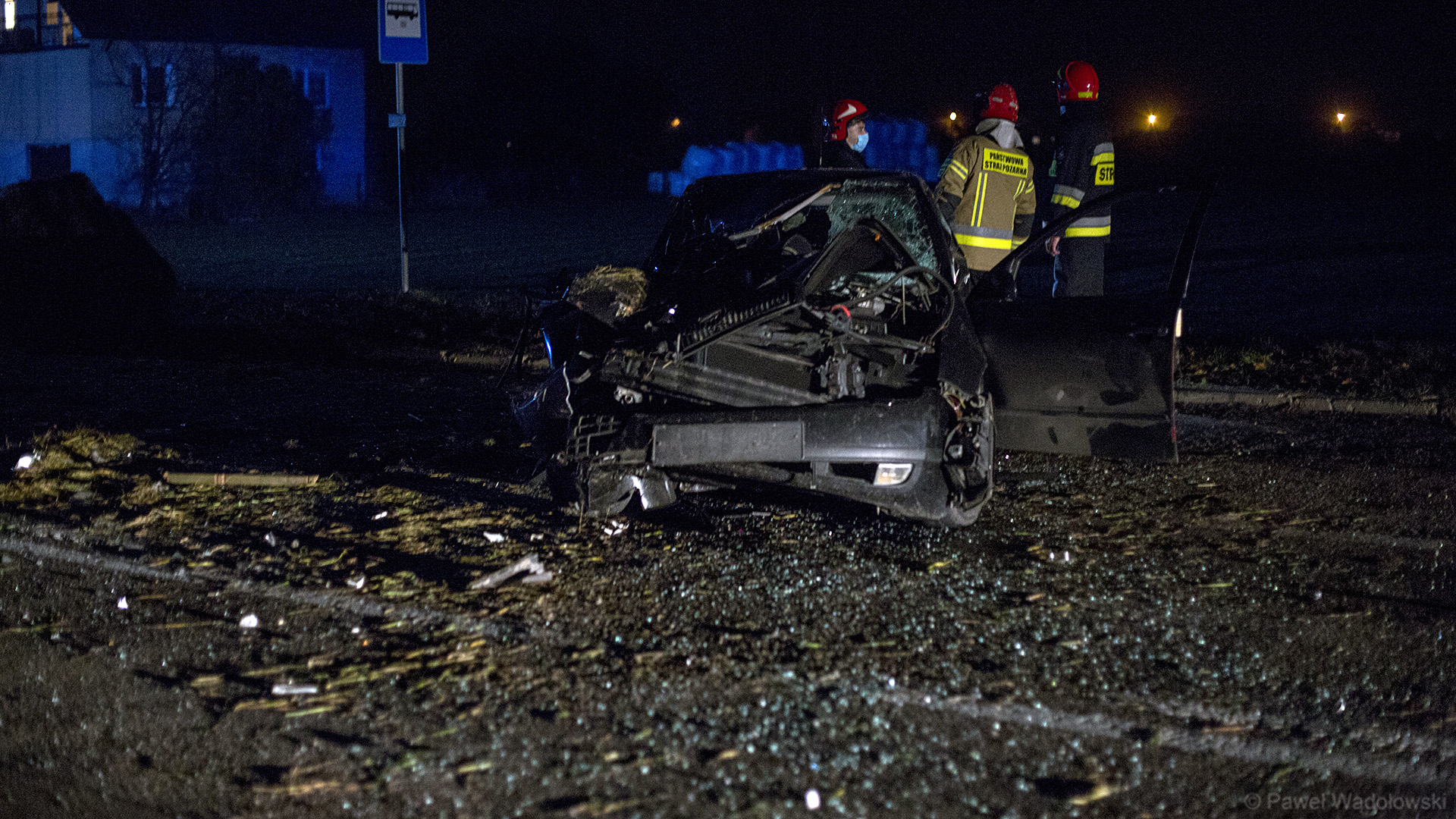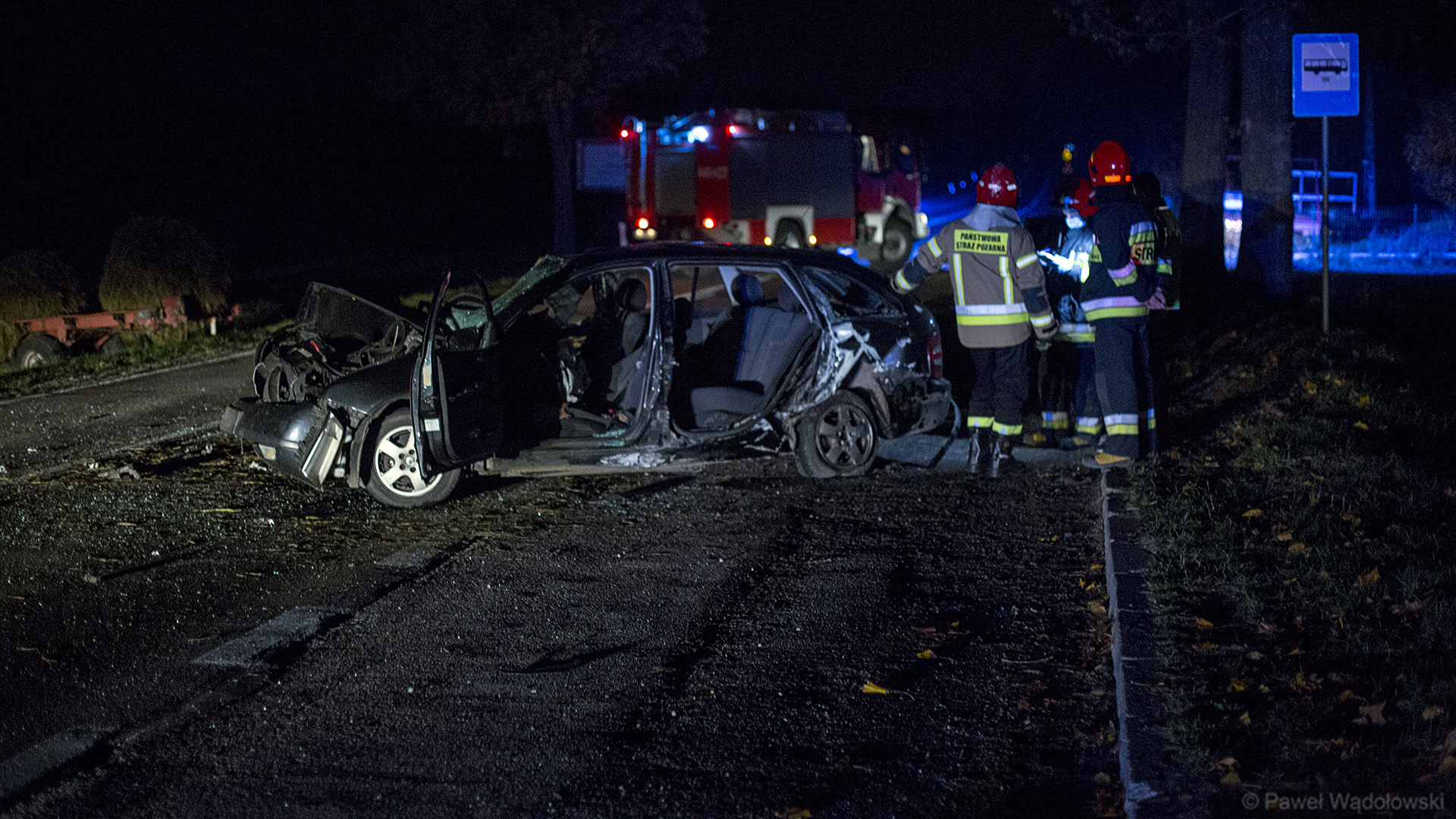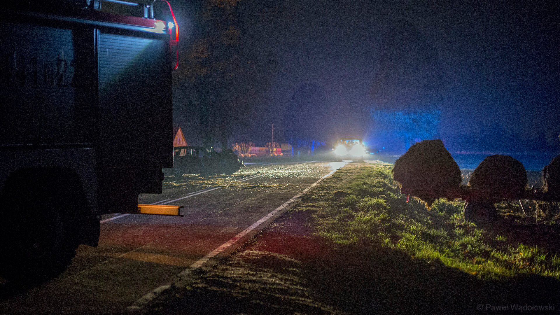 Jak wynika z pierwszych informacji - 28-letni kierowca skody uderzył w nieoświetlony tył przyczepy ciągniętej przez ciągnik rolniczy. Samochód zjechał na przeciwległy pas ruchu i zderzył się z jadącym z naprzeciwka kierowcą volvo.