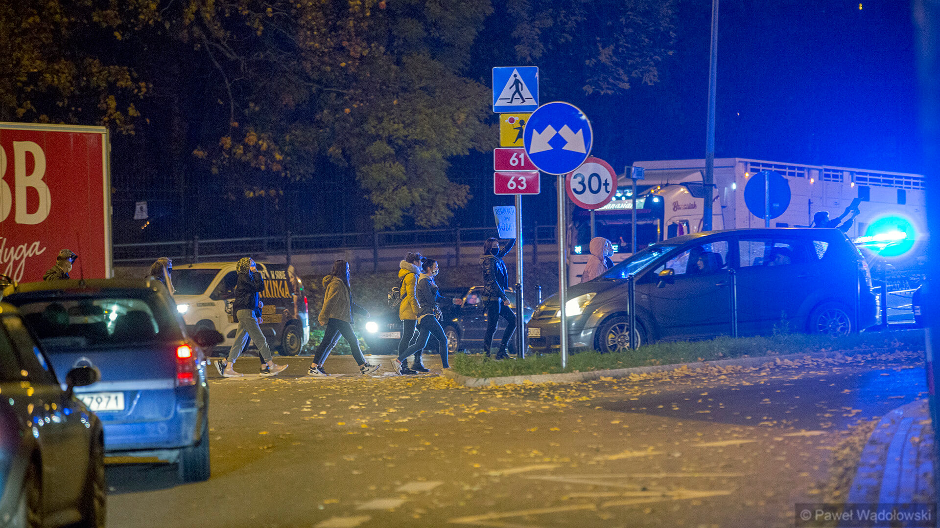Protest w Łomży przybrał dzisiaj zupełnie inną formę. Wcześniej protestujący spacerowali chodnikami wzdłuż głównych ulic w mieście, dzisiaj przesiedli się do samochodów. Pierwsze samochody można było zauważyć około godziny 19:00 na rondzie przy Placu Kościuszki. Policjanci będą kierować ruchem, jeśli protestujących będzie więcej - można zatem spodziewać się bardzo dużych utrudnień związanych z przejazdem przez Łomżę. Taka zmiana protestu wynika z tego, że organizatorzy dostali informację, że może dojść do próby zakłócenia ich przemarszu, stąd decyzja o tym, żeby przesiąść się do samochodów ze względu na bezpieczeństwo uczestników protestu - mówi z Łomży Paweł Wądołowski.