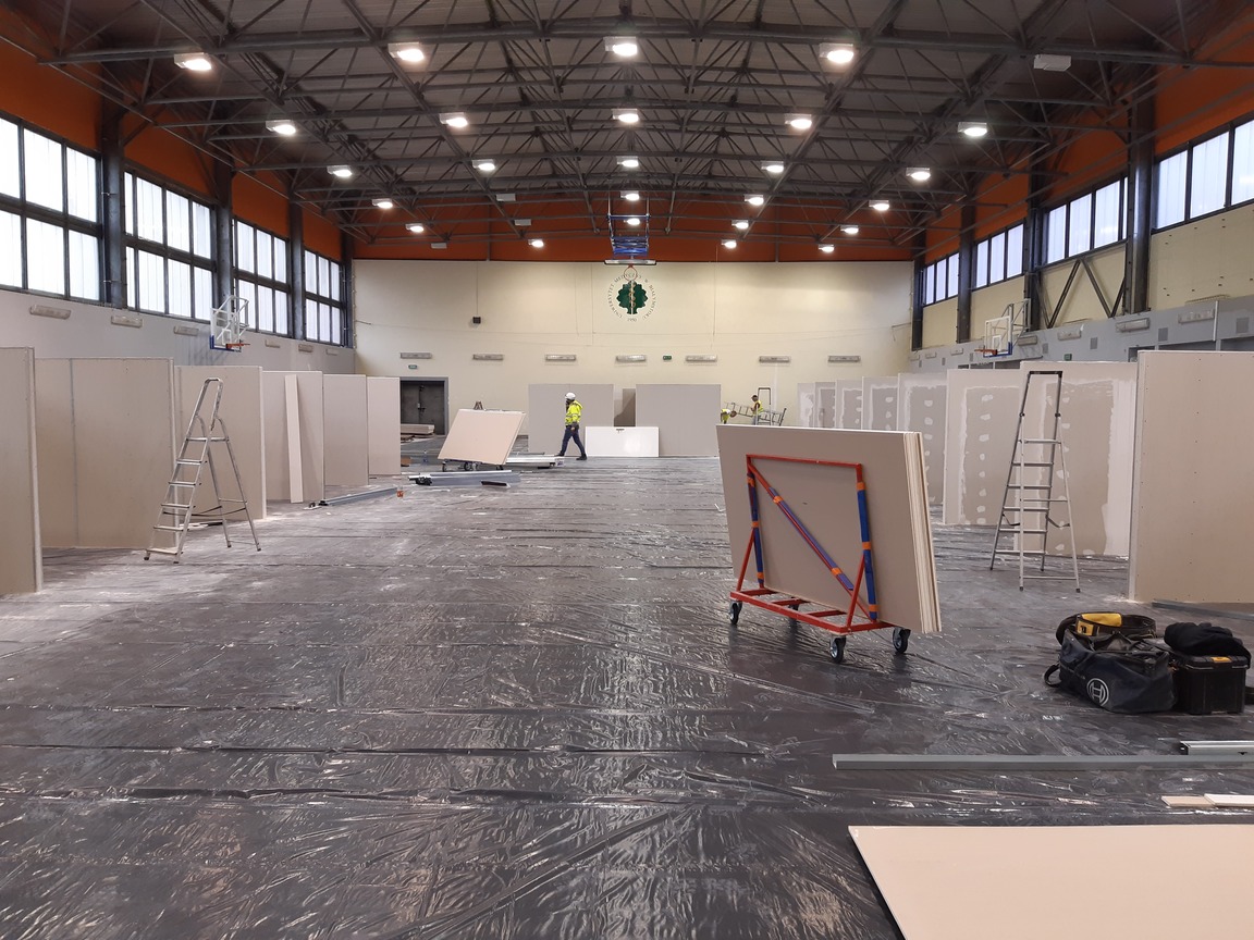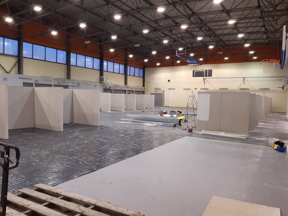 Trwa budowa szpitala tymczasowego w hali sportowej Uniwersytetu Medycznego w Białymstoku. Przyśpieszyły też prace wykończeniowe nowego oddziału szpitala zakaźnego na białostockich Dojlidach.