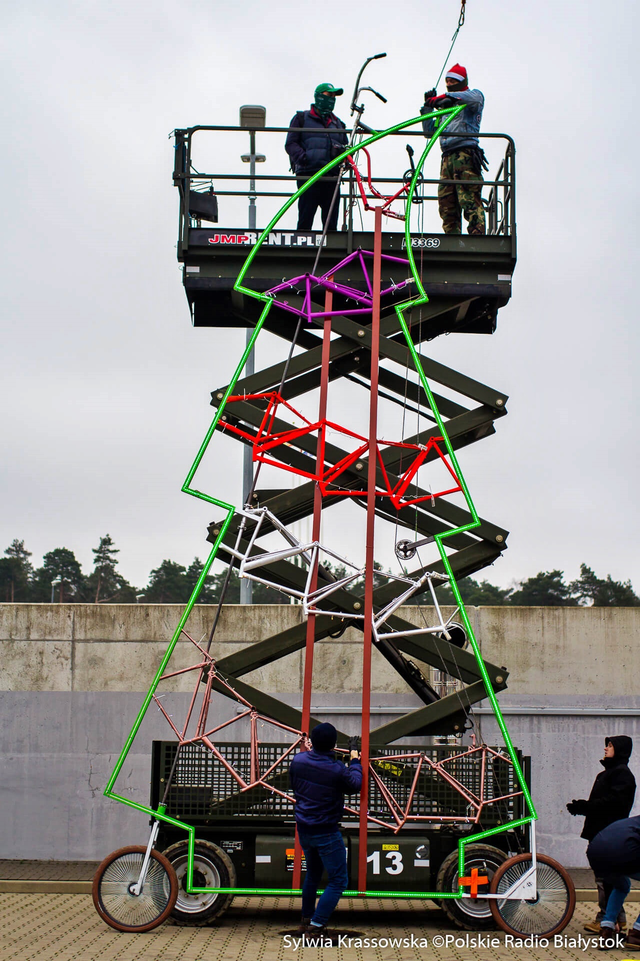 Rower w kształcie choinki skonstruował Adam Zdanowicz. Jednoślad miał ponad 7 metrów i był o metr wyższy od innej konstrukcji, na której pobito wcześniejszy rekord Guinnessa.