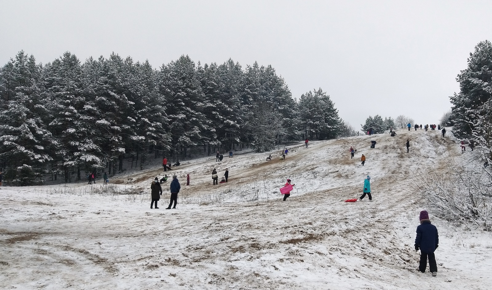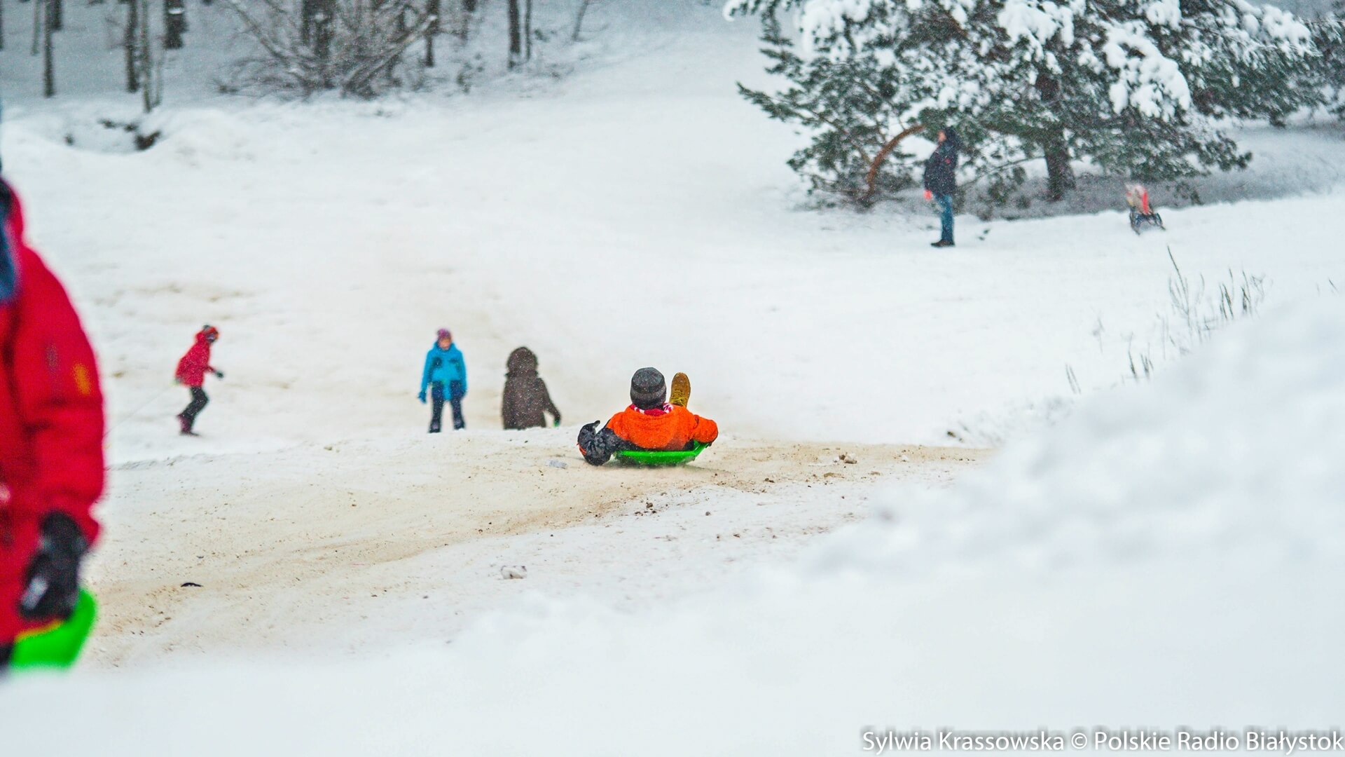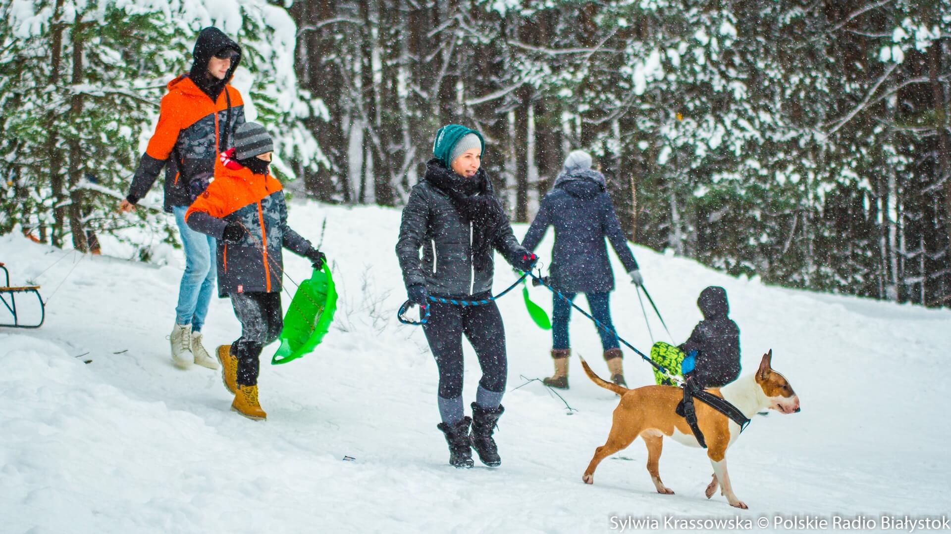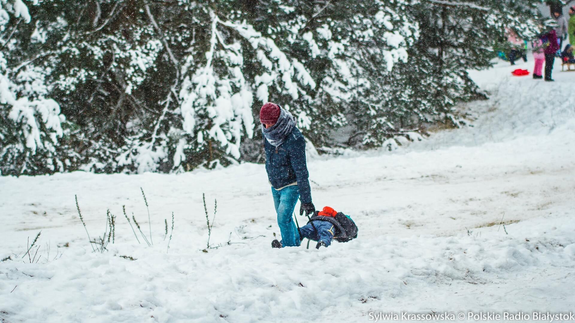 Rozjeżdżony już miejscami śnieg nie przeszkadza w dobrej zabawie. Wielu mieszkańców m.in. Białegostoku korzysta z uroków zimy w Ogrodniczkach koło Supraśla.