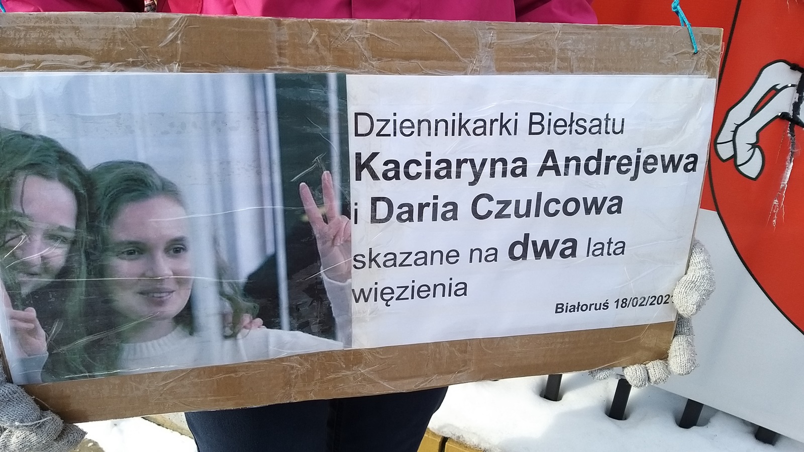 Protestują, bo nie zgadzają się z wyrokiem sądu wobec dziennikarek. W piątek (19.02) przed konsulatem Białorusi w Białymstoku zebrali się Białorusini, którzy potępiają kary dla dziennikarzy.