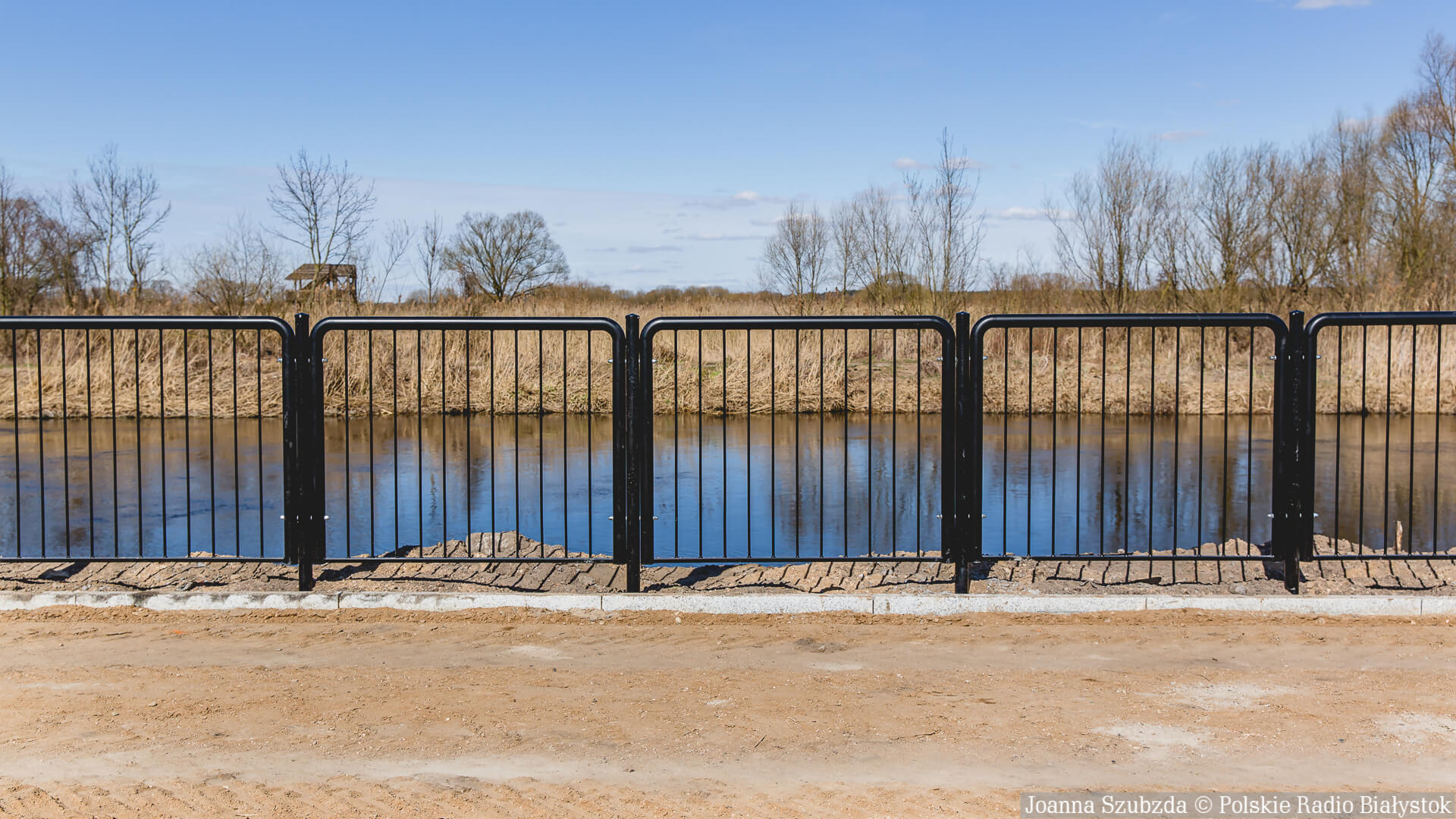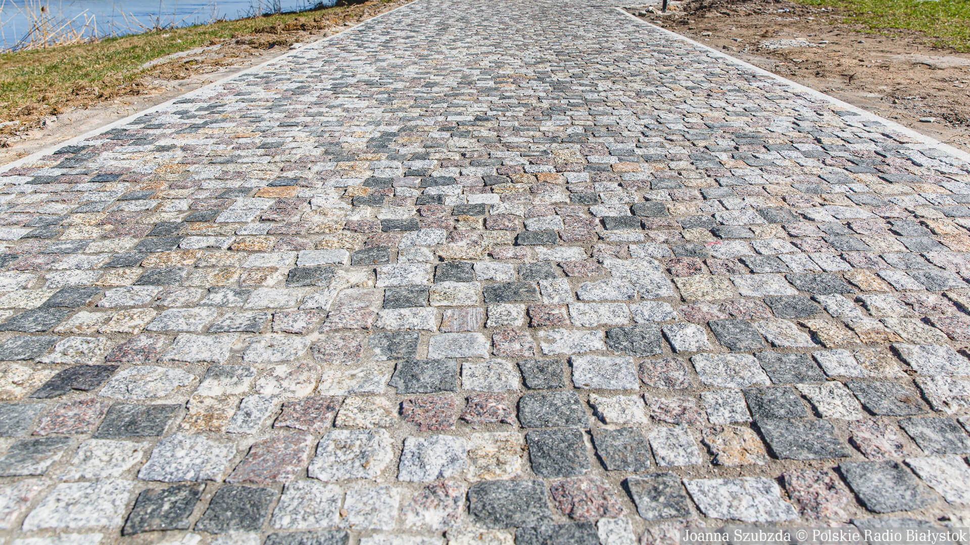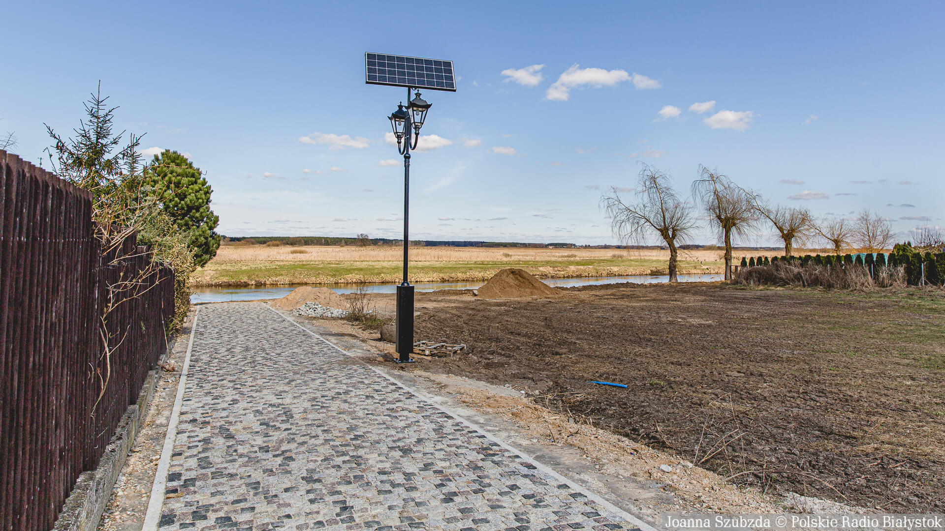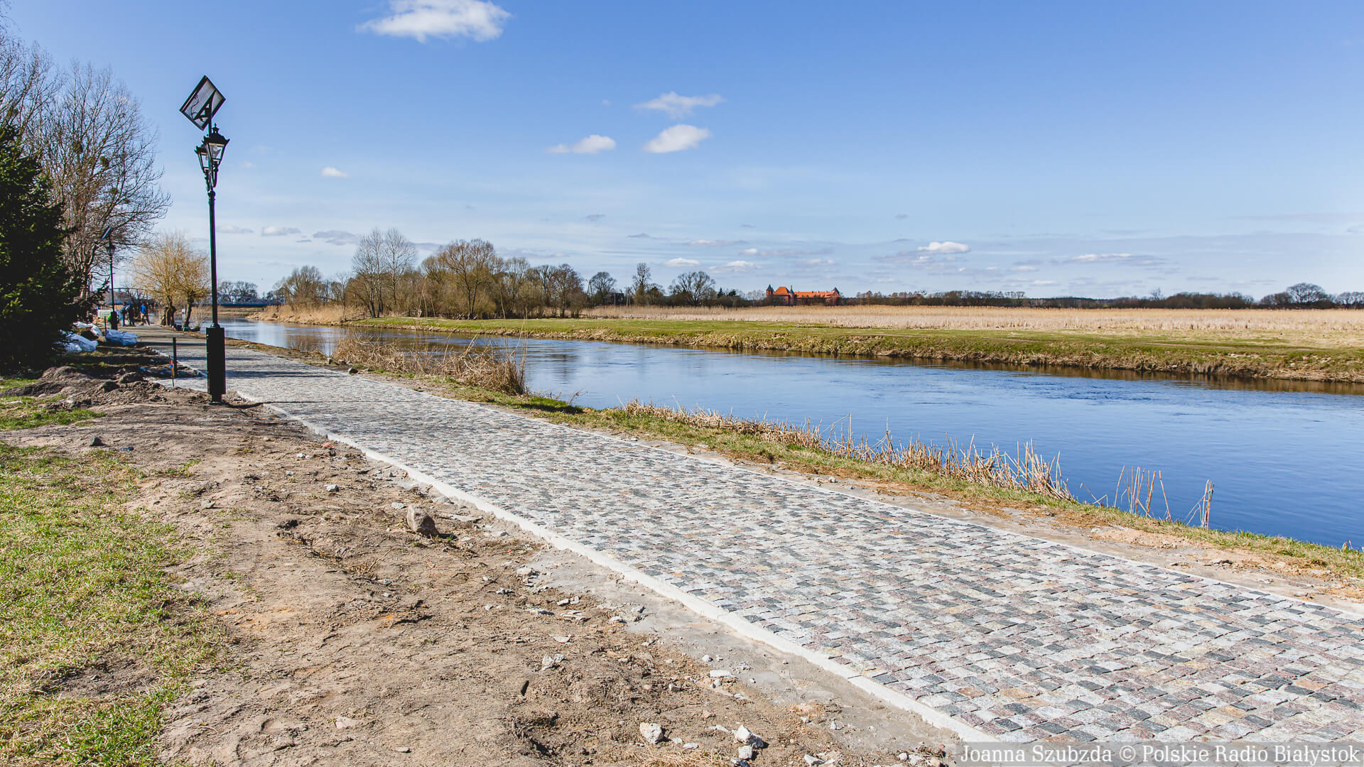 Jest tam już częściowo utwardzona droga z kostki brukowej. Ustawiono też oświetlenie zasilane panelami słonecznymi. Trwa montaż barierek wzdłuż rzeki.