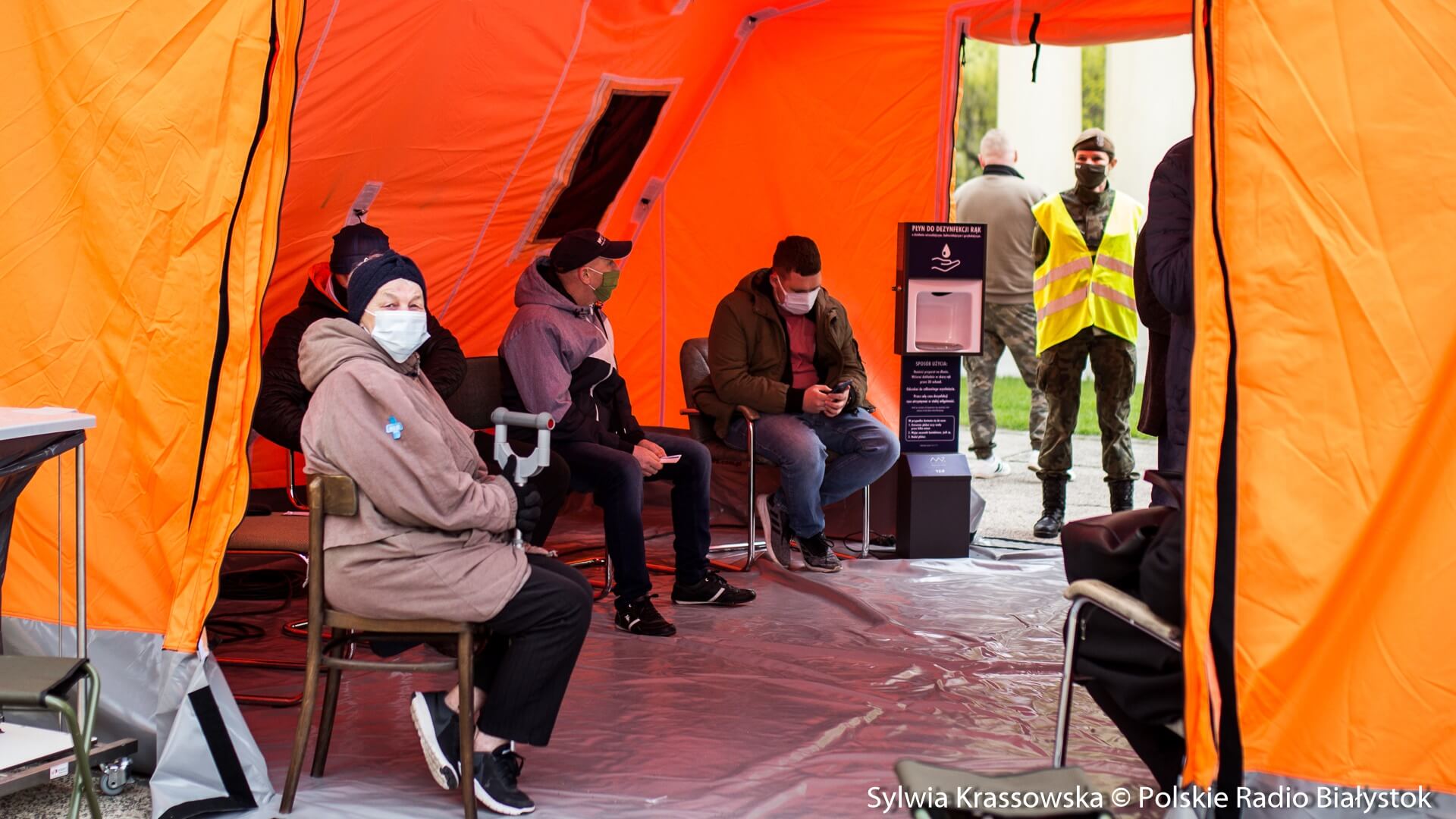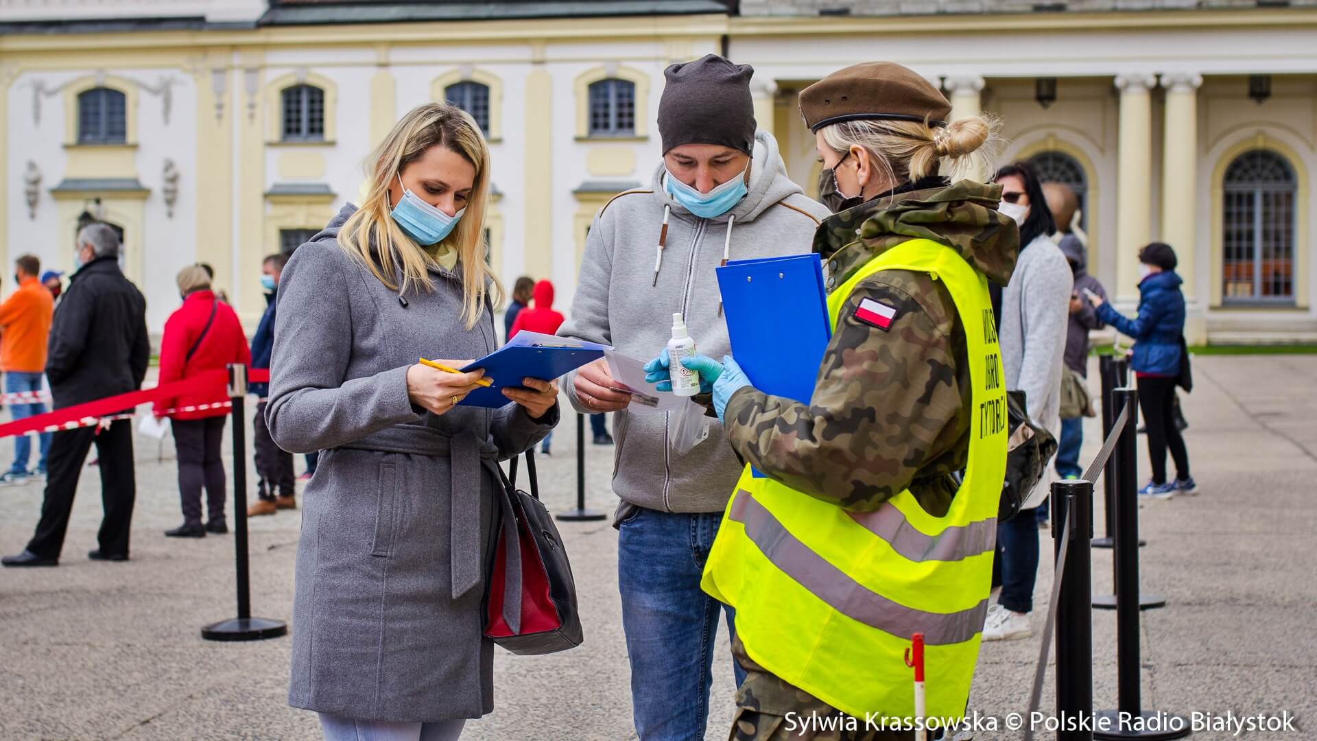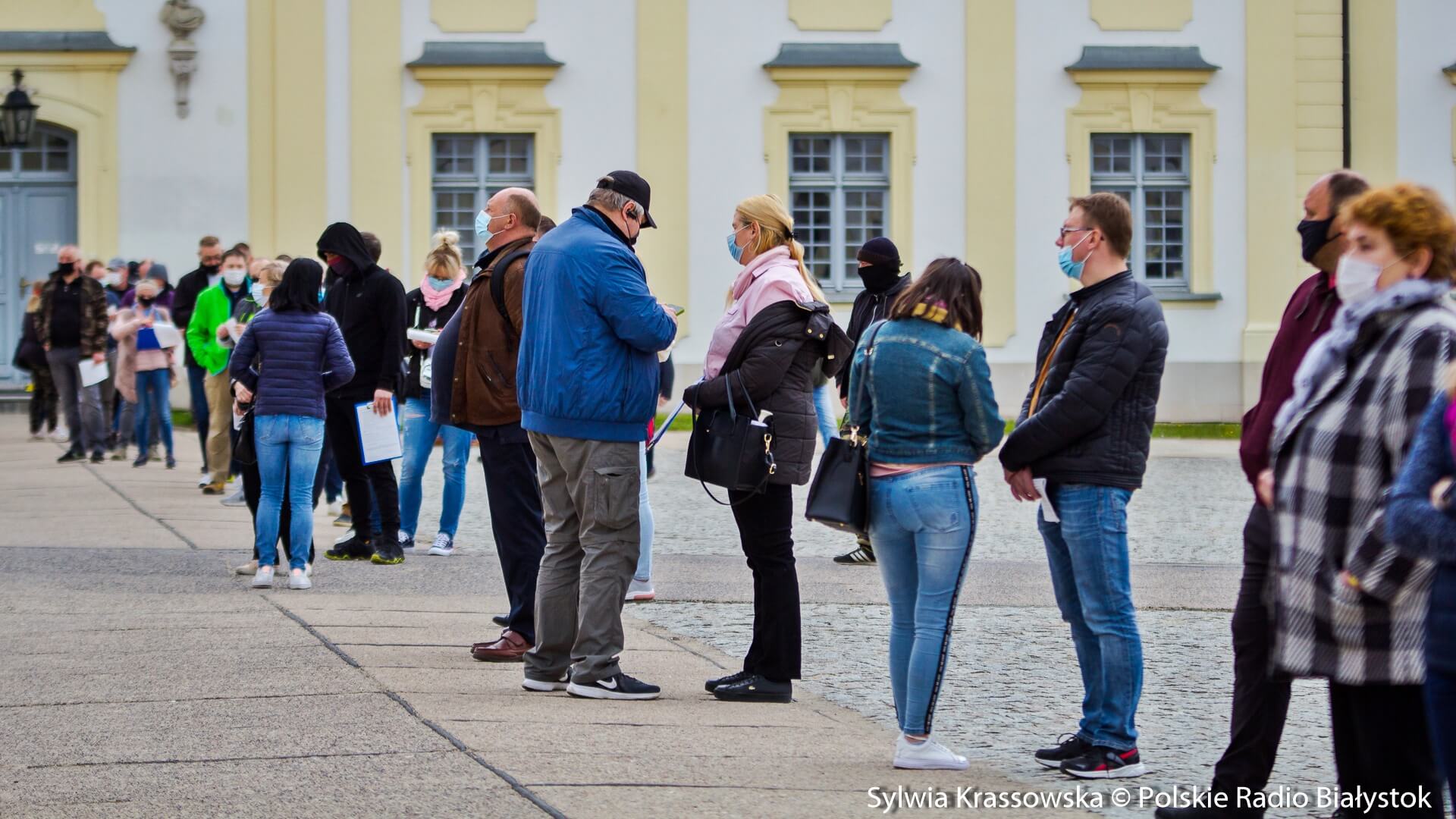 Kolejka chętnych w punkcie zlokalizowanym na dziedzińcu Pałacu Branickich w Białymstoku ustawiła się jeszcze przed godz. 10:00, dlatego pierwsze szczepienia rozpoczęto nieco wcześniej, niż planowano. W sumie pracują tam trzy zespoły (lekarz plus pielęgniarka) i rejestratorka, medykom z Uniwersyteckiego Szpitala Klinicznego (USK) w Białymstoku pomagają żołnierze WOT.
