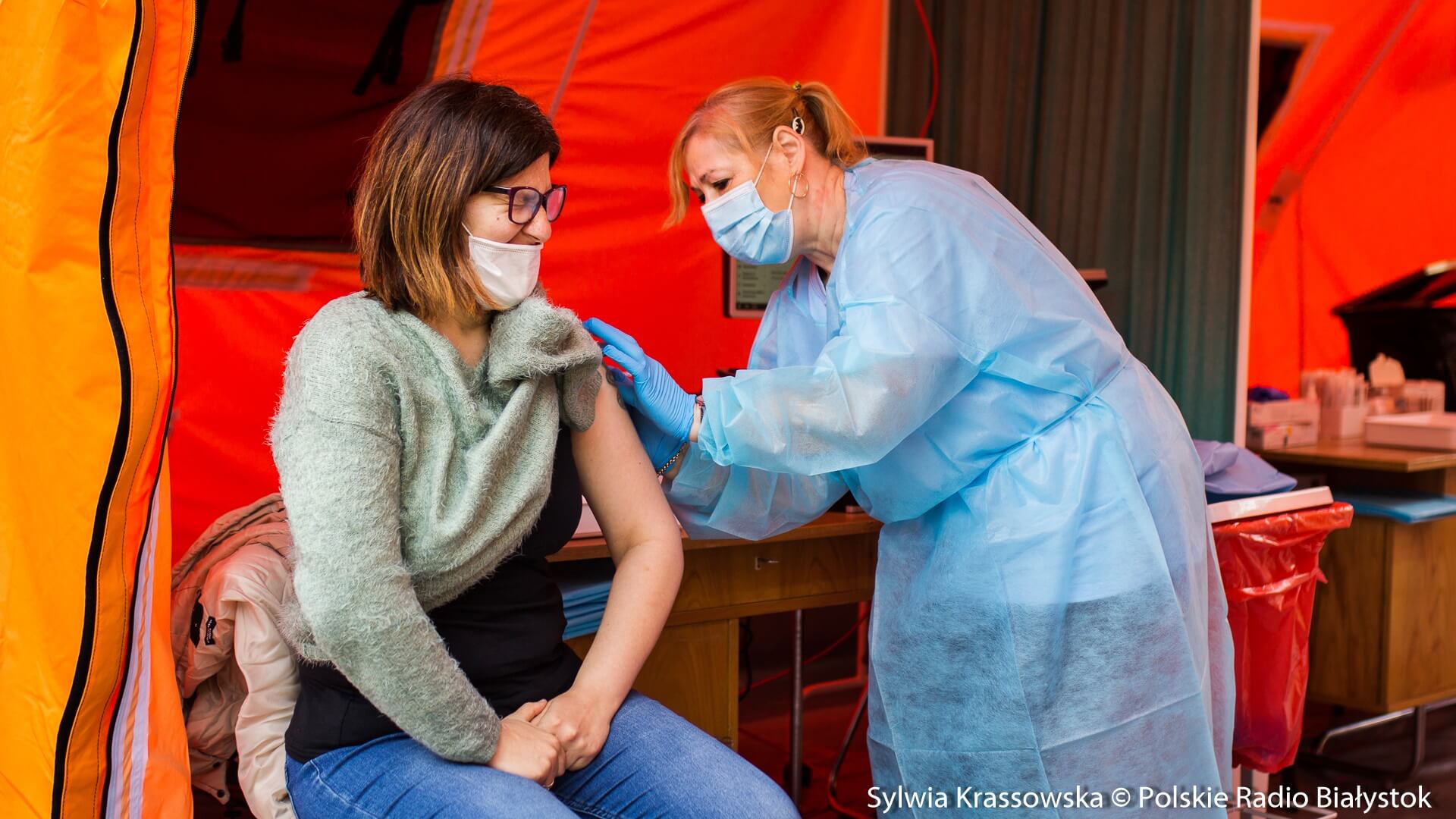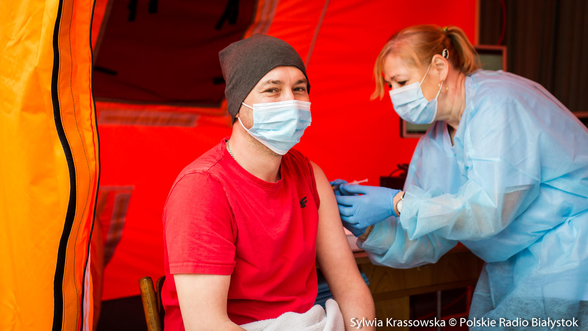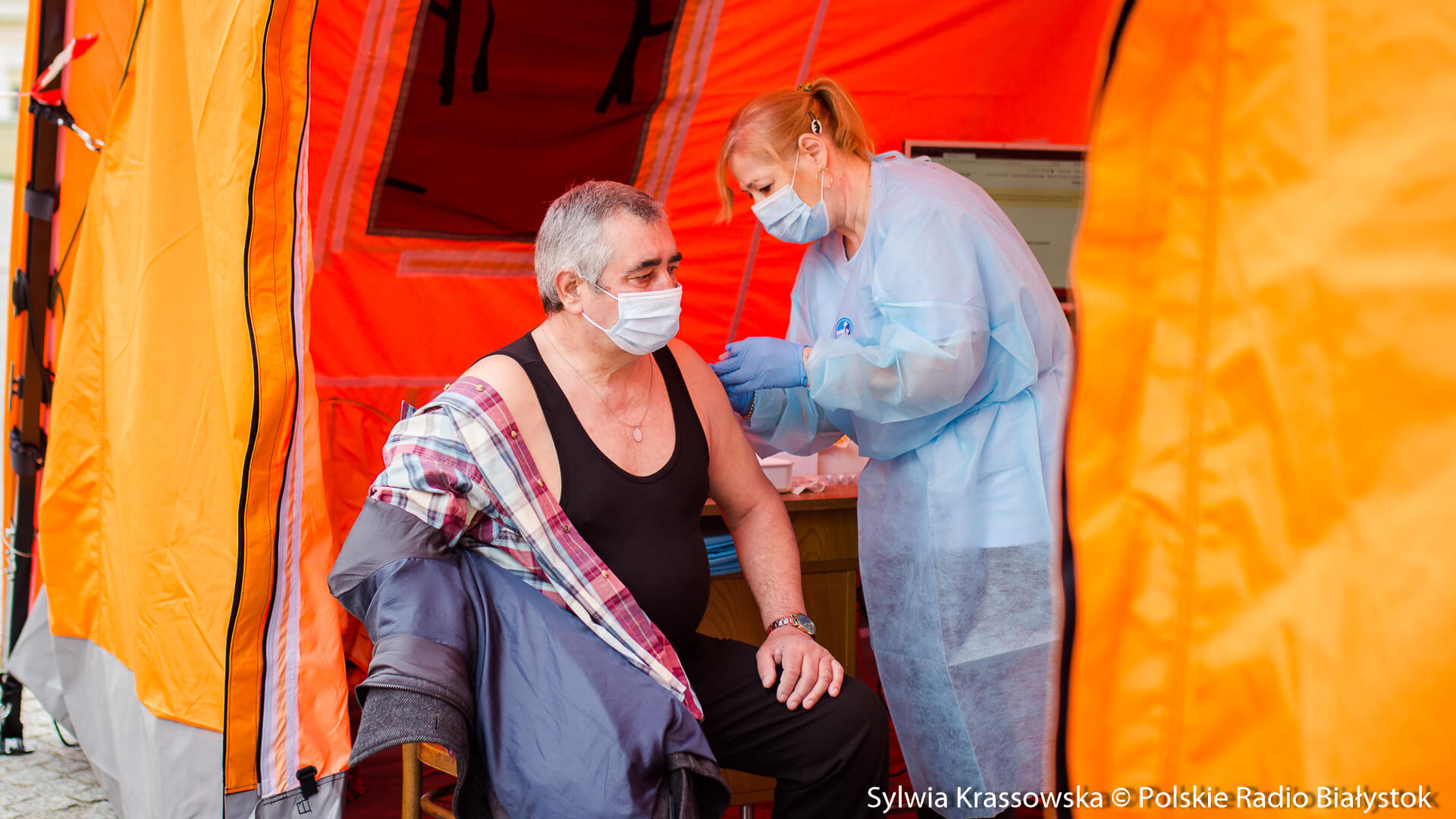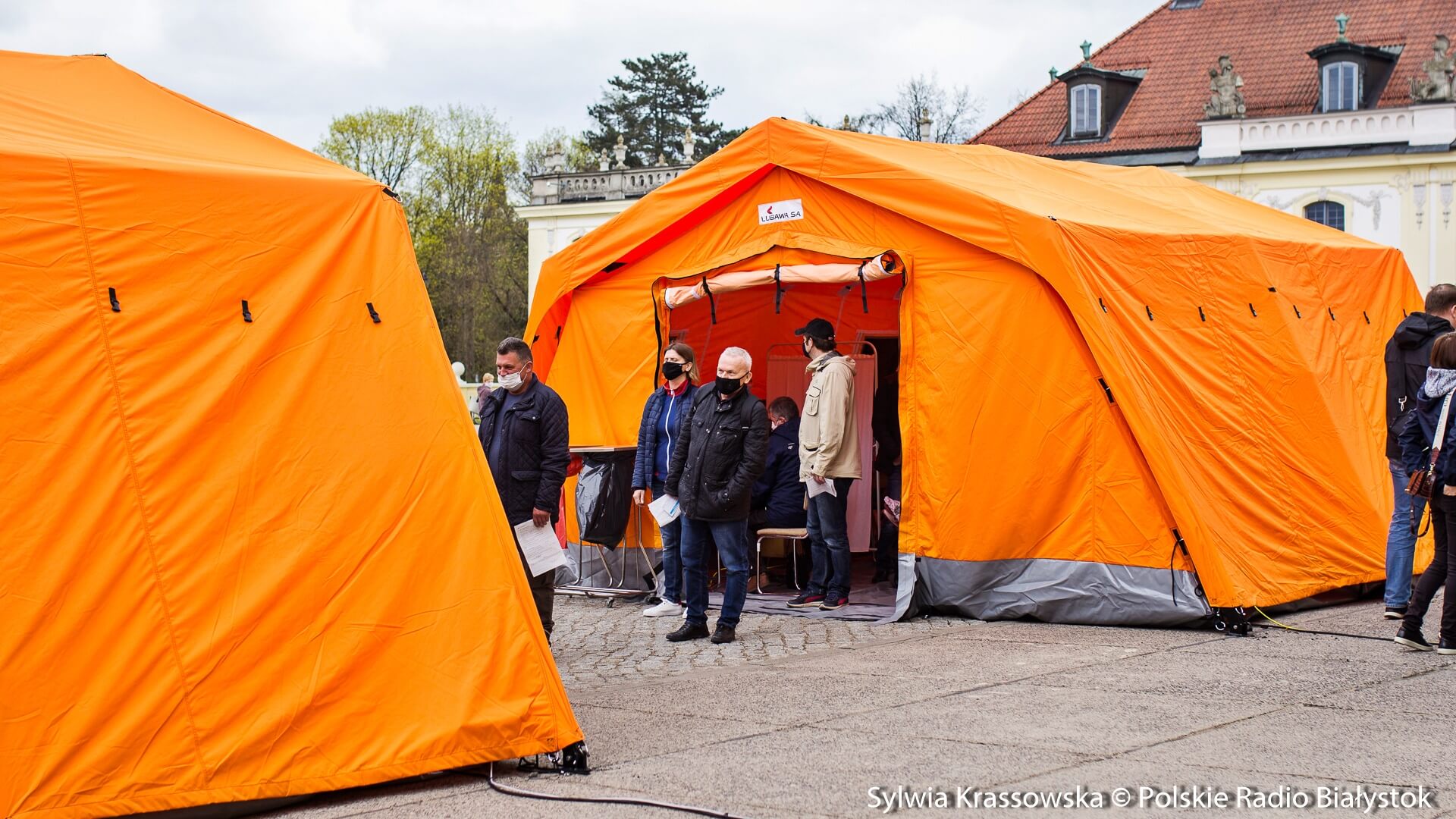 Kolejka chętnych w punkcie zlokalizowanym na dziedzińcu Pałacu Branickich w Białymstoku ustawiła się jeszcze przed godz. 10:00, dlatego pierwsze szczepienia rozpoczęto nieco wcześniej, niż planowano. W sumie pracują tam trzy zespoły (lekarz plus pielęgniarka) i rejestratorka, medykom z Uniwersyteckiego Szpitala Klinicznego (USK) w Białymstoku pomagają żołnierze WOT.