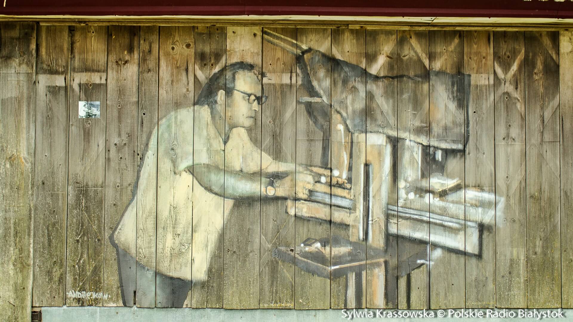 Prace tworzy Arkadiusz Andrejkow. - Staram się jak najwierniej odtworzyć to, co jest na zdjęciach, choć nie zawsze są one ostre. W połączeniu z tymi starymi deskami, na których maluję, tworzą współczesny znak tej historii - mówi artysta.