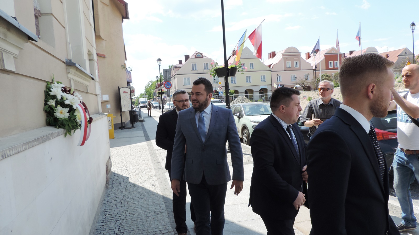 Władze Łomży złożyły kwiaty przed pamiątkową tablicą