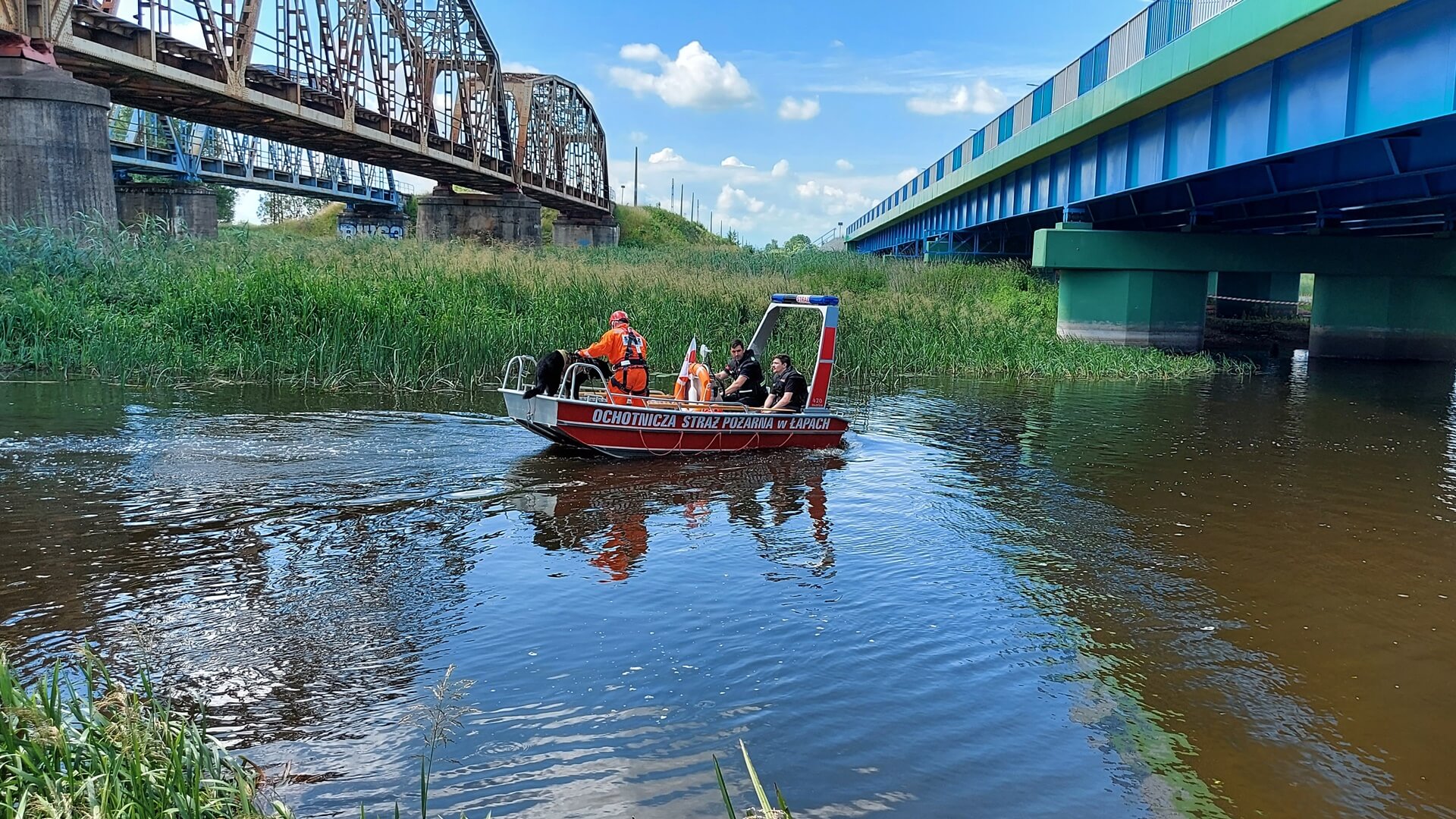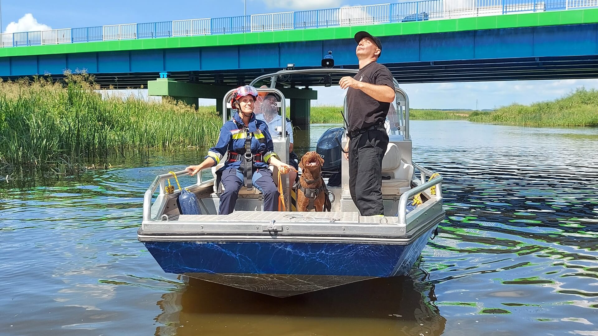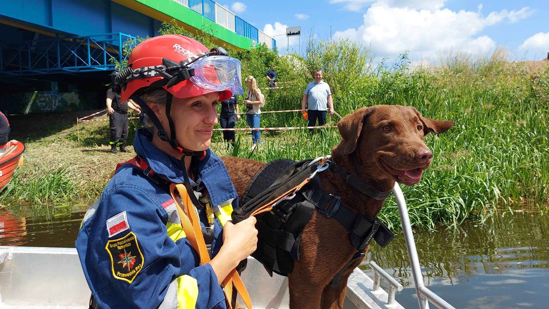 Na rzece Narew, w głębi zalewowego terenu, gdzie trzciny sięgały około 2 metrów wysokości pies miał za zadanie odnaleźć osobę i doprowadzić do niej przewodnika.