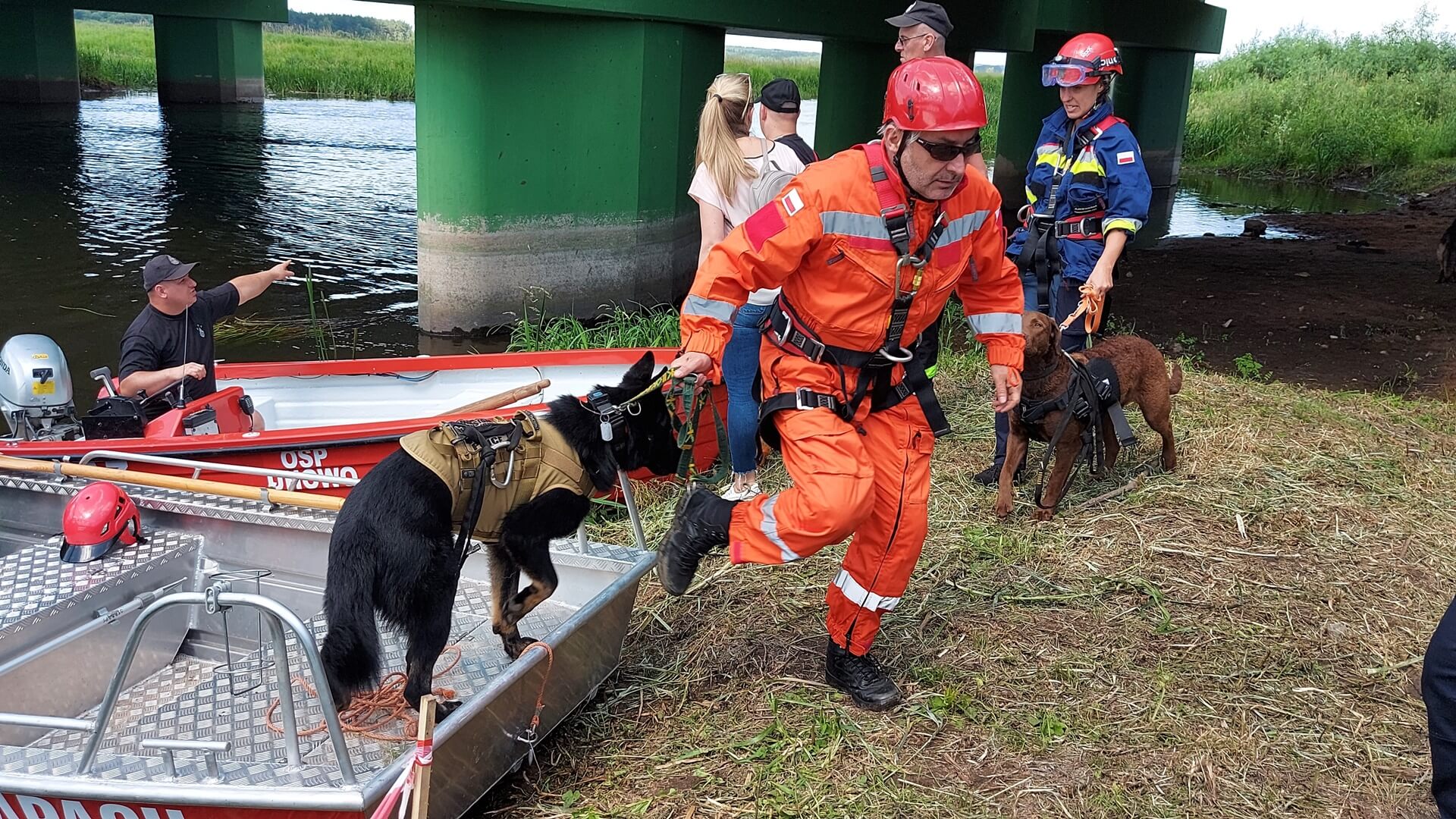 Chodziło o wymianę doświadczeń i nabycie nowych umiejętności przez czworonogi i ich opiekunów. W rejonie mostów w Uhowie podlascy funkcjonariusze różnych służb ćwiczyli scenariusze dla psów i ich przewodników.
