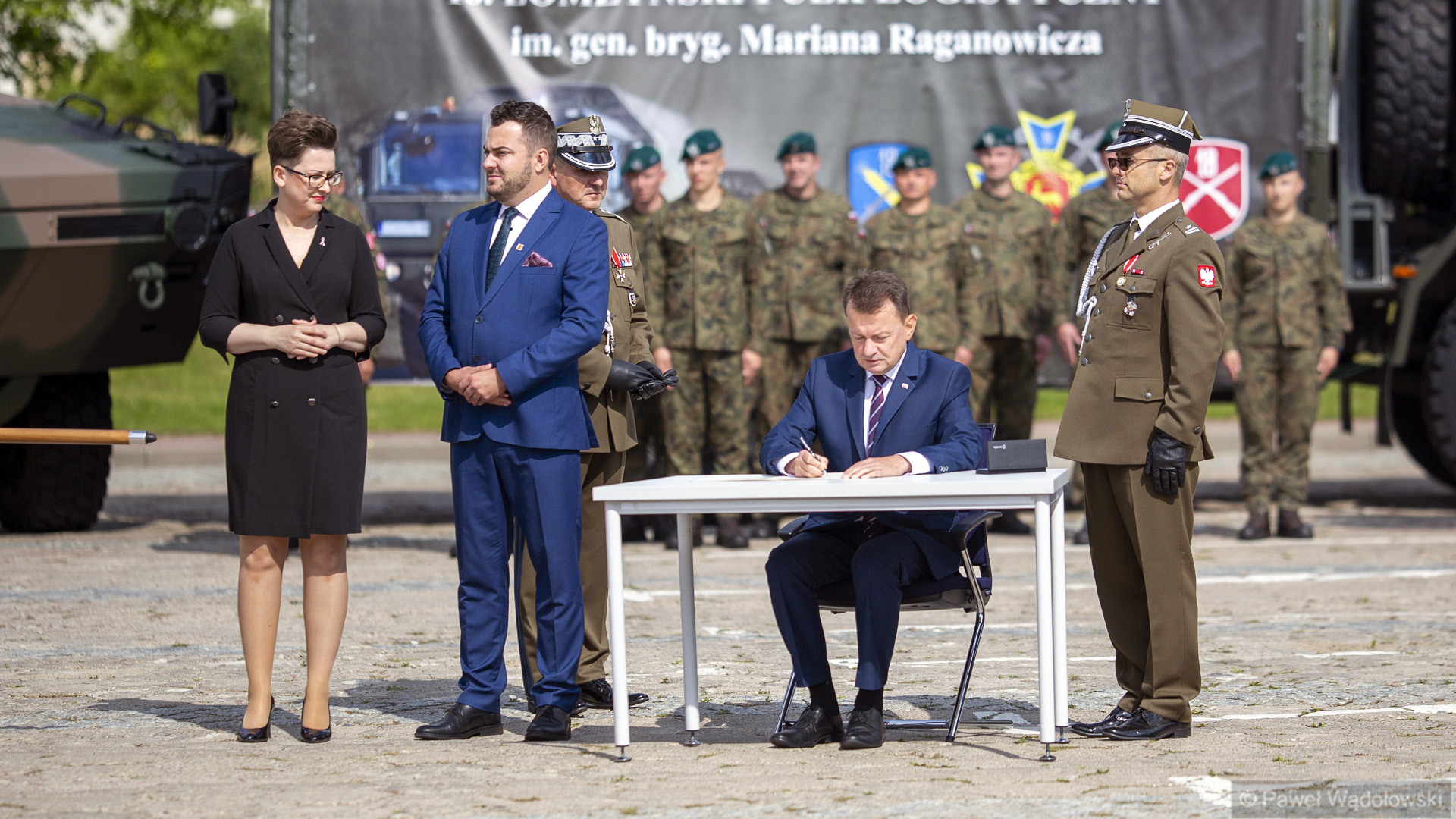 Polska się zbroi, a wojsko się rozrasta po to, by nasza ojczyzna była bezpieczna i mogła się rozwijać - mówił w piątek w Łomży szef MON Mariusz Błaszczak podczas uroczystości nadania sztandaru 18. Łomżyńskiemu Pułkowi Logistycznemu.
