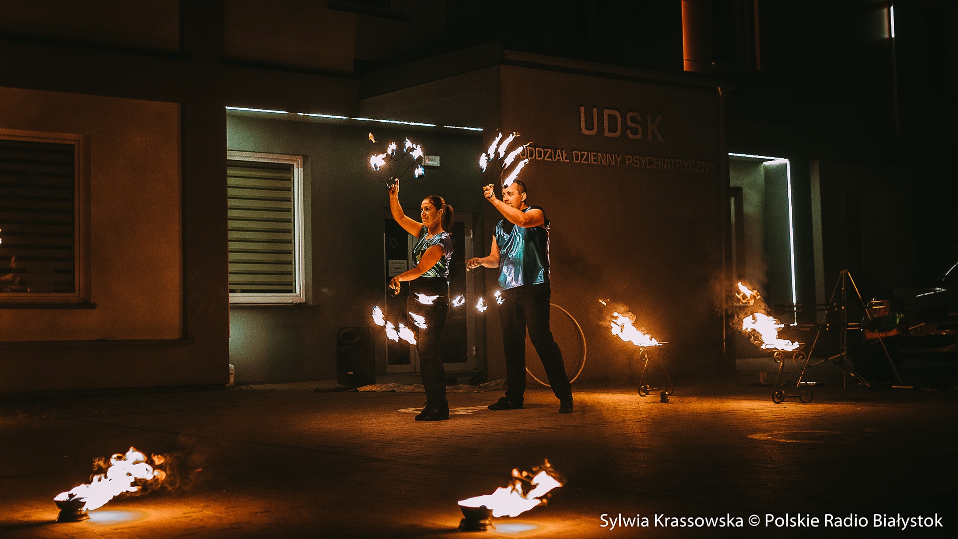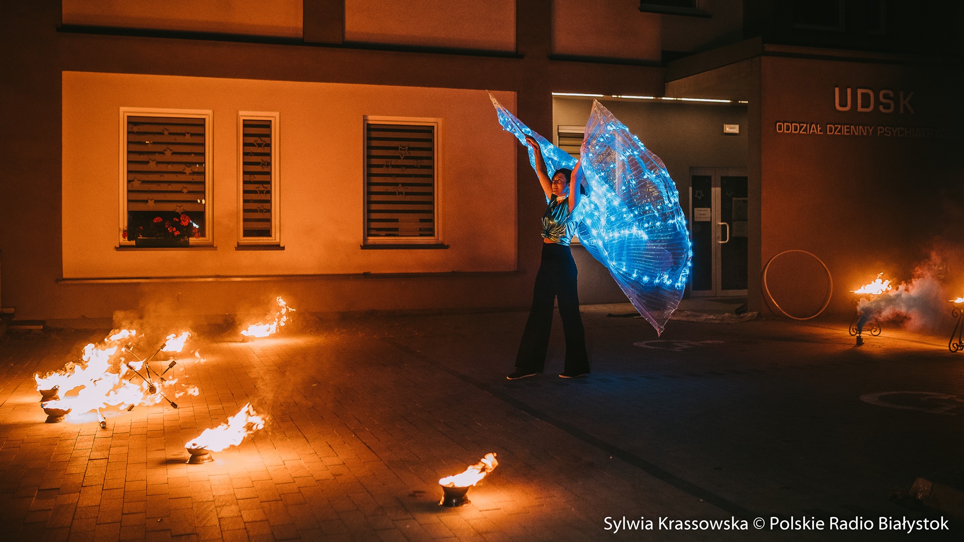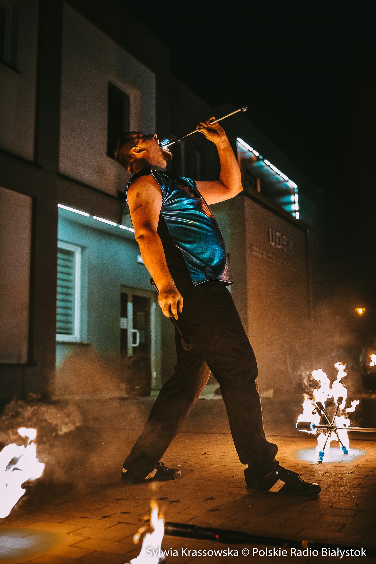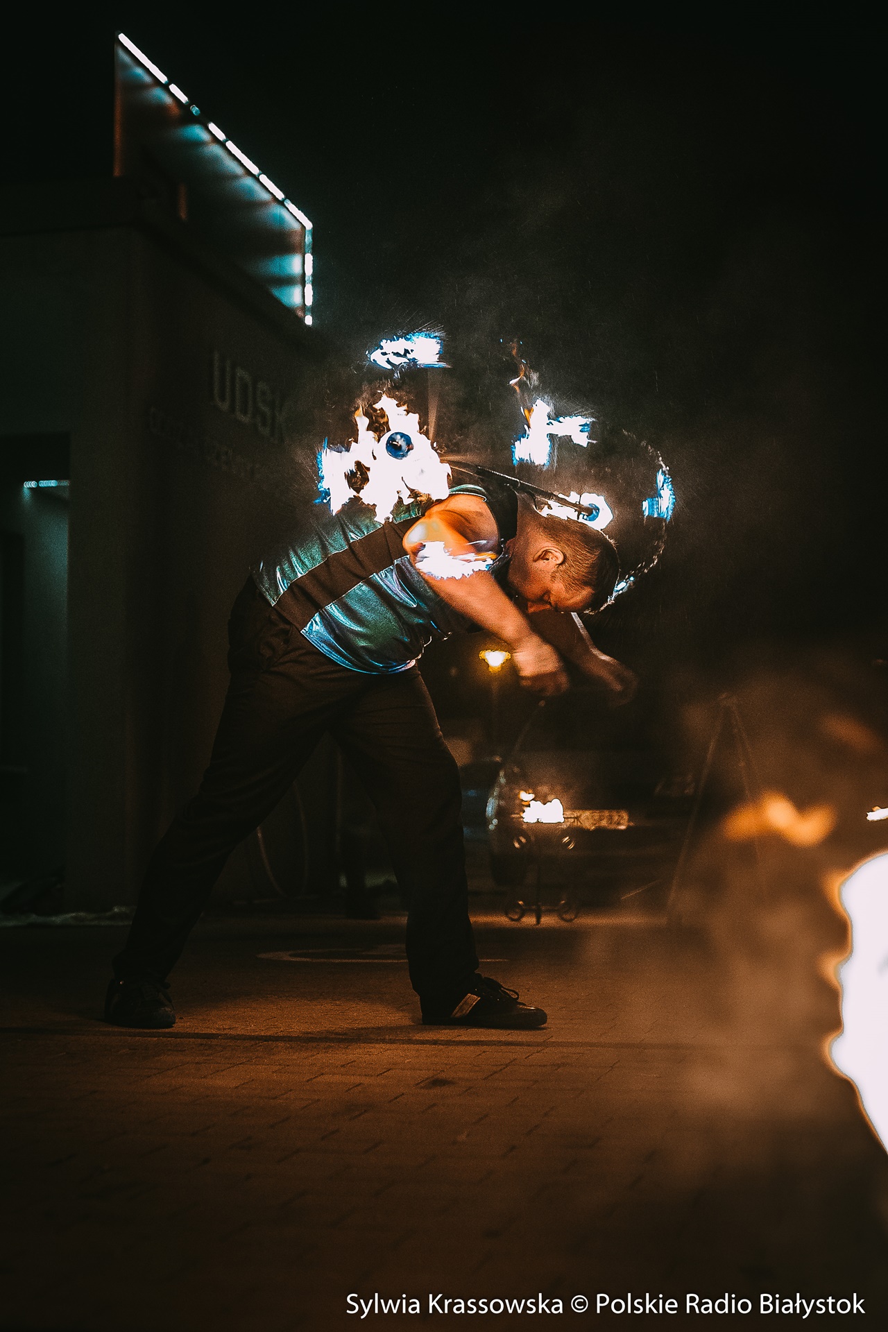 Radio Białystok | Wiadomości | Wiadomości - Widowiskowy pokaz ognia przed UDSK w Białymstoku [zdjęcia]