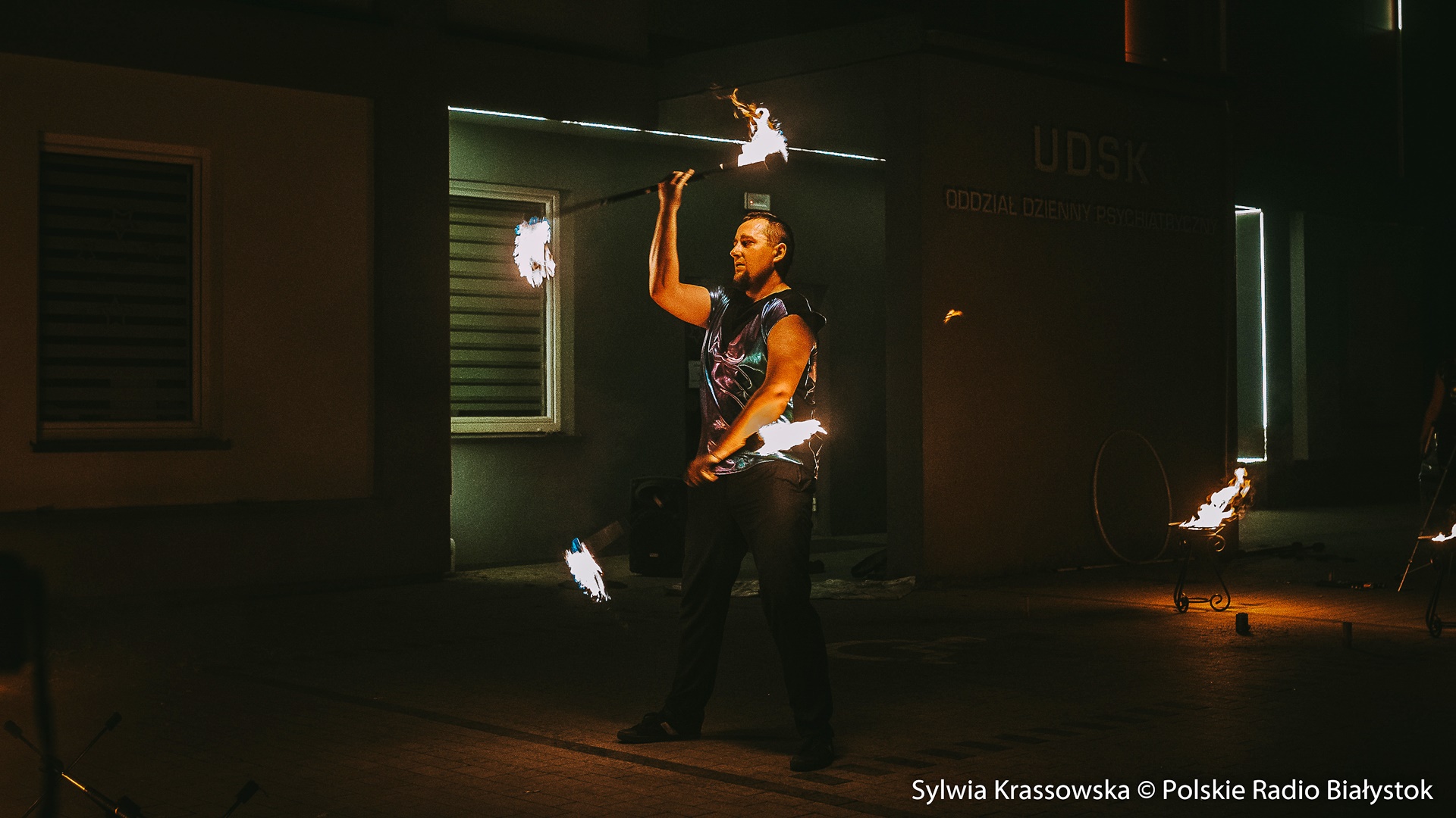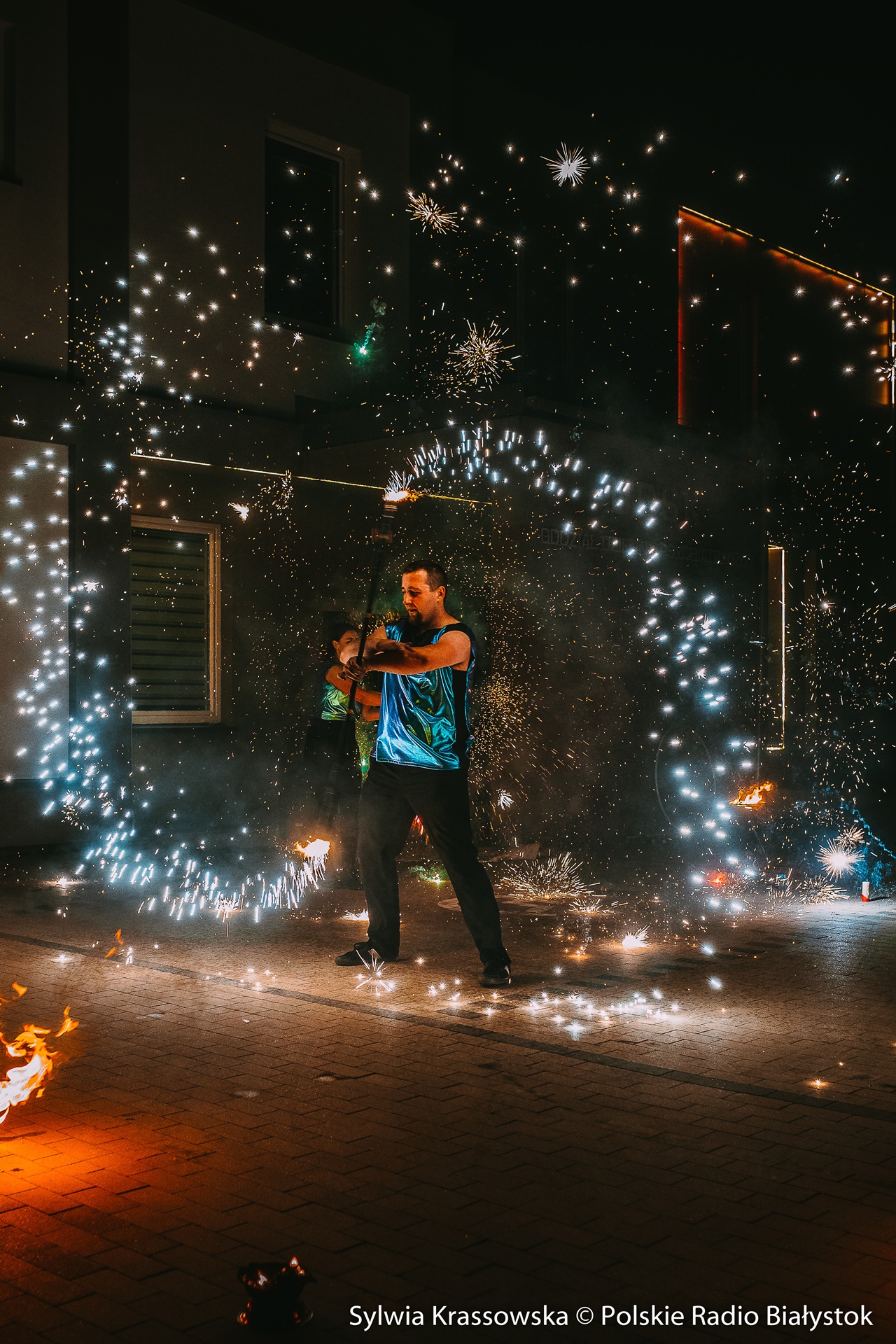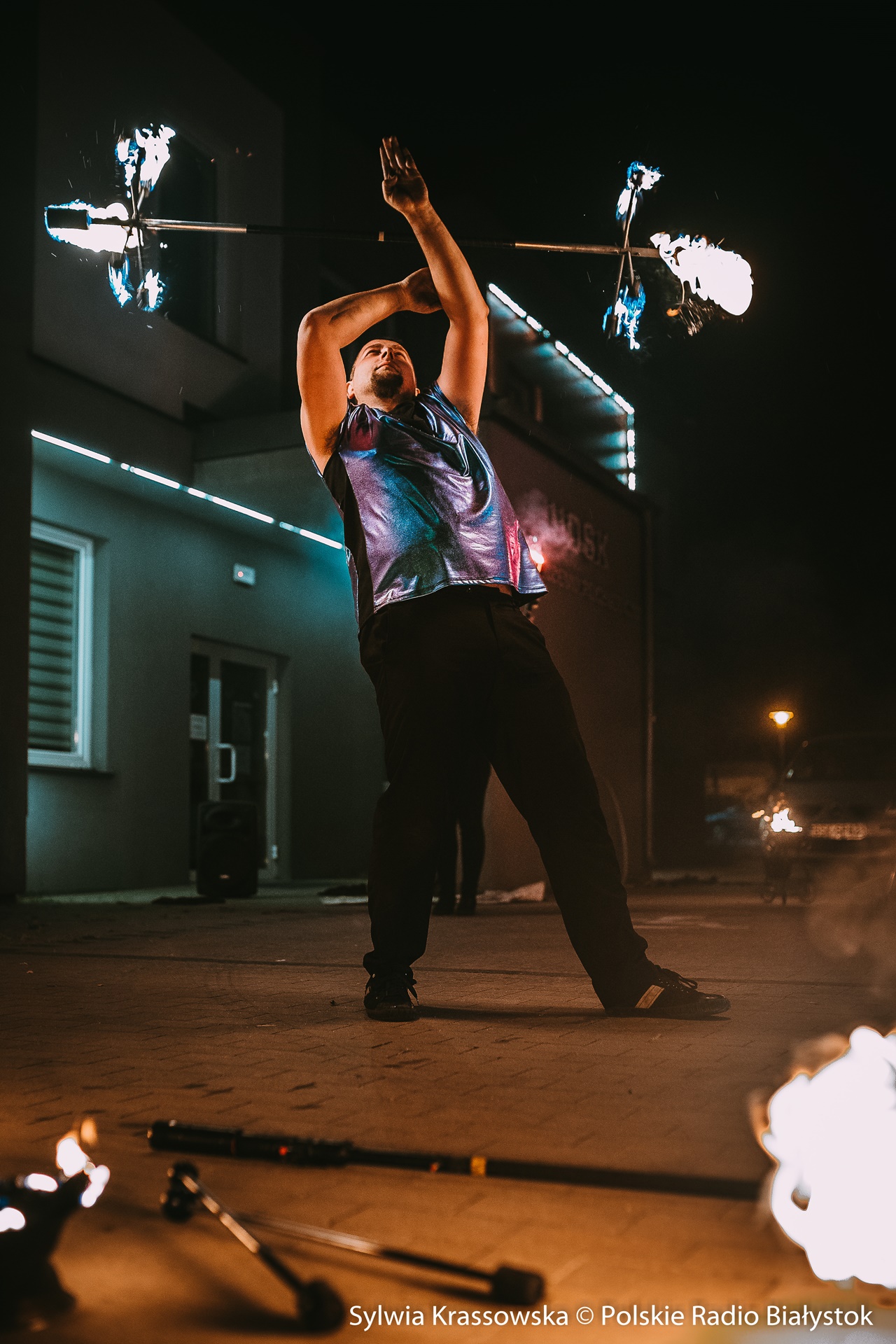 Radio Białystok | Wiadomości | Wiadomości - Widowiskowy pokaz ognia przed UDSK w Białymstoku [zdjęcia]