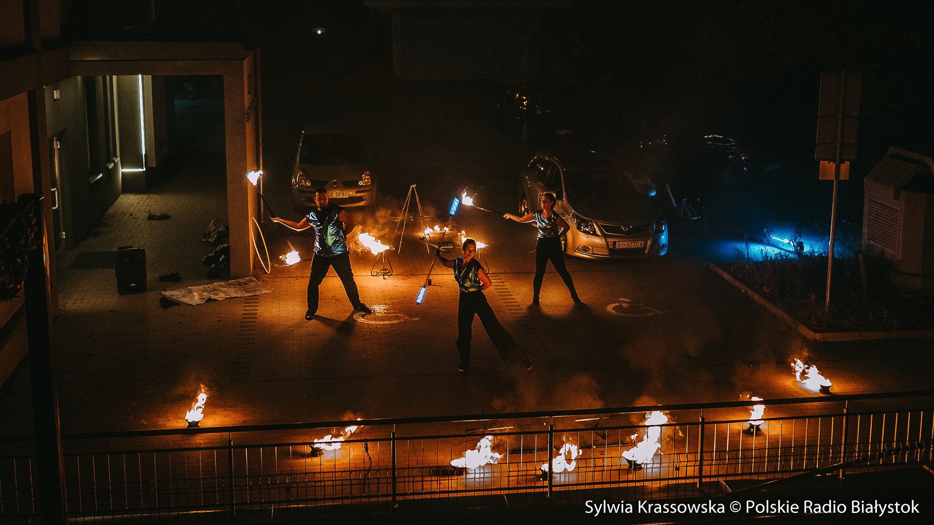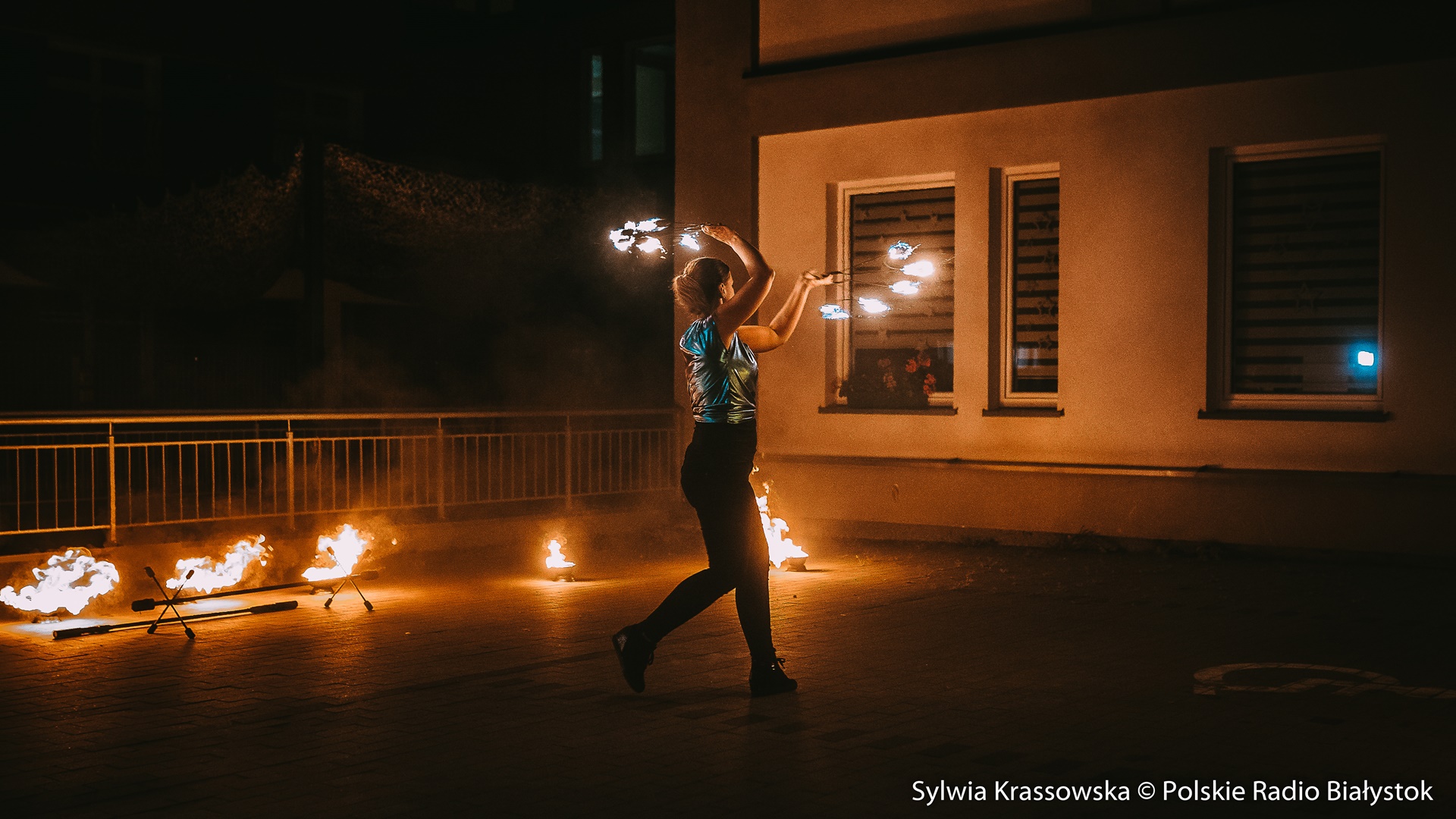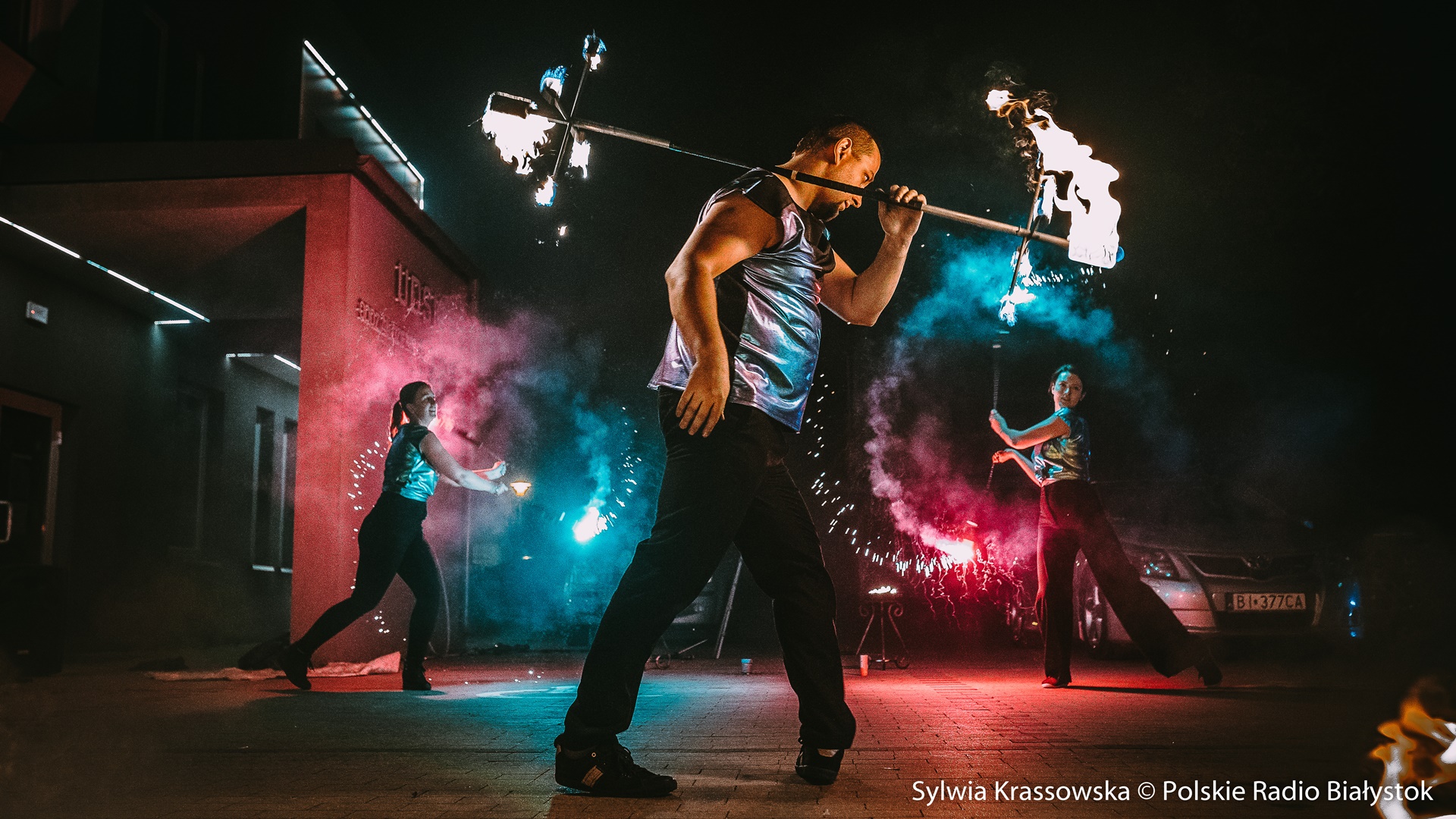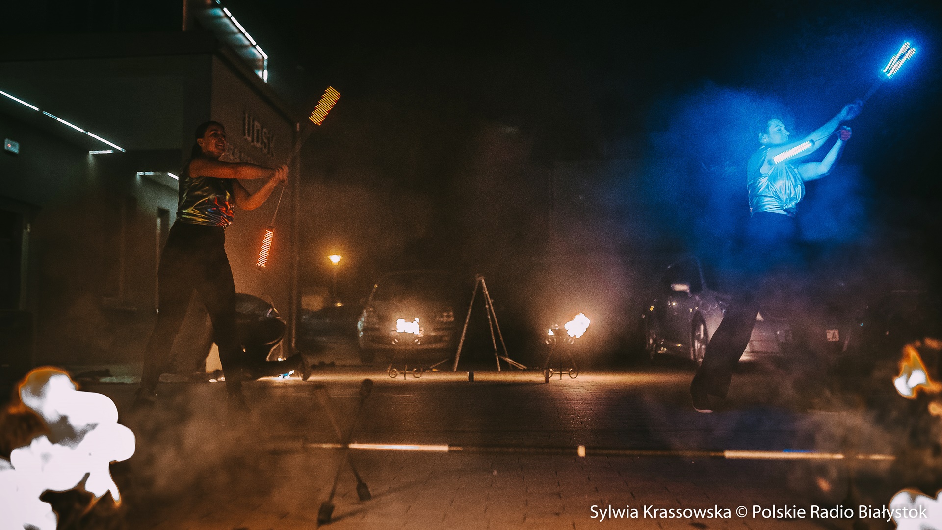 Radio Białystok | Wiadomości | Wiadomości - Widowiskowy pokaz ognia przed UDSK w Białymstoku [zdjęcia]