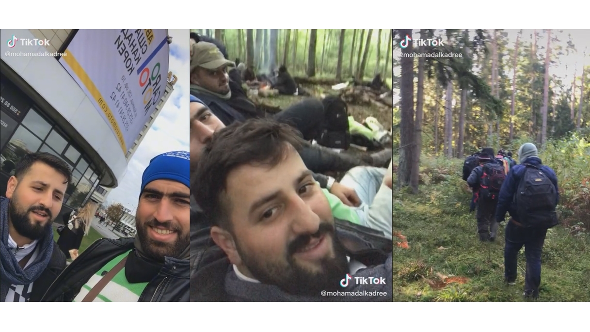 W sieci pojawiły się też nagrania z TikToka prawdopodobnego "turysty" z Syrii @mohamadalkadree, który pod koniec września publikował, jak ze znajomymi zwiedza stolicę Białorusi, a od 1 października relacjonuje wędrówkę kilku mężczyzn przez lasy, prawdopodobnie na granicy z Polską, bo opisuje je hasztagami: #Białoruś, #Polska, #Syryjski #DoNiemiec (tłumaczenie Google Translate).