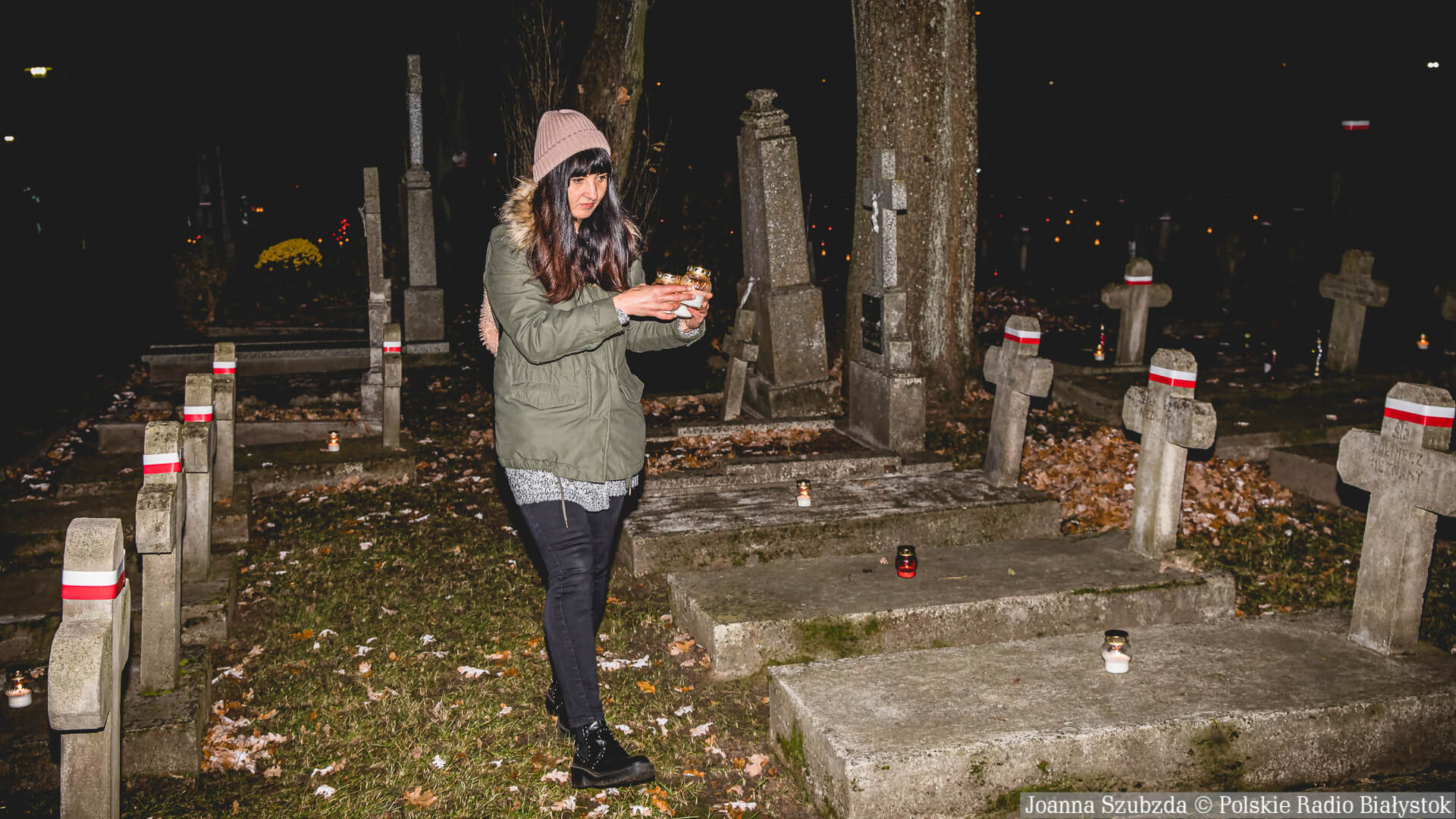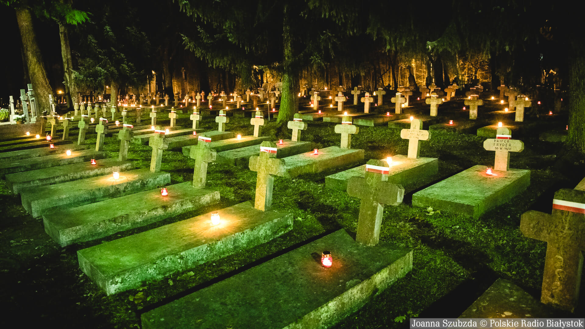 Setki biało-czerwonych zniczy zapłonęły na cmentarzu wojskowym w Białymstoku.