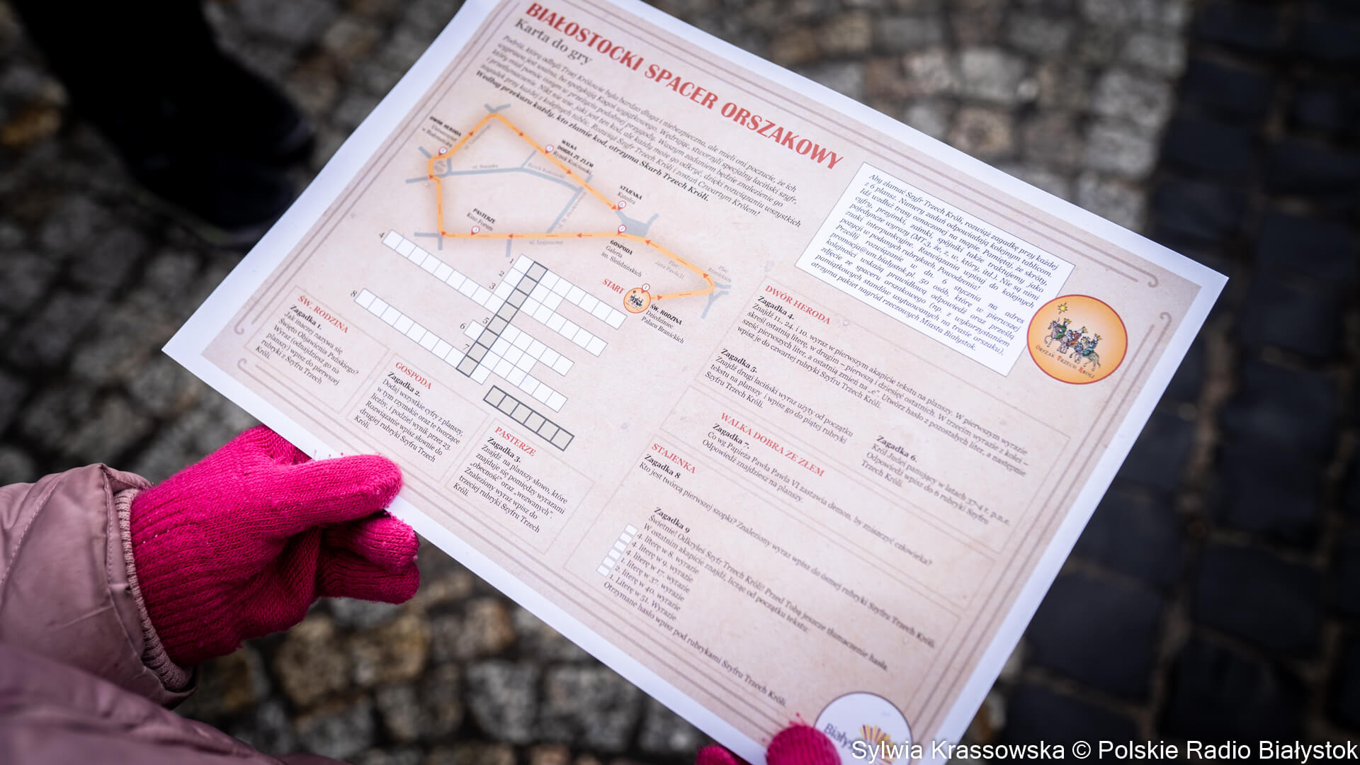 Uczestnicy takiego spaceru mogą wziąć udział w grze miejskiej, która polega na rozwiązaniu krzyżówki związanej z historią narodzin Jezusa. W kolejnych punktach tradycyjnego orszaku są tablice opisujące sceny biblijne, ze zdjęciami wcześniejszych białostockich orszaków; tam trzeba szukać odpowiedzi do krzyżówki.