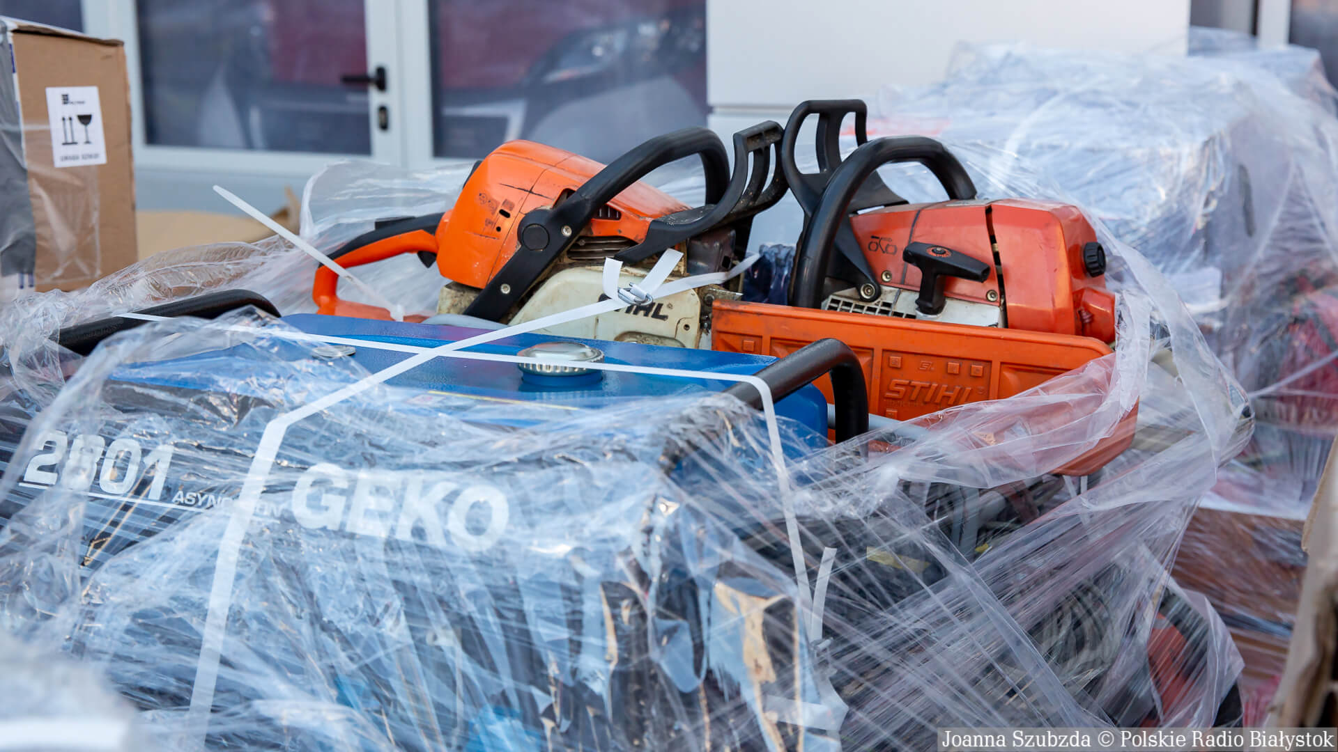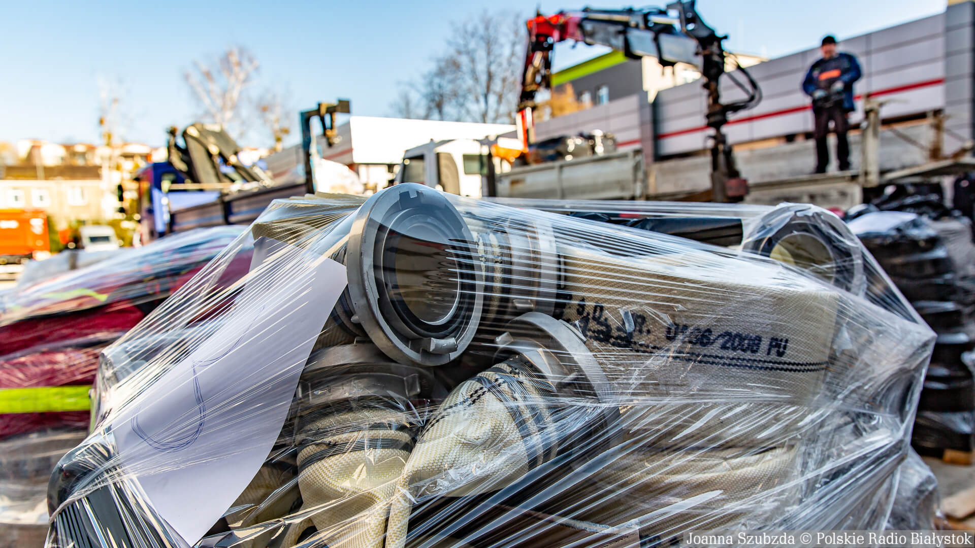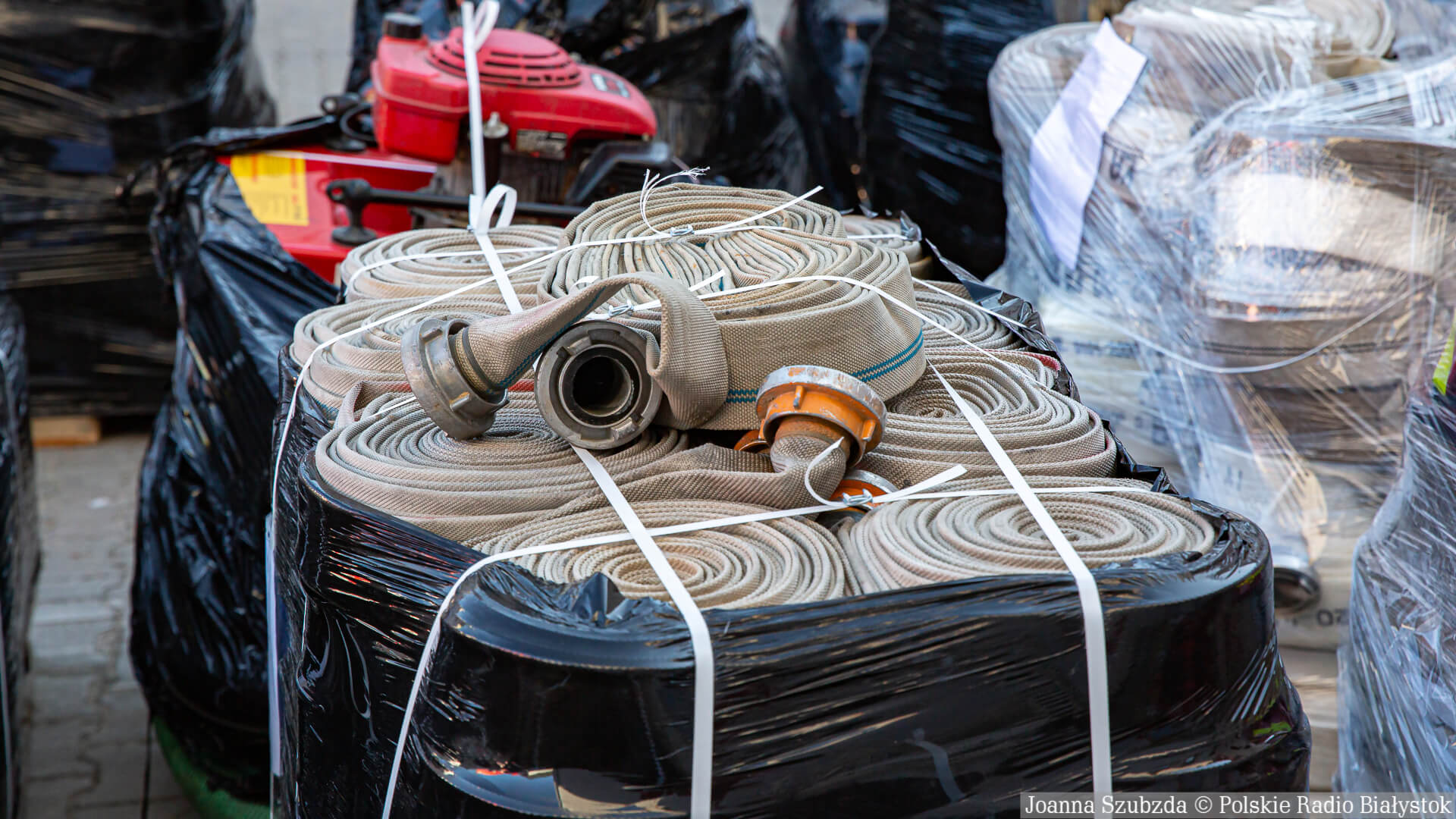 Sprzęt jest oczywiście całkowicie sprawny. Są to m.in. węże, kamery termowizyjne, ubrania specjalne, rękawice, odzież ochronna. To wszystko z całego województwa trafia do Komendy Wojewódzkiej w Białymstoku i będziemy to przewozić do punktu w Zamościu. Stamtąd będzie przewożony do naszych kolegów, strażaków z Ukrainy - mówi mł. bryg. Piotr Chojnowski.
