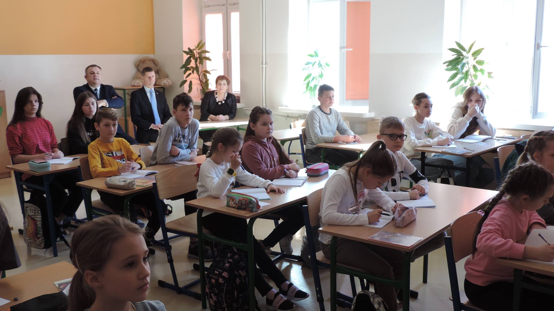 Oddział ma swoją klasę. Dyrektorka powiedziała, że dzieci mają zajęcia z nauczycielką, która ma ukraińskie kwalifikacje pedagogiczne w kilku przedmiotach, do dzieci przychodzą też nauczyciele języka polskiego. Od tego tygodnia dzieci ukraińskie mają brać udział także w niektórych zajęciach, jak muzyka, plastyka czy informatyka, z polskimi rówieśnikami.