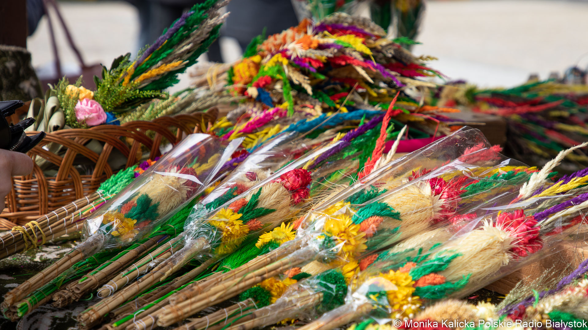 Klienci kupują też palmy, bo najbliższa niedziela w kościele katolickim jest palmowa. Ale dostępne są też słodkości, miody, wędliny i rękodzieło.