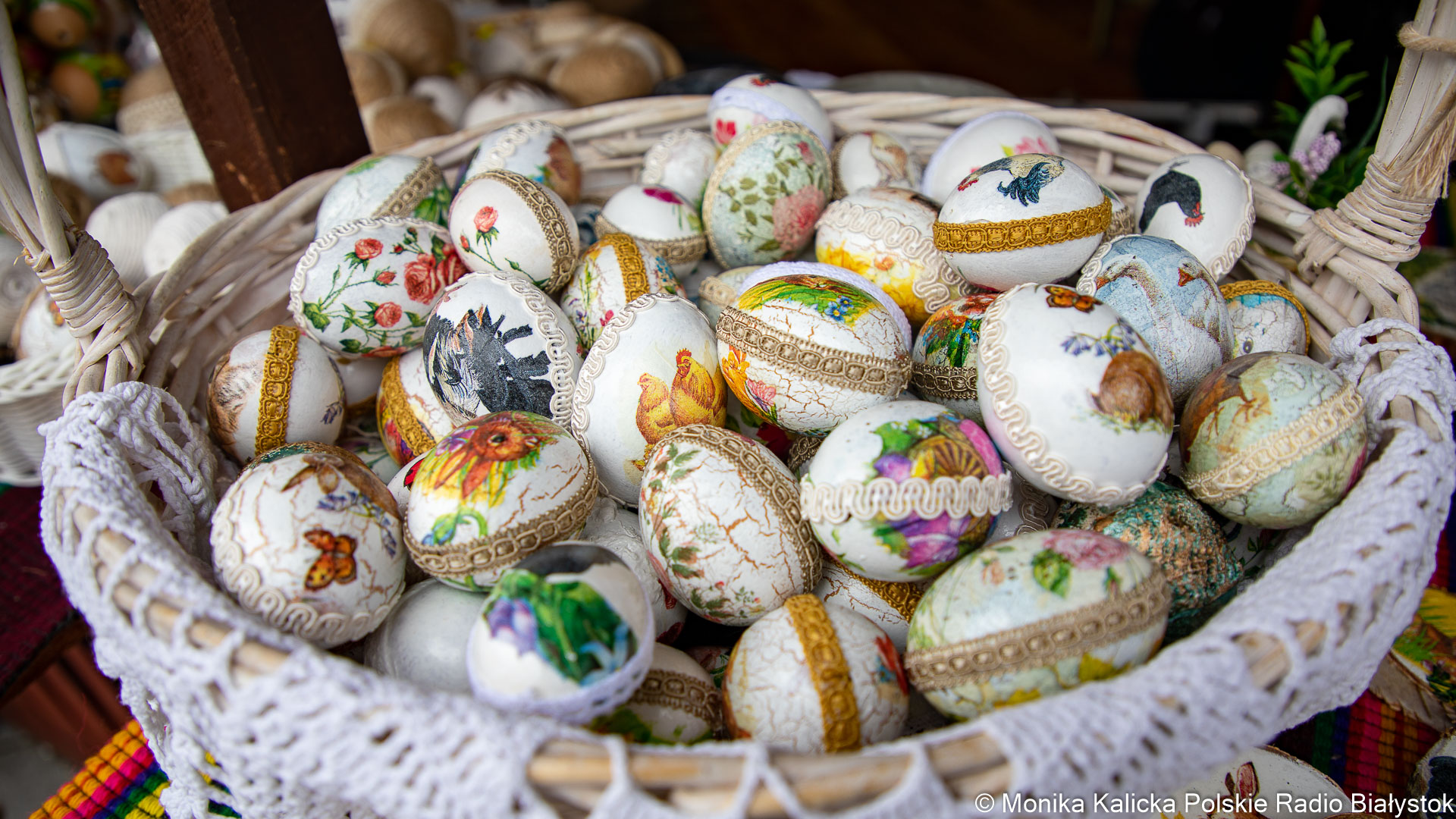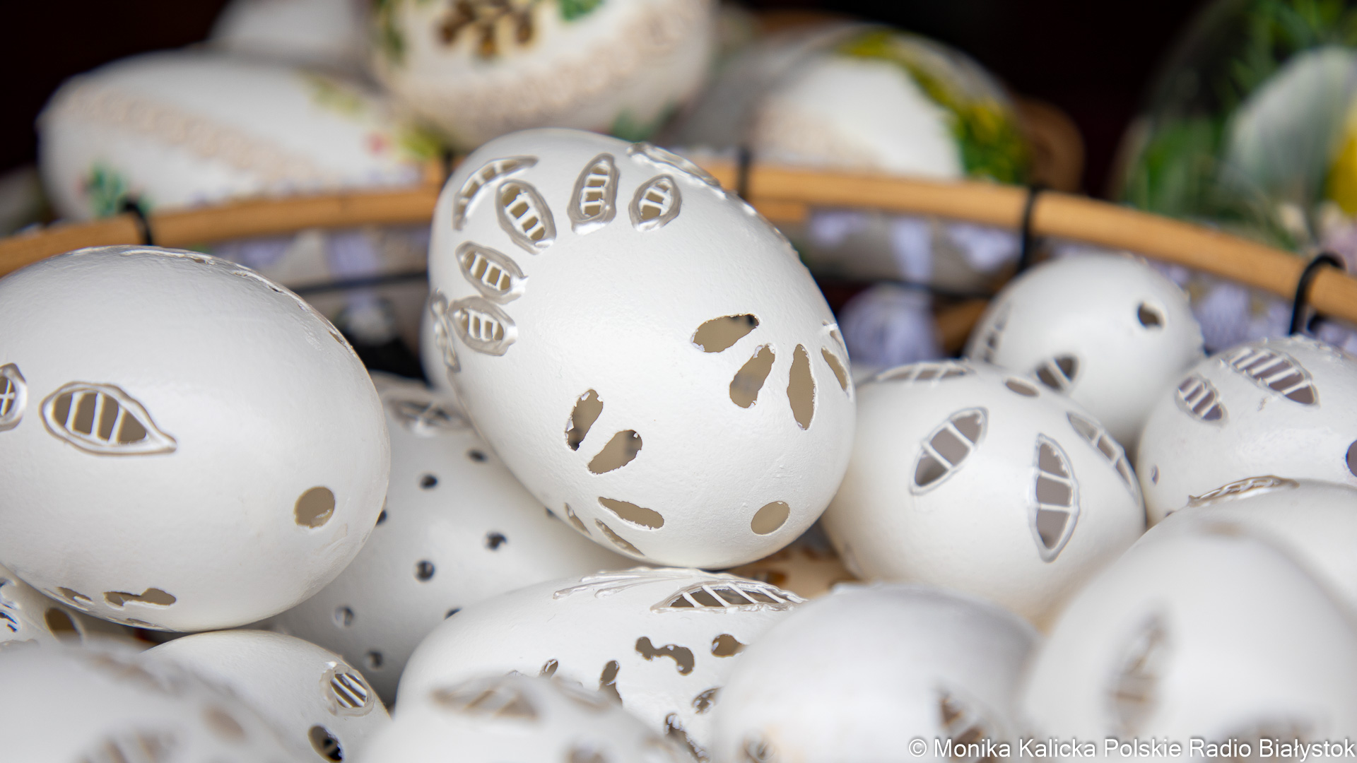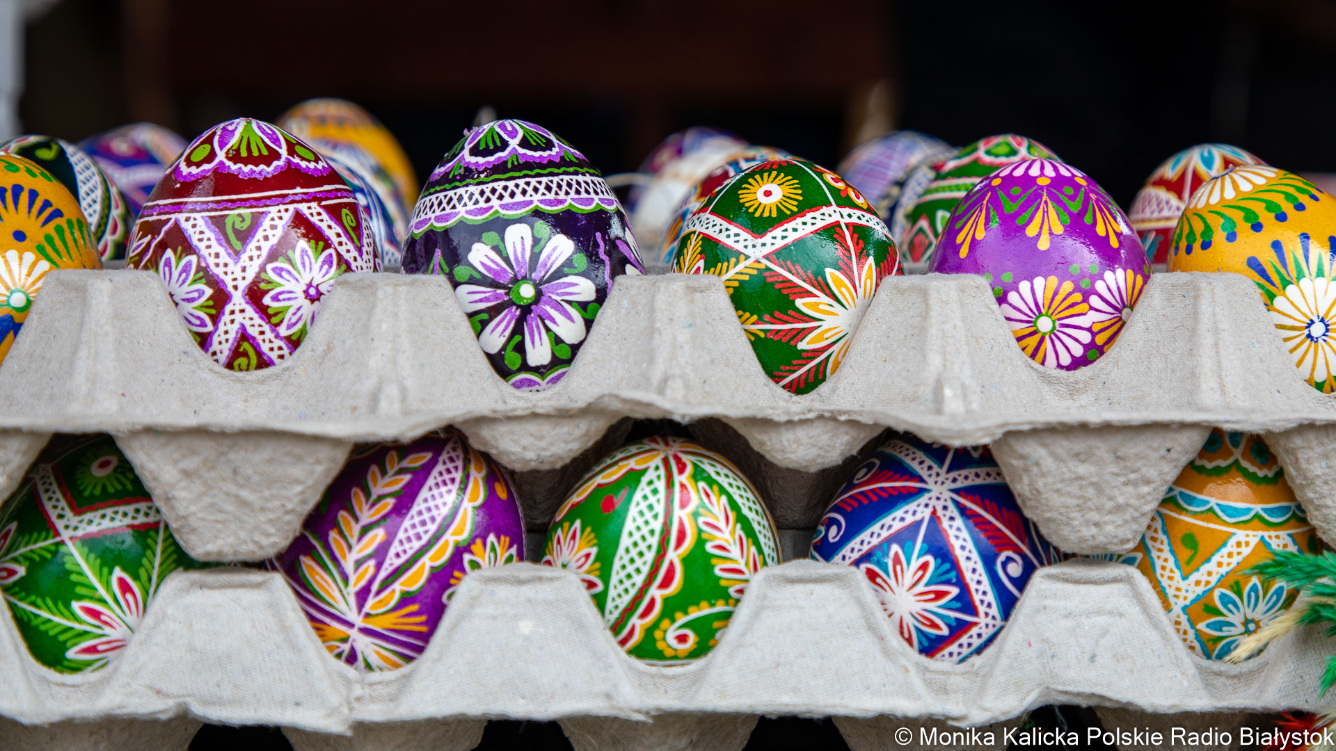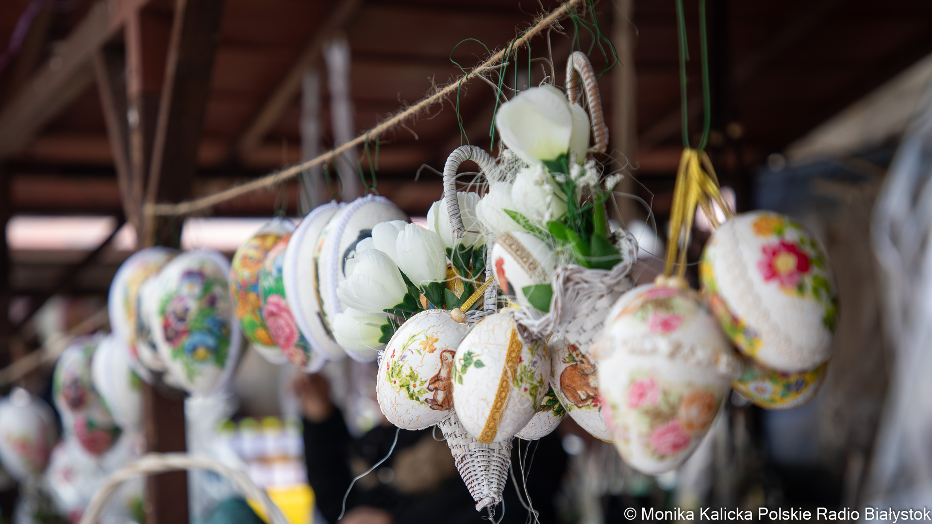 Na razie największym zainteresowaniem cieszą się właśnie ozdoby - zarówno drewniane, zdobione jajka, jak i pisanki malowane tradycyjnymi metodami.