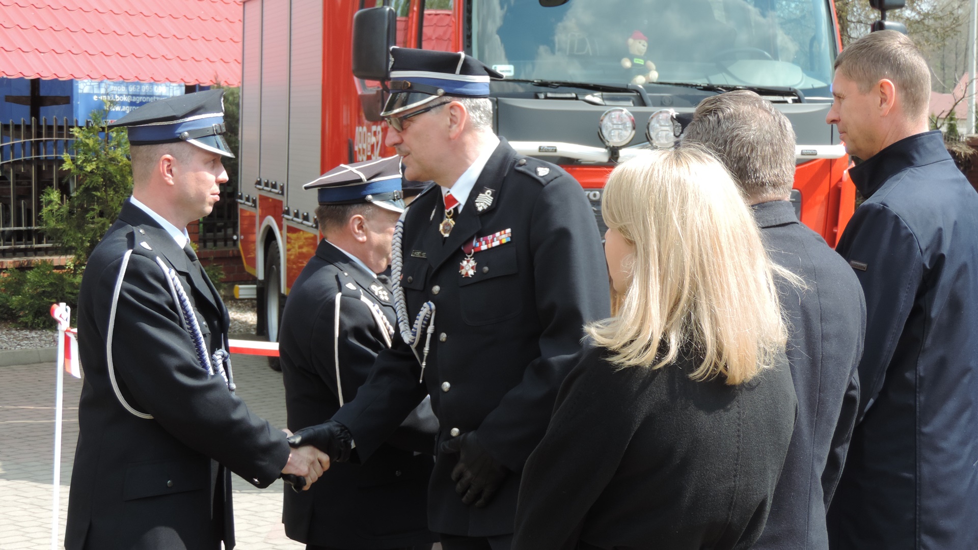 Strażackie święto było okazją do odznaczenia i uhonorowania druhów oraz osób zasłużonych dla ich formacji. Byli wśród nich i strażacy, którzy służyli w tej jednostce, zanim otrzymała ona w latach 60. ub.w. swój pierwszy samochód.