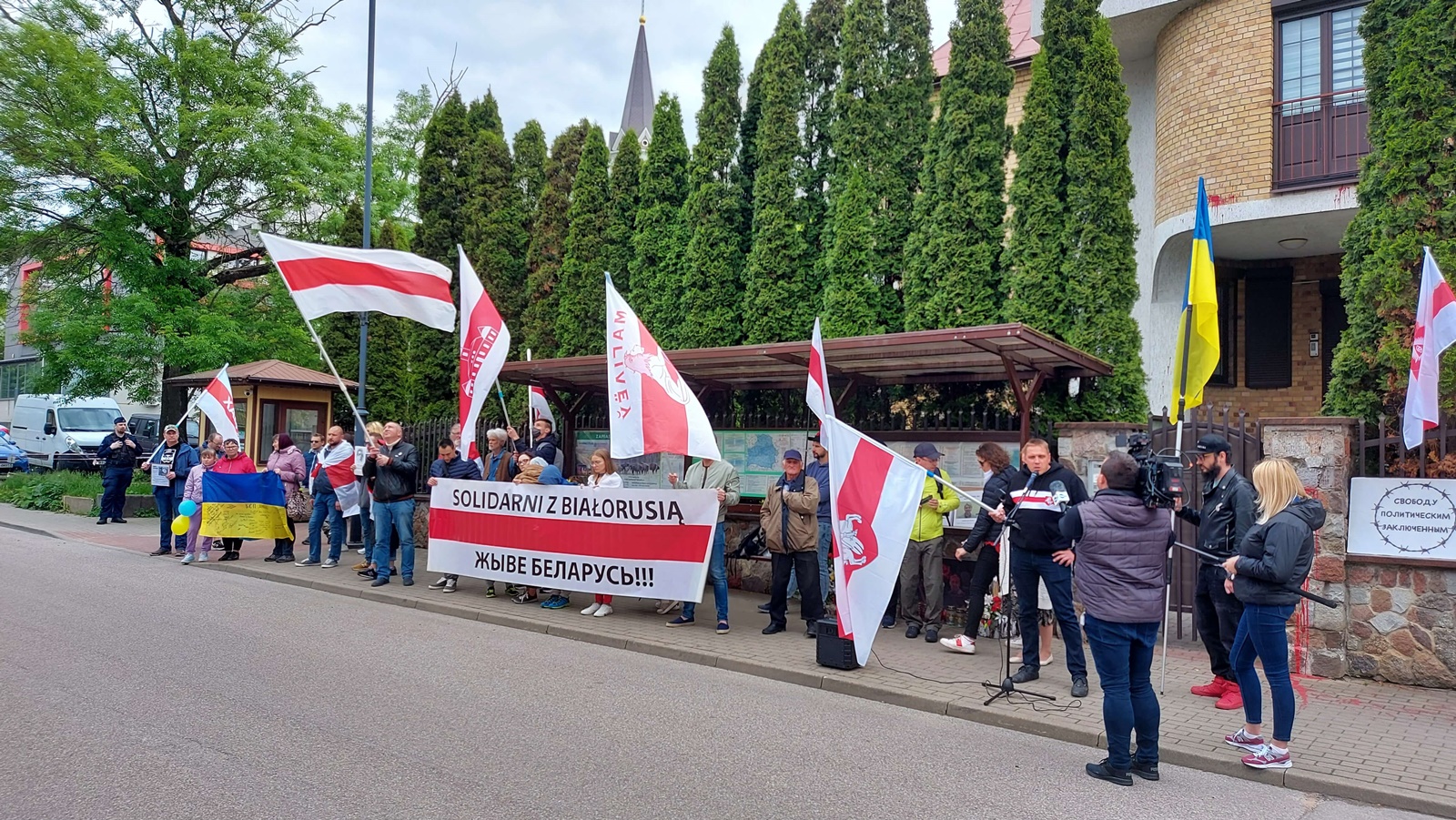 Około 40 osób wzięło udział w pikiecie przed białoruskim konsulatem w Białymstoku. Odbyła się ona z okazji Dnia Międzynarodowej Solidarności z Białorusią. Uczestnicy manifestacji mieli ze sobą białoruskie biało-czerwono-białe flagi oraz flagi Ukrainy. Przyszli, aby wyrazić swój sprzeciw wobec sytuacji za naszą wschodnią granicą.