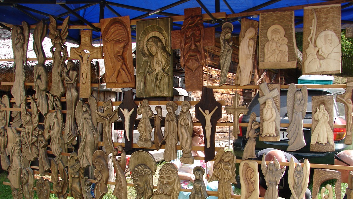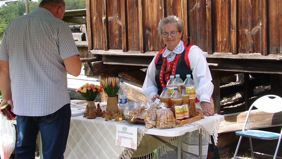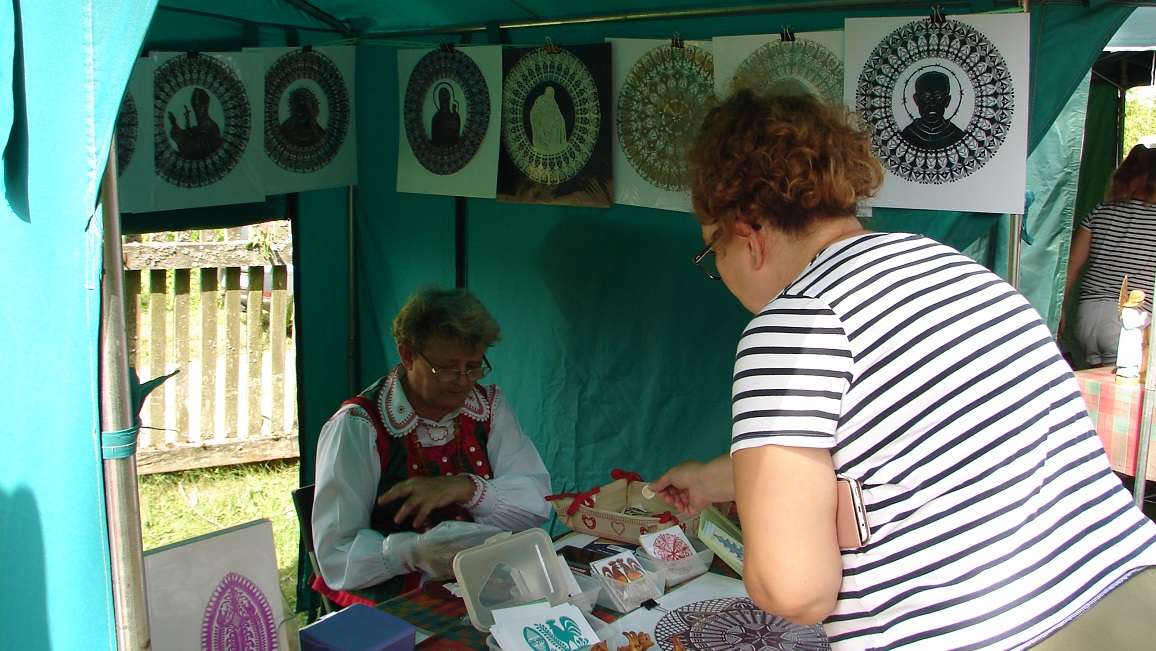 - Odpust na św. Rocha był to zawsze bardzo ważny dzień dla Kurpiów, szczególnie tych z Nowogrodu. Bo to i patron tutejszej parafii, i właściwie pierwszy taki świąteczny dzień, kiedy można było odpocząć po żniwach, a przygotowywać się na wykopki - opowiada założyciel i właściciel prywatnego Muzeum Kurpiowskiego w Wachu Zdzisław Bziukiewicz, który przyjechał do Nowogrodu z własnoręczne obrabianym bursztynem i z żoną Laurą, która robi m.in. koronki.