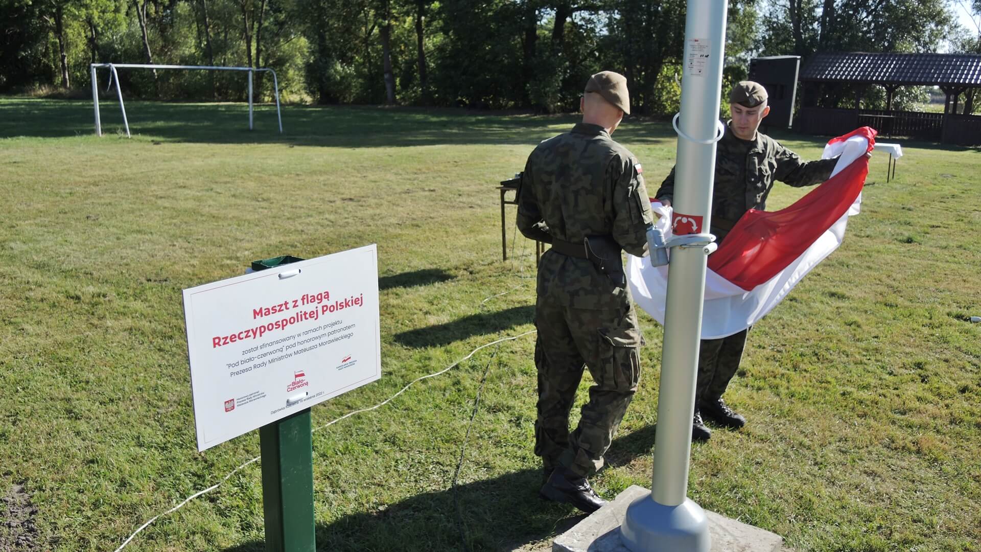 Radio Białystok | Wiadomości | Wiadomości - Przy podstawówce w Dąbrówce Kościelnej stanął maszt z flagą w ramach projektu "Pod biało-czerwoną"