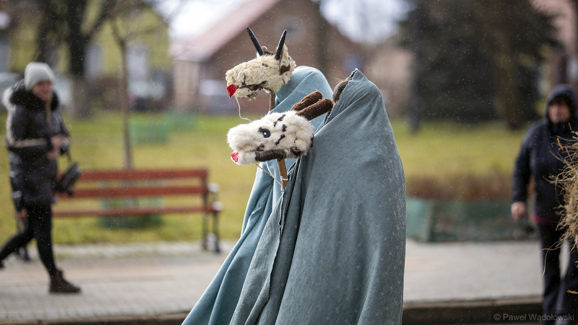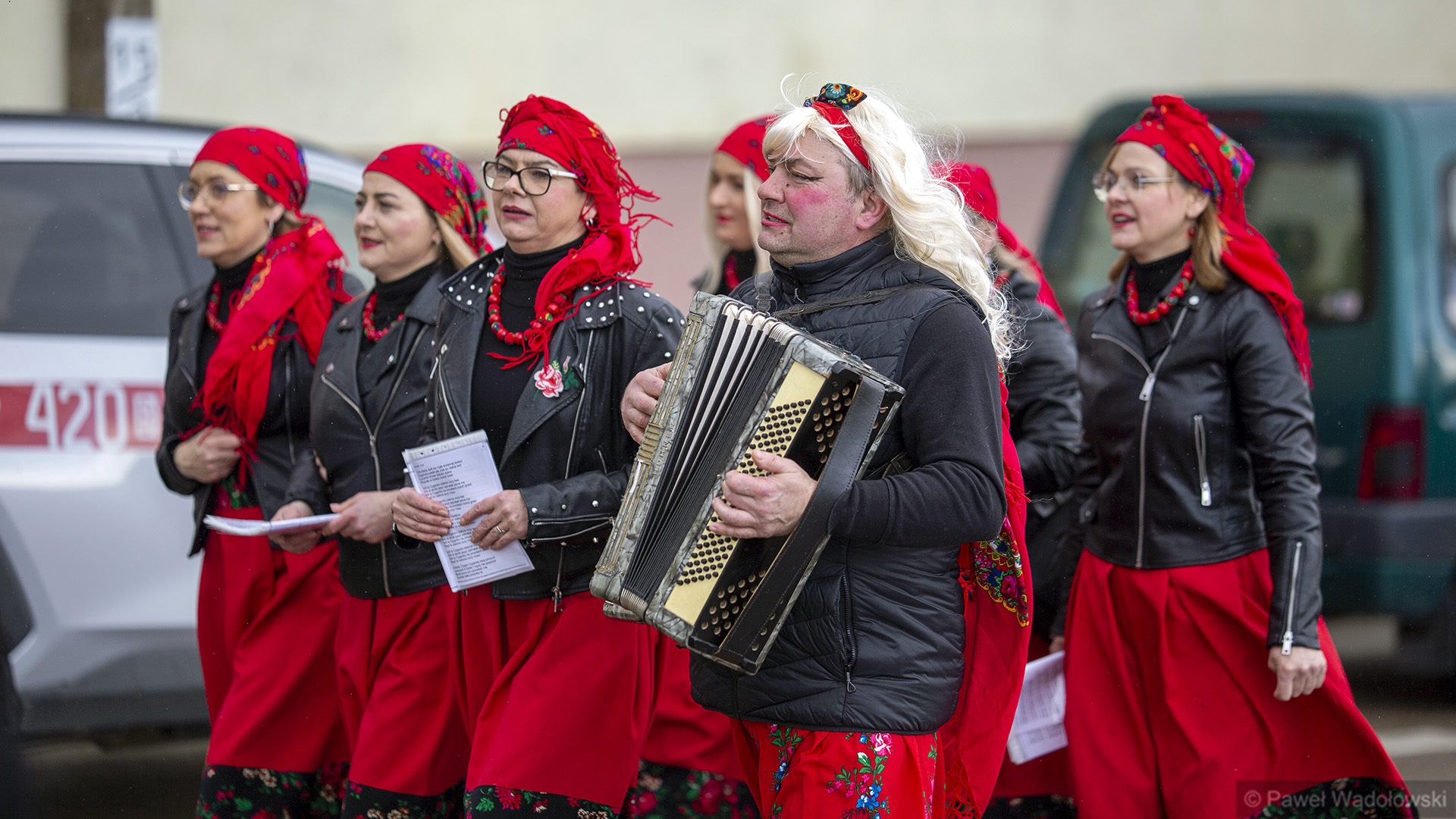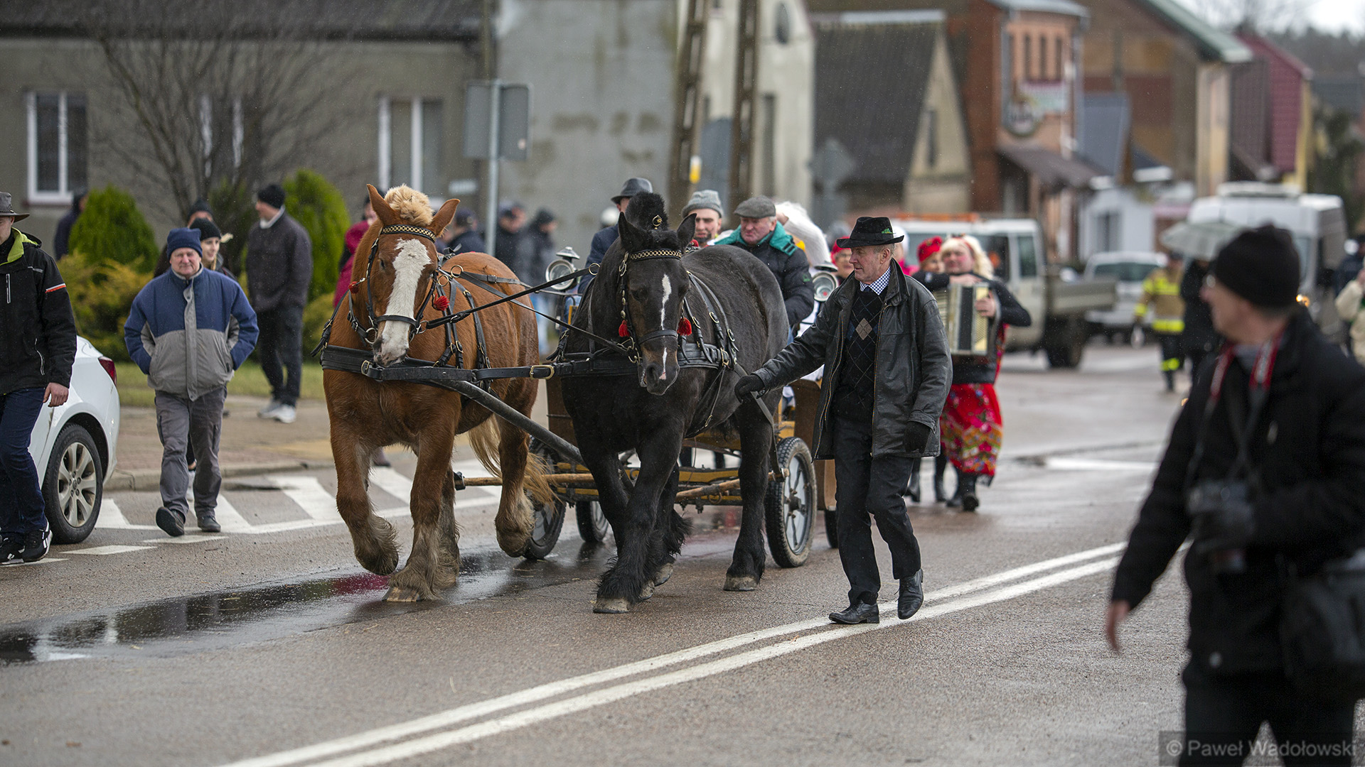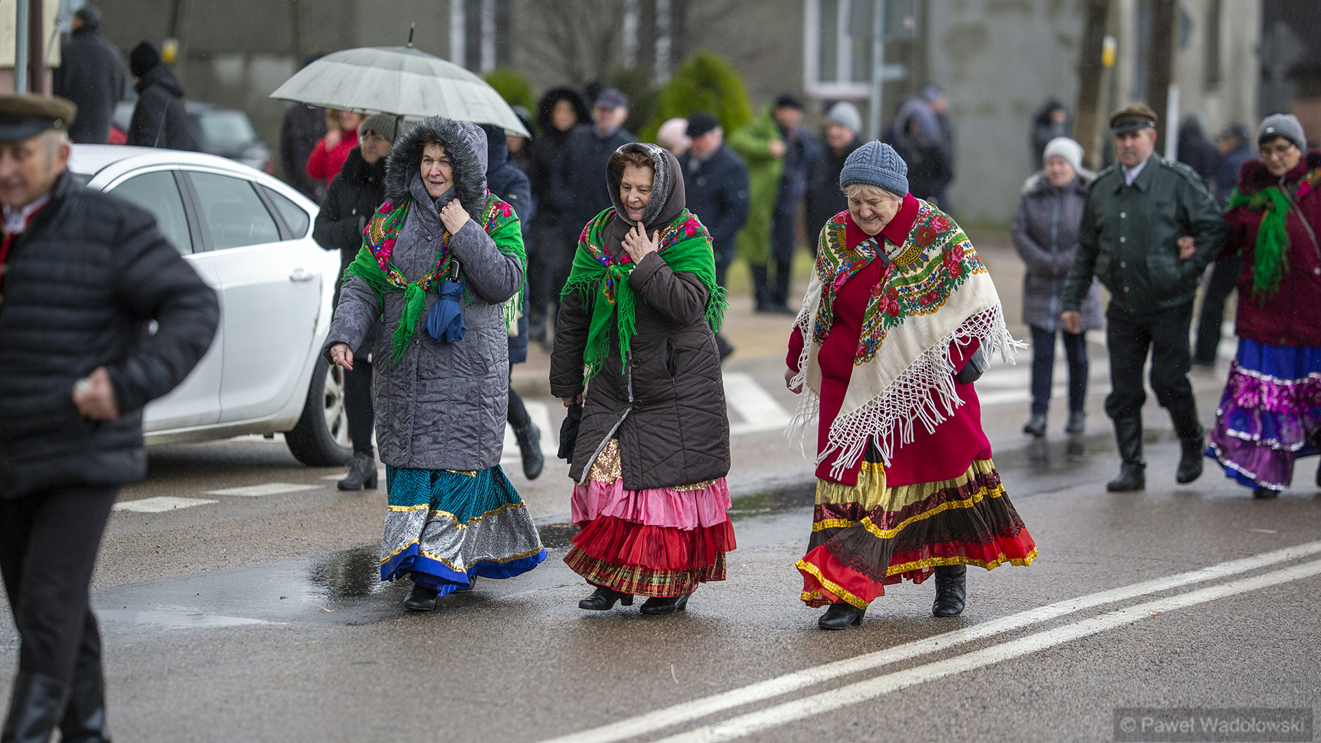To tradycja już z lat około 60. A głównym elementem są dwie postacie umieszczone na kole drewnianym, które są ciągnięte przez konia. To jest korowód i za tymi dwoma postaciami szli przebrani mieszkańcy, którzy odwiedzali urzędy, odwiedzali sąsiedzi. A wszystko kończyła wspólna biesiada w gospodzie
